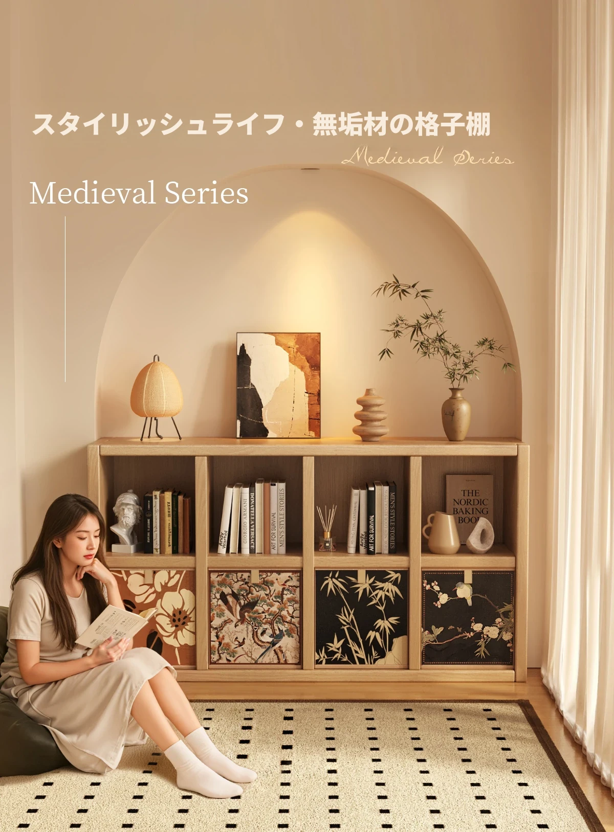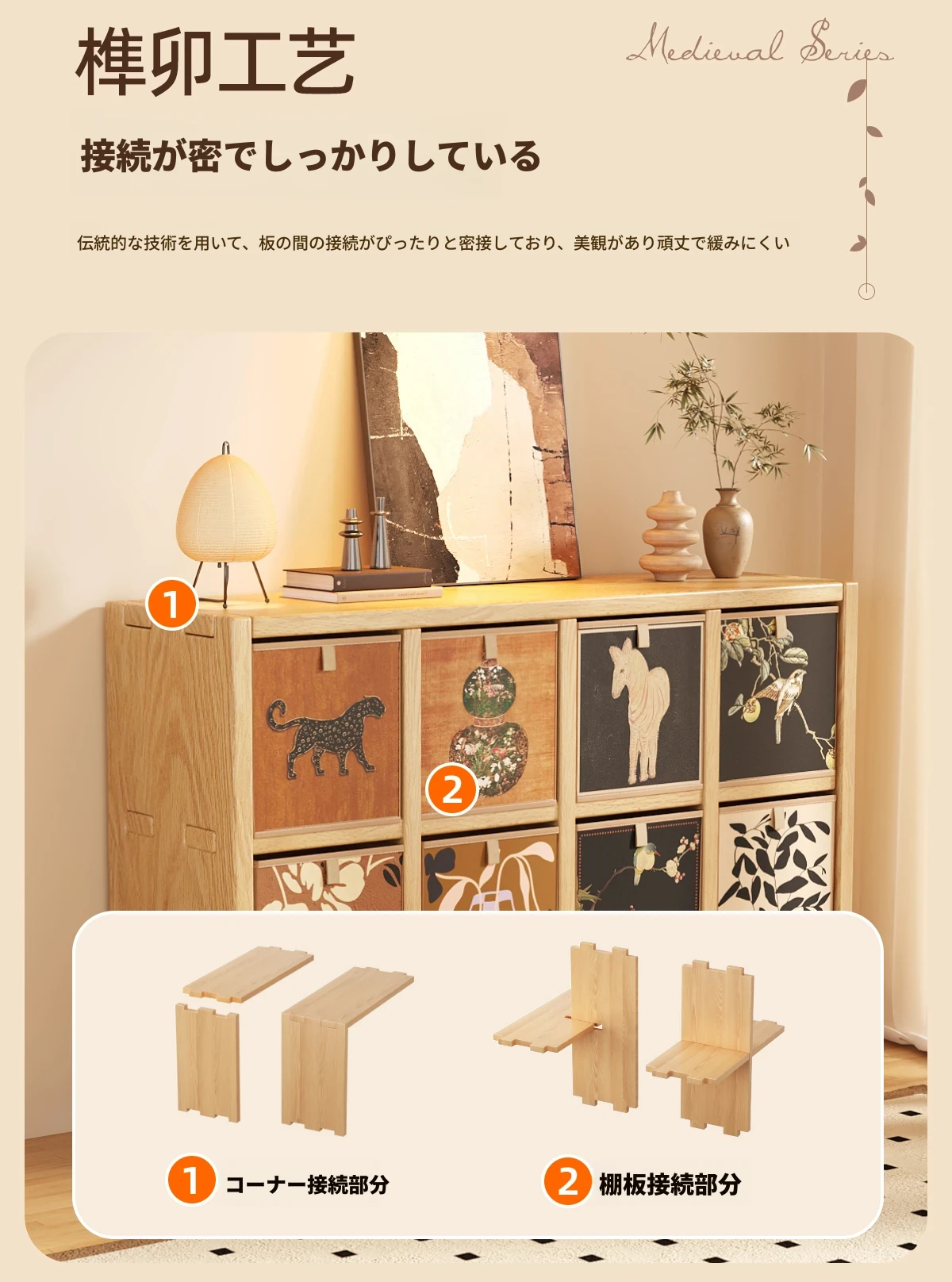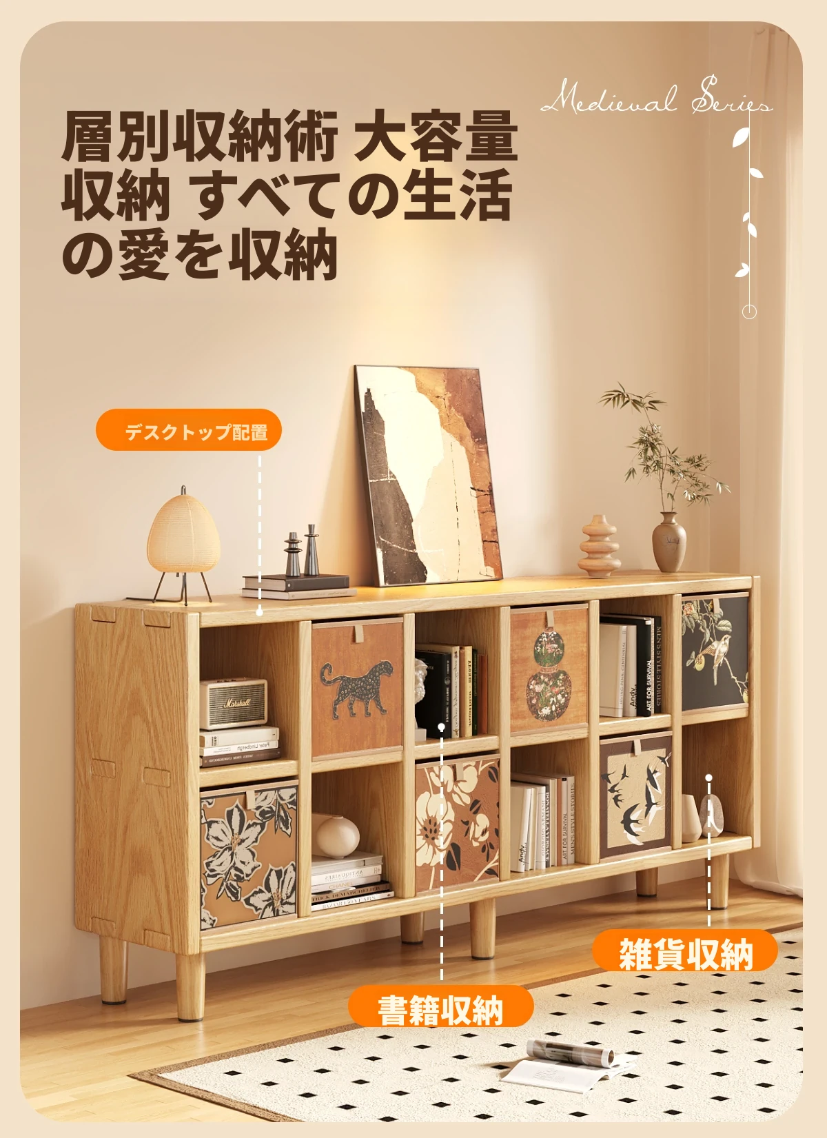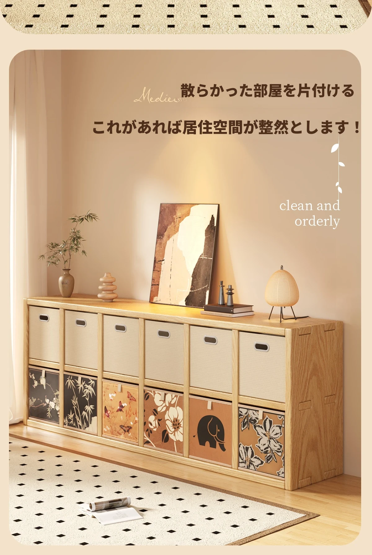 天然木製のグリッドキャビネット本棚 - 落地式収納ラック!8つの収納スペースを備え、幼稚園に最適!壁に寄り添い、シンプルで便利な収納を実現。お部屋をスッキリ整頓し、お子様の成長をサポートします!