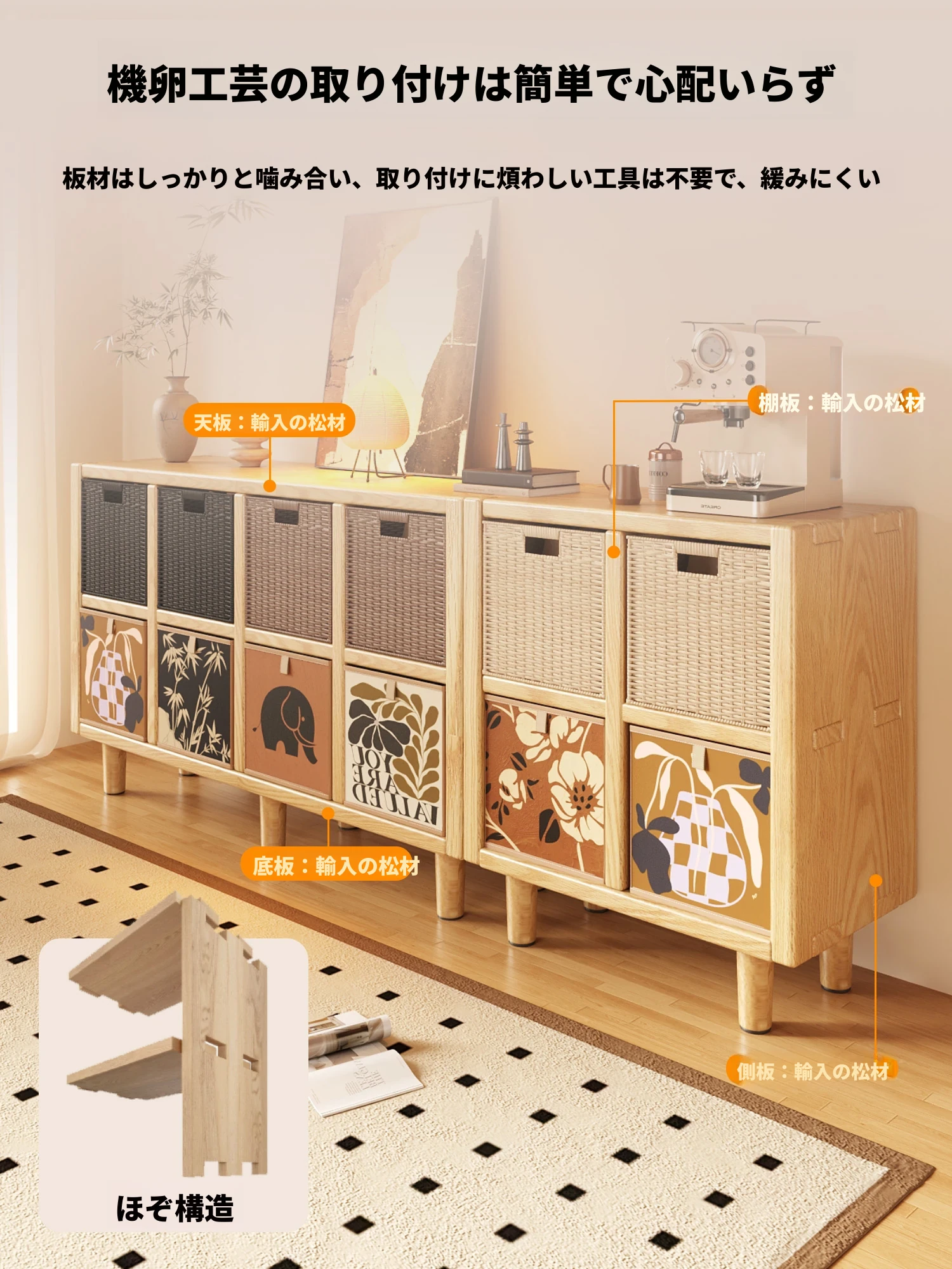 全木製⭐【2段深型8格】120x30x60cm★角保護カバー付き