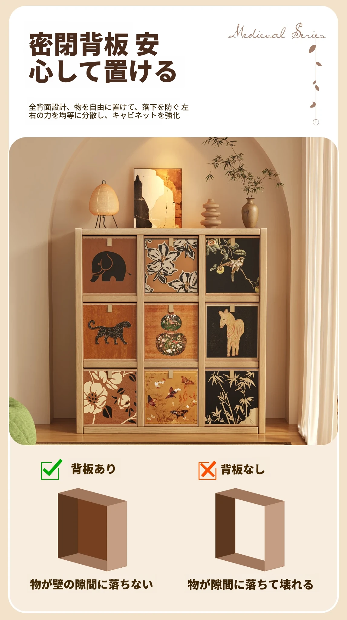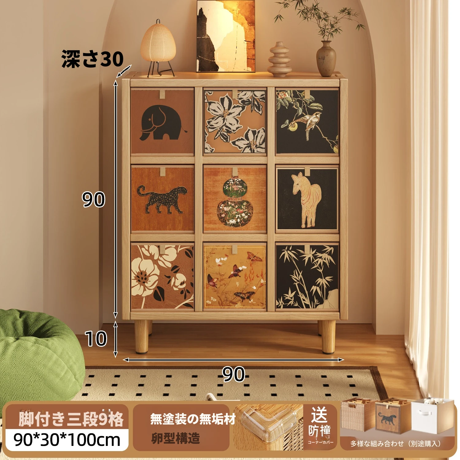 3段加脚⭐全木製9格/90*30*100cm/角保護カバー付き