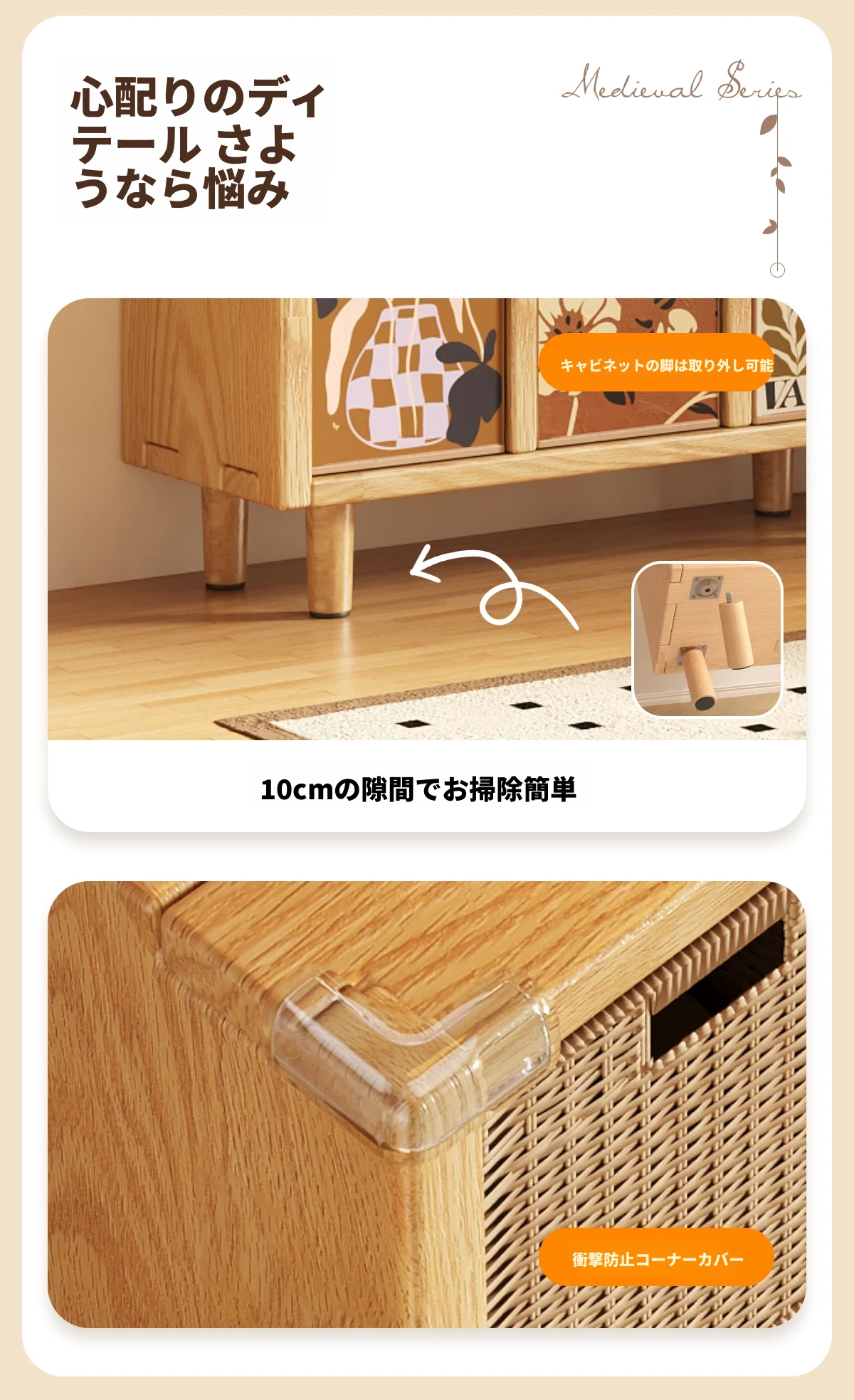 2段加脚⭐全木製6格/90*30*70cm/角保護カバー付き