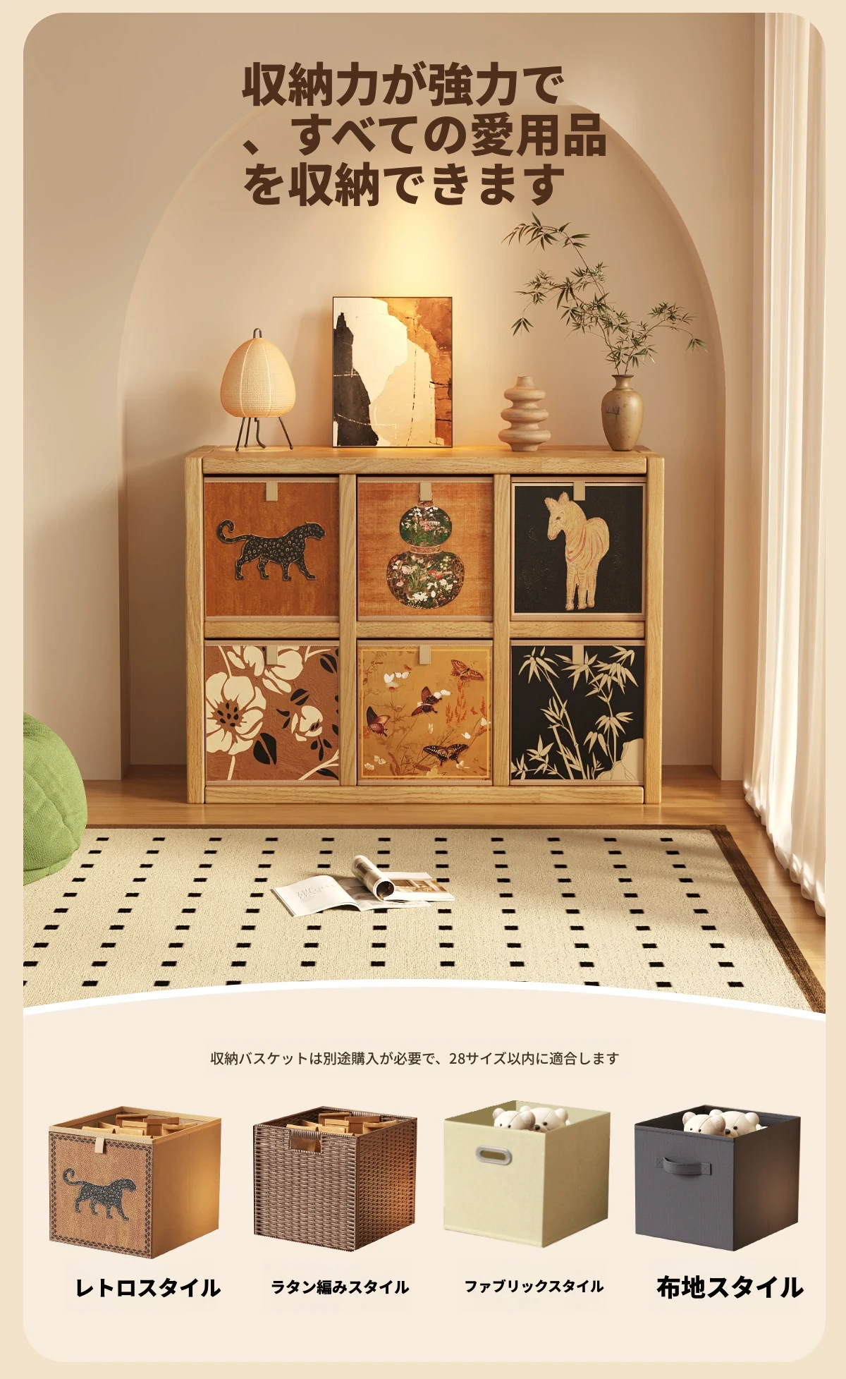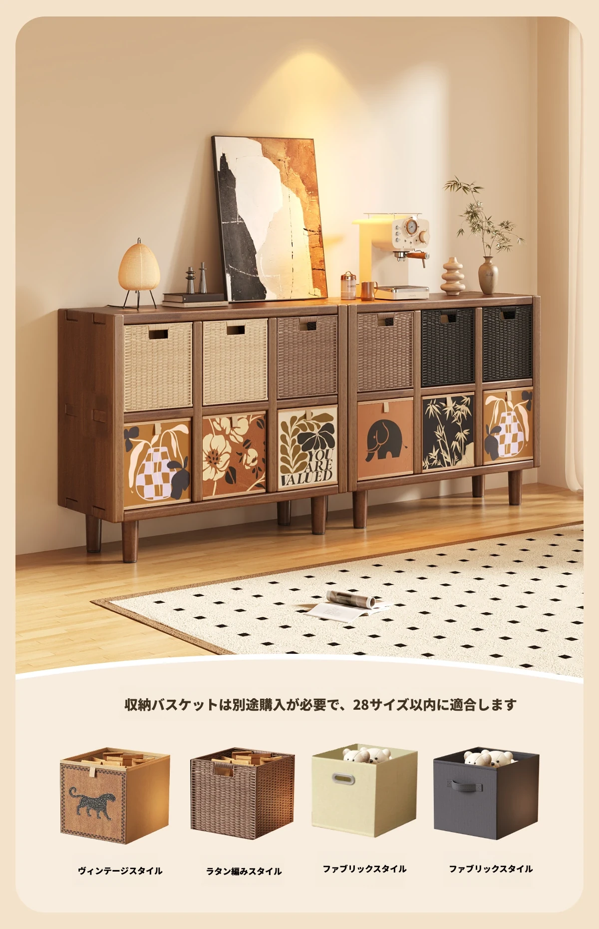 【3段深型18格】180x30x90cm+ラタンバスケット*3★角保護カバー付き