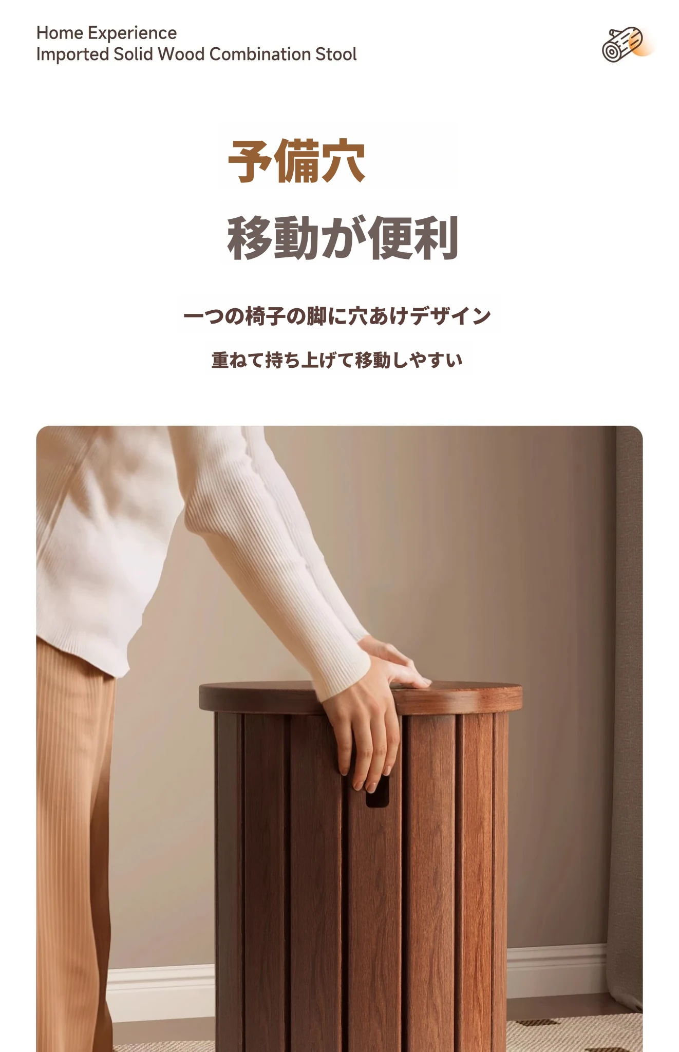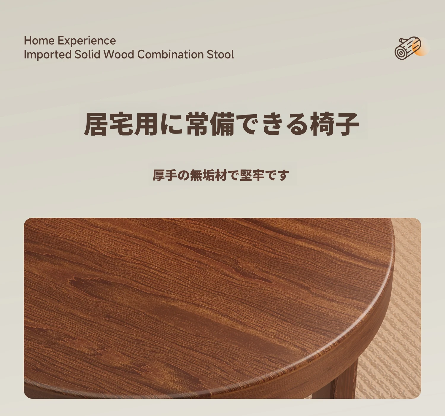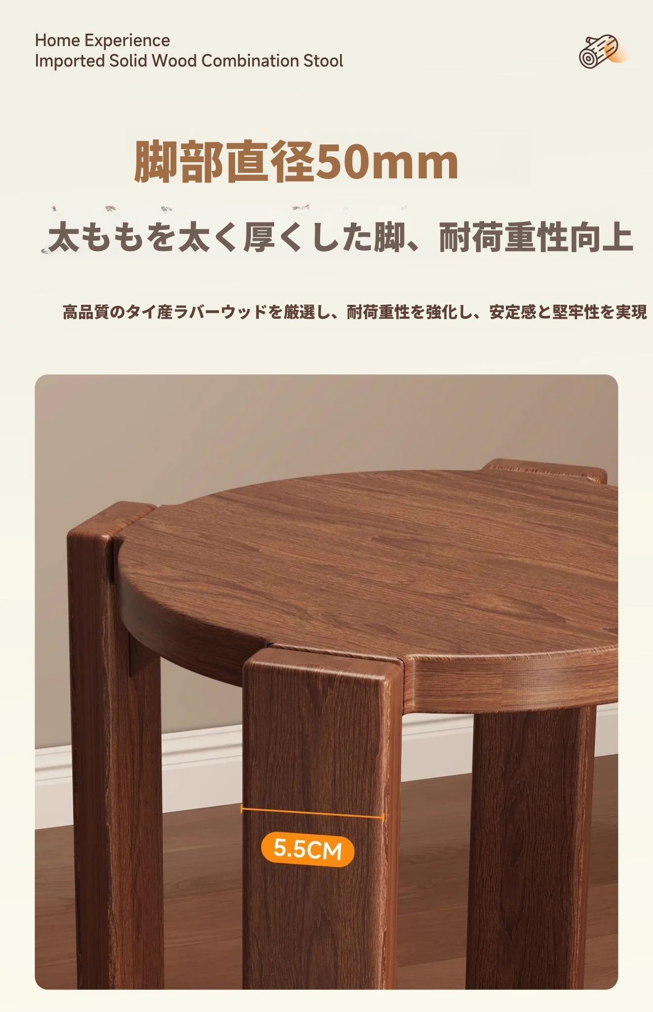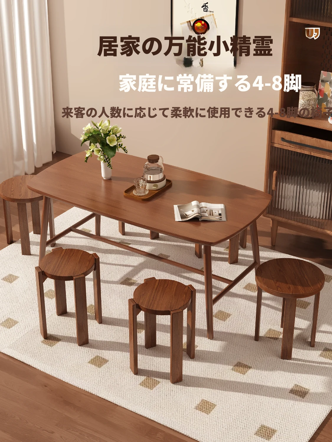 新中式の実木製ラウンドスツール - スタイリッシュな積み重ね可能なデザイン!高級感溢れる家用・レストラン用の予備椅子に最適。空間を美しく彩る、あなたの生活にぴったりの一品です。