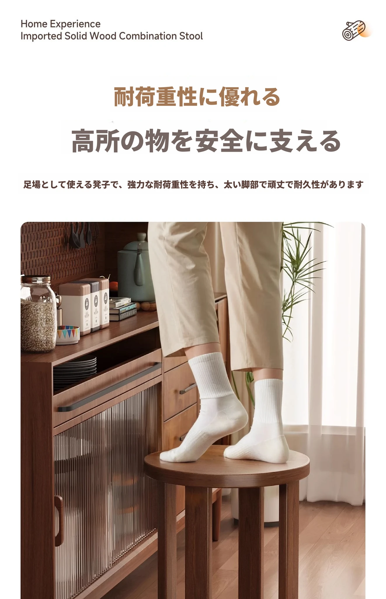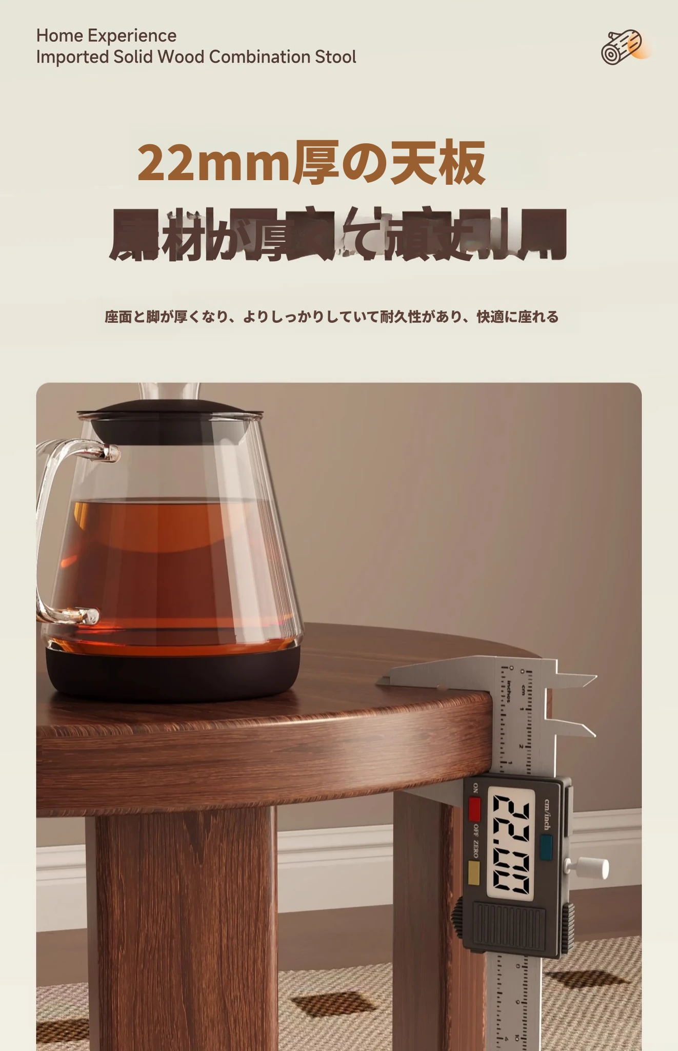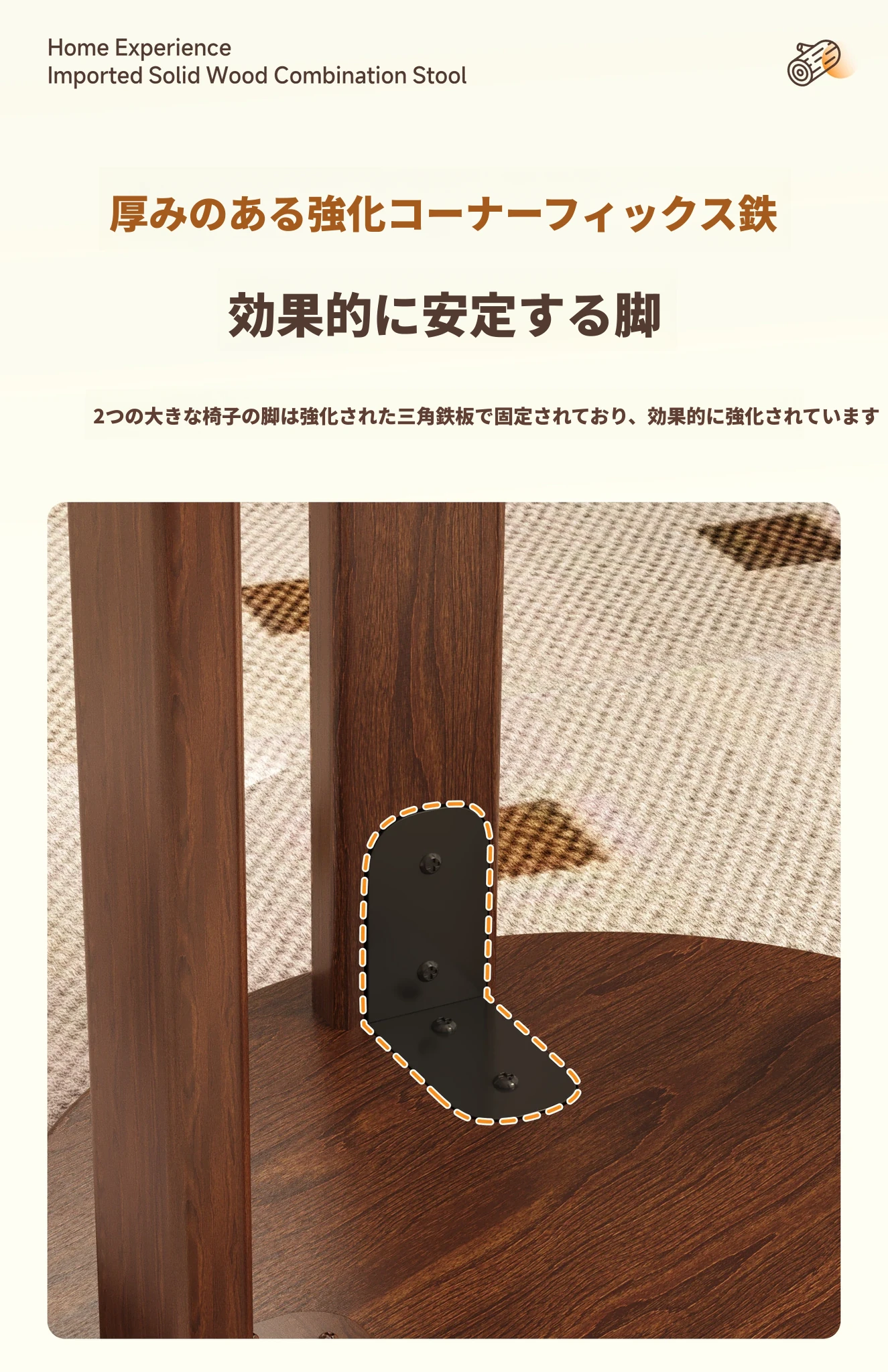 新中式の実木製ラウンドスツール - スタイリッシュな積み重ね可能なデザイン!高級感溢れる家用・レストラン用の予備椅子に最適。空間を美しく彩る、あなたの生活にぴったりの一品です。