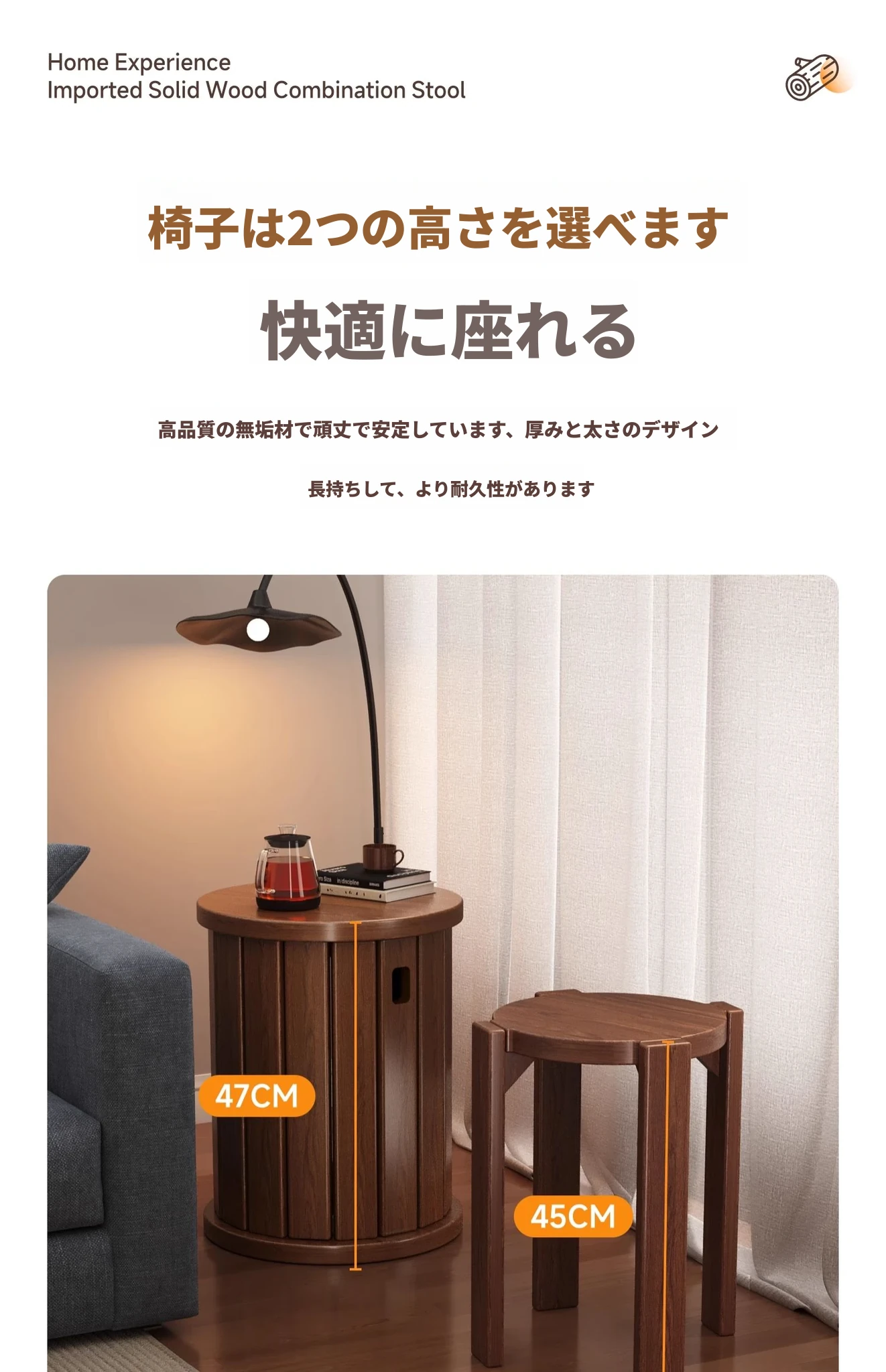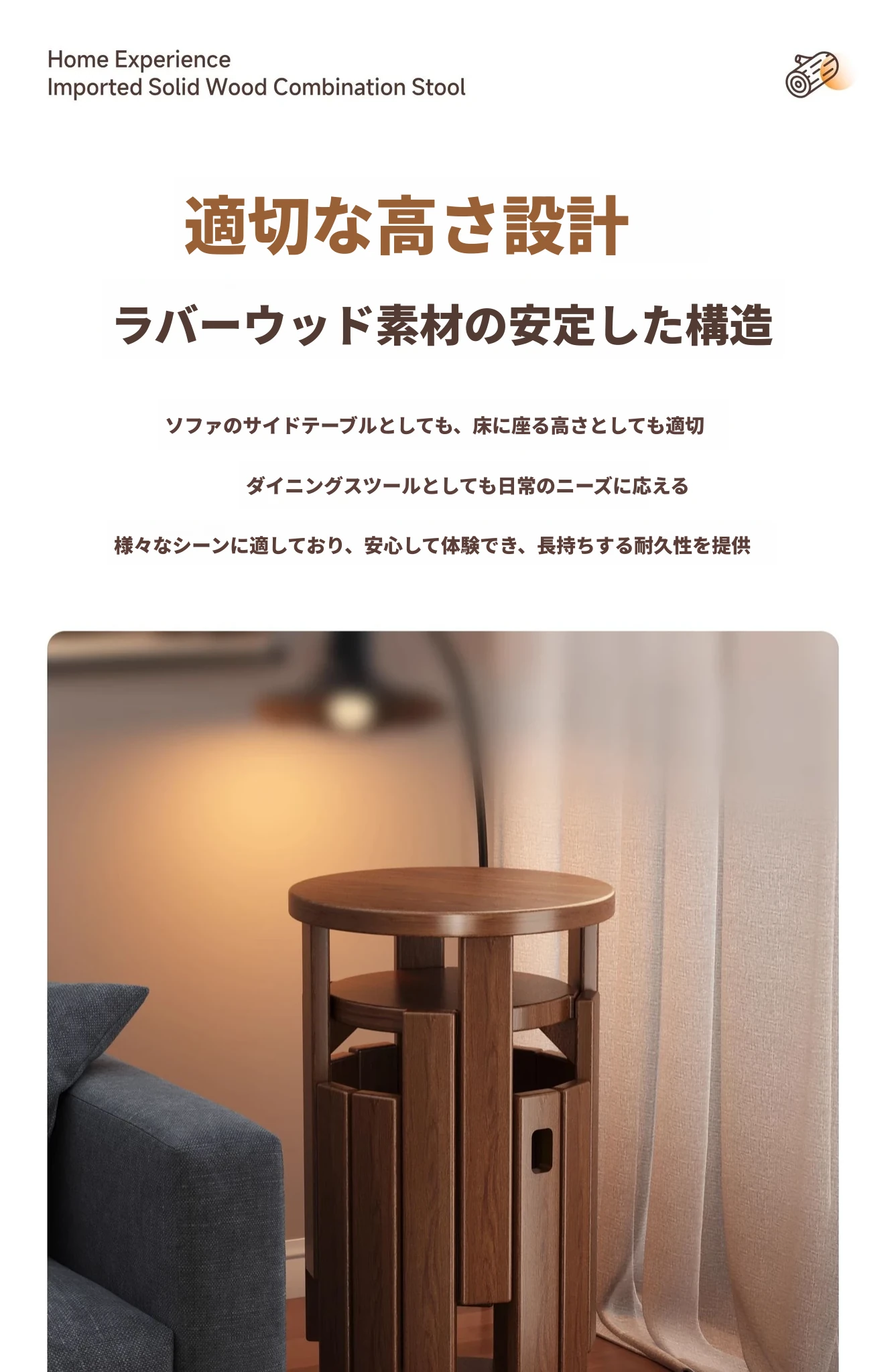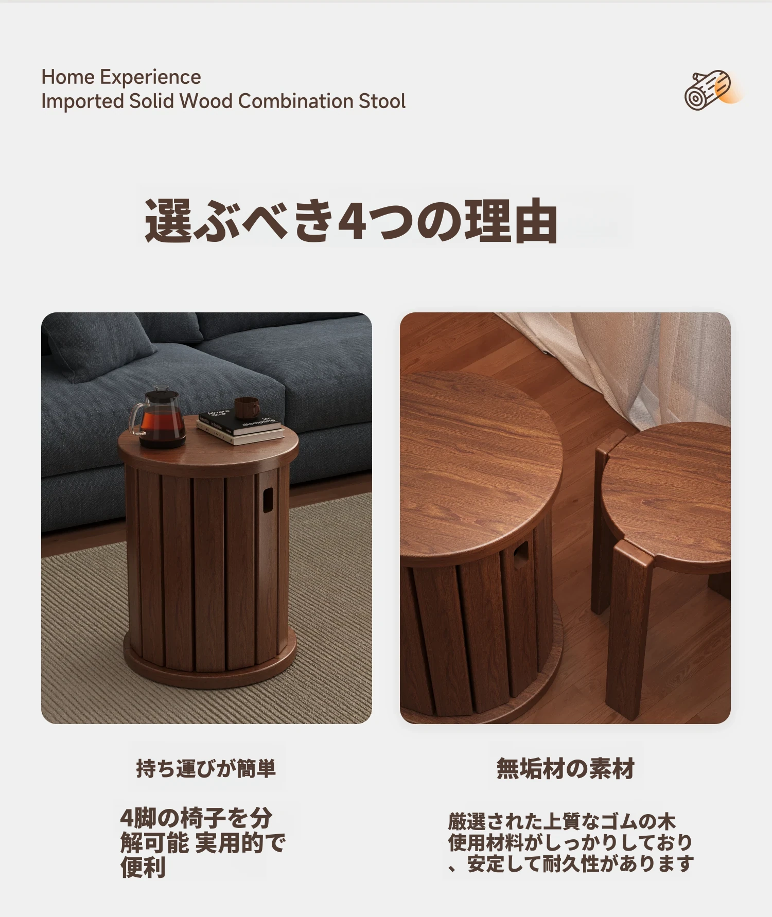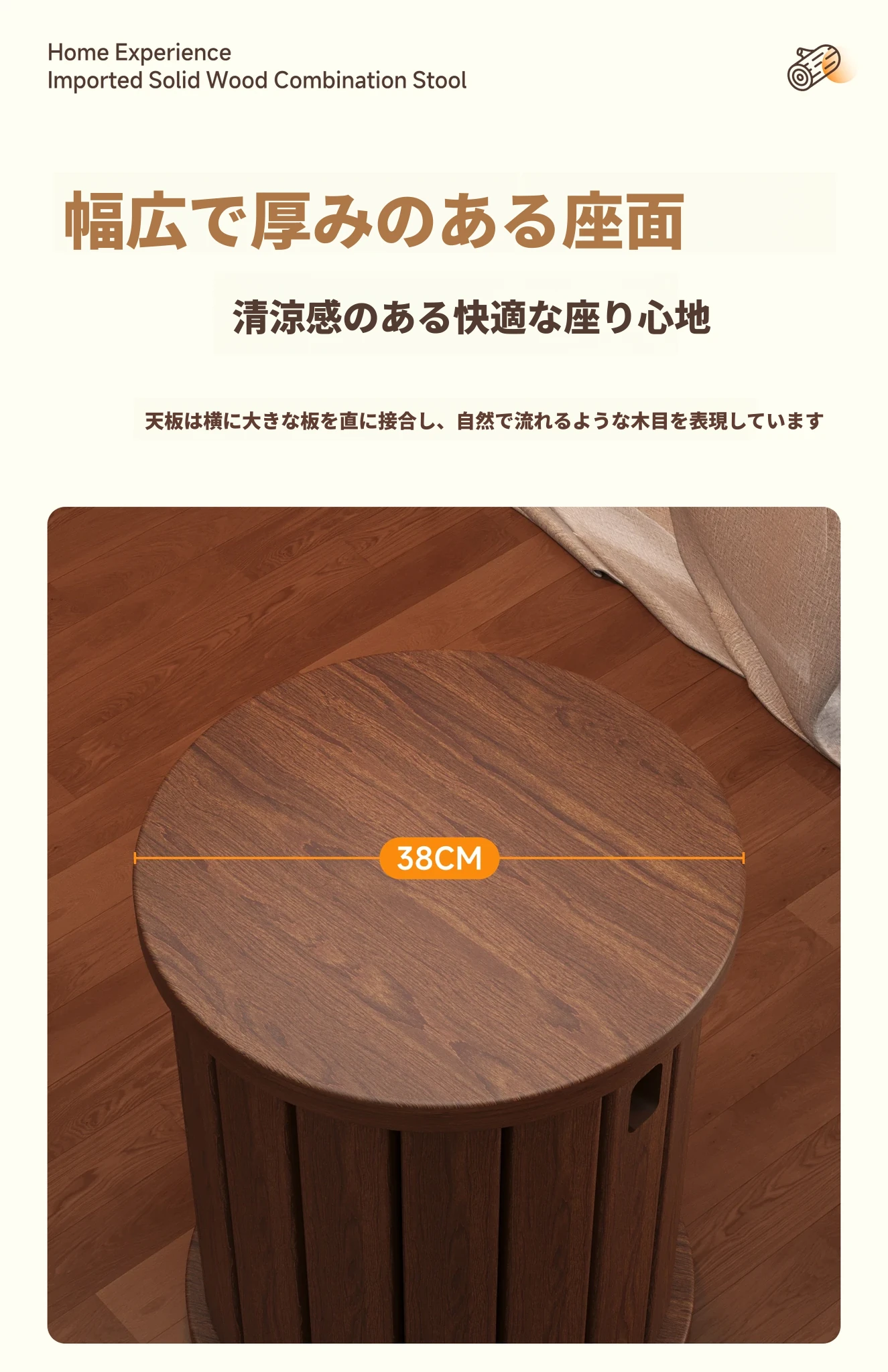 新中式の実木製ラウンドスツール - スタイリッシュな積み重ね可能なデザイン!高級感溢れる家用・レストラン用の予備椅子に最適。空間を美しく彩る、あなたの生活にぴったりの一品です。