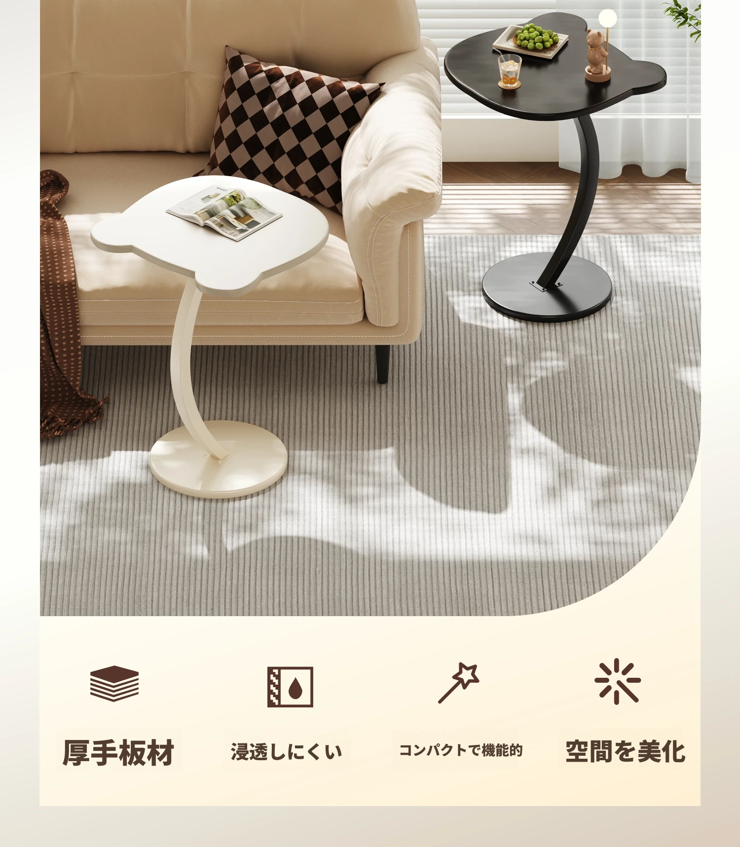 ソファサイドテーブル おしゃれで便利な移動式コーヒーテーブル - リビングやベッドサイドにぴったり!創造的なデザインで、バルコニーや小さなスペースにも最適な収納付きテーブルです。
