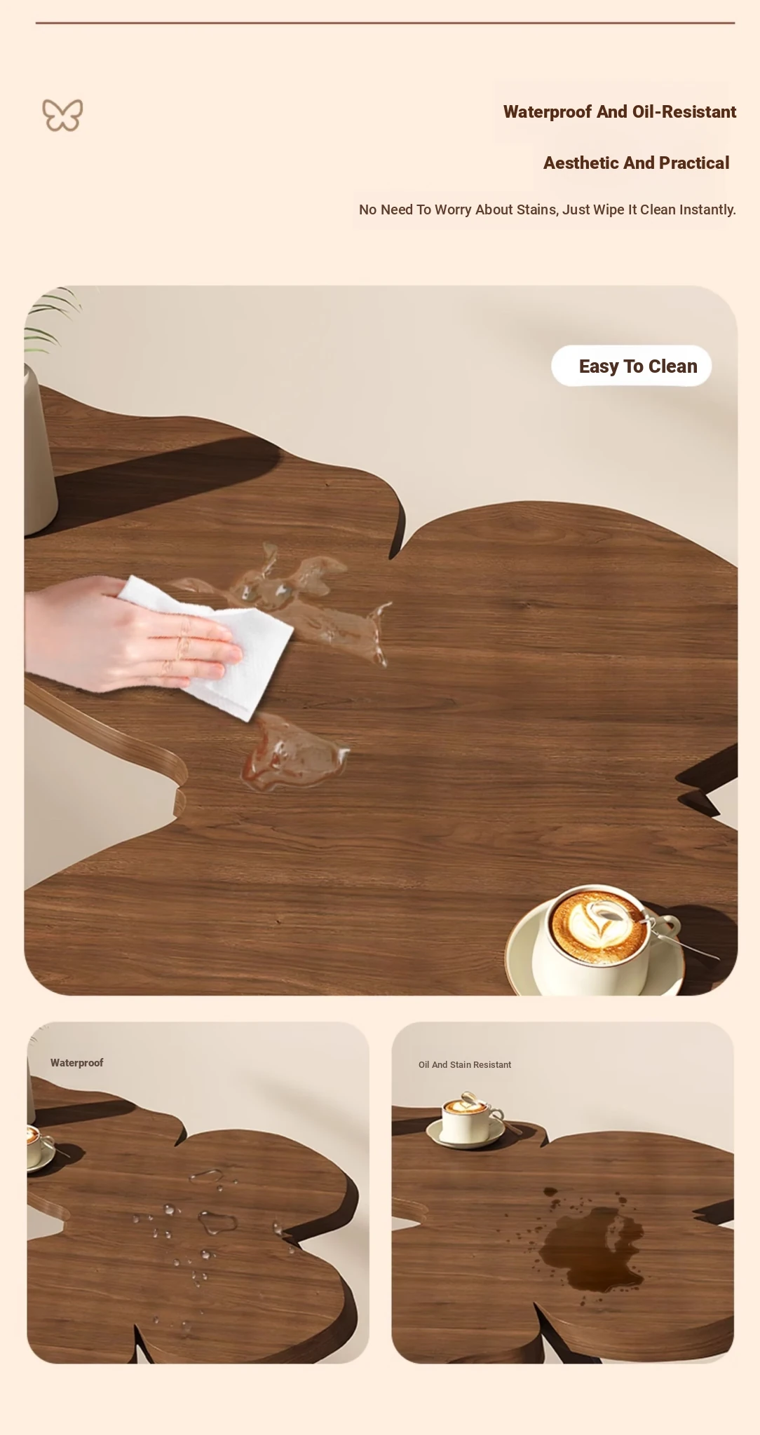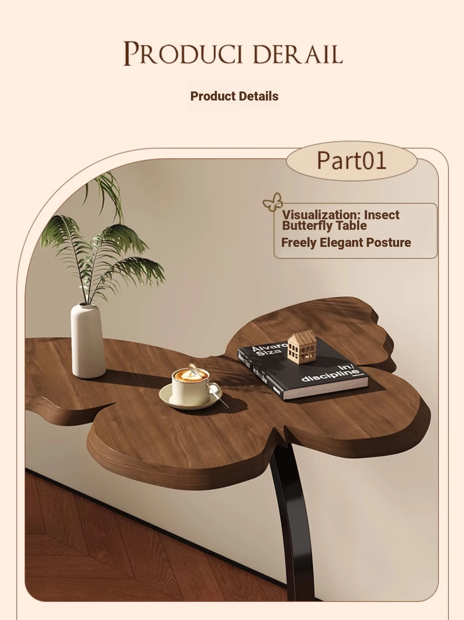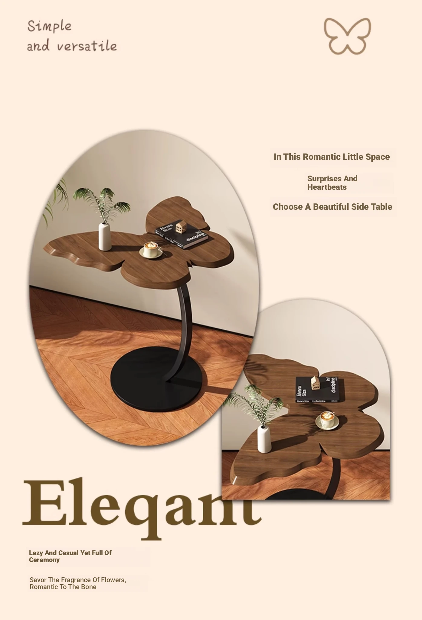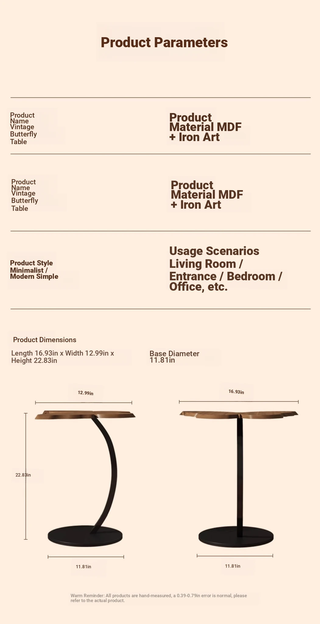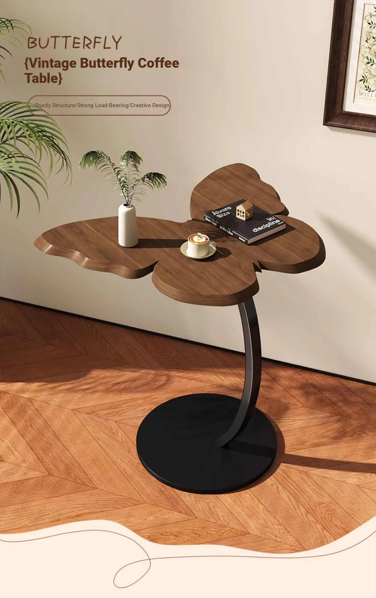 88% Buy-Upgrade thickened Iron Frame [Butterfly Tea Table] Antique Walnut Color