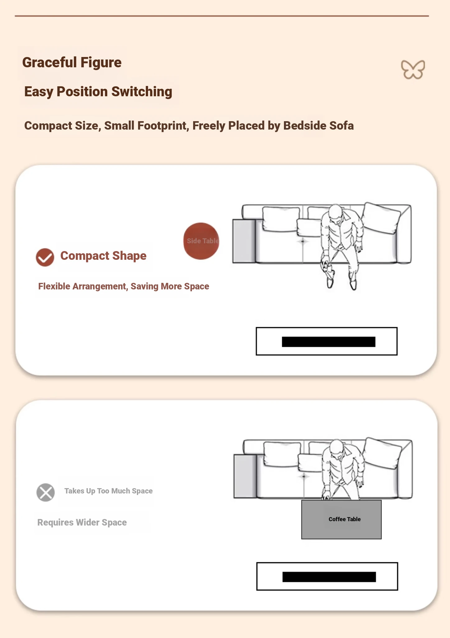 Upgraded thickened Iron Frame [Butterfly Tea Table] Middle Ancient Knight Black