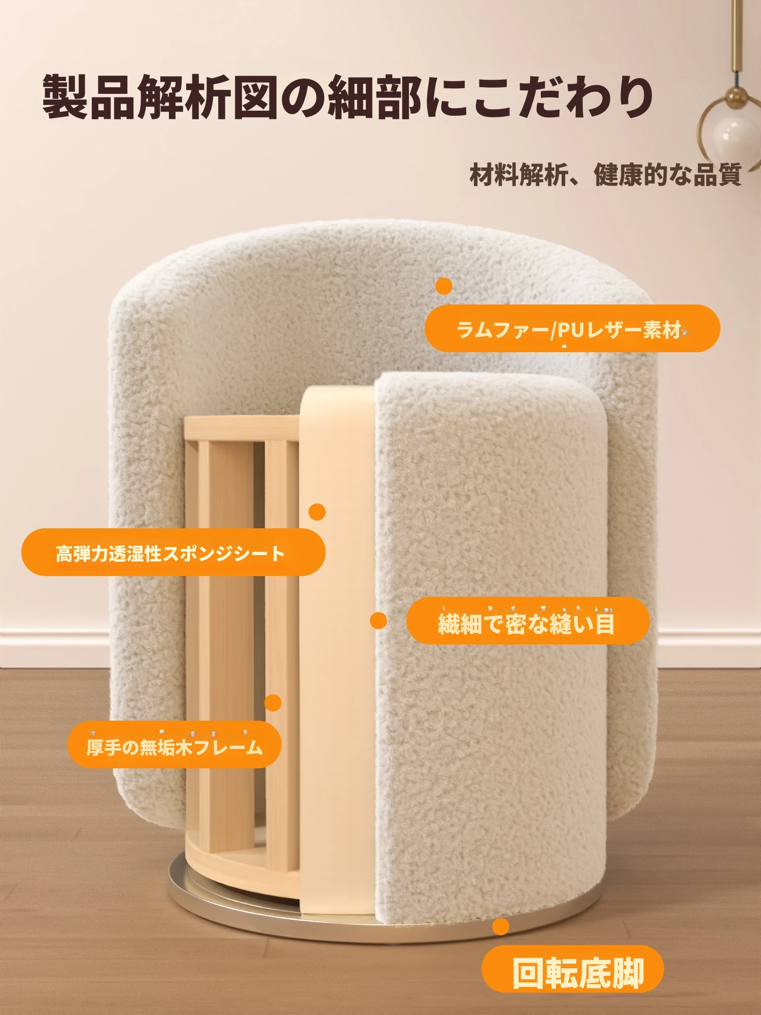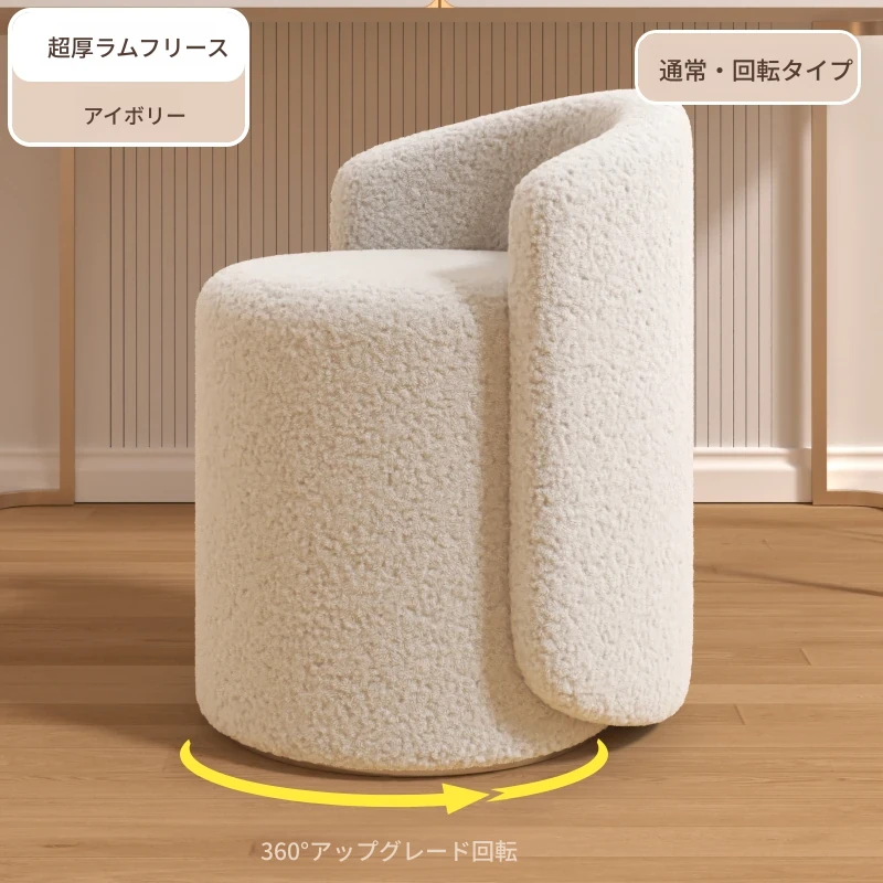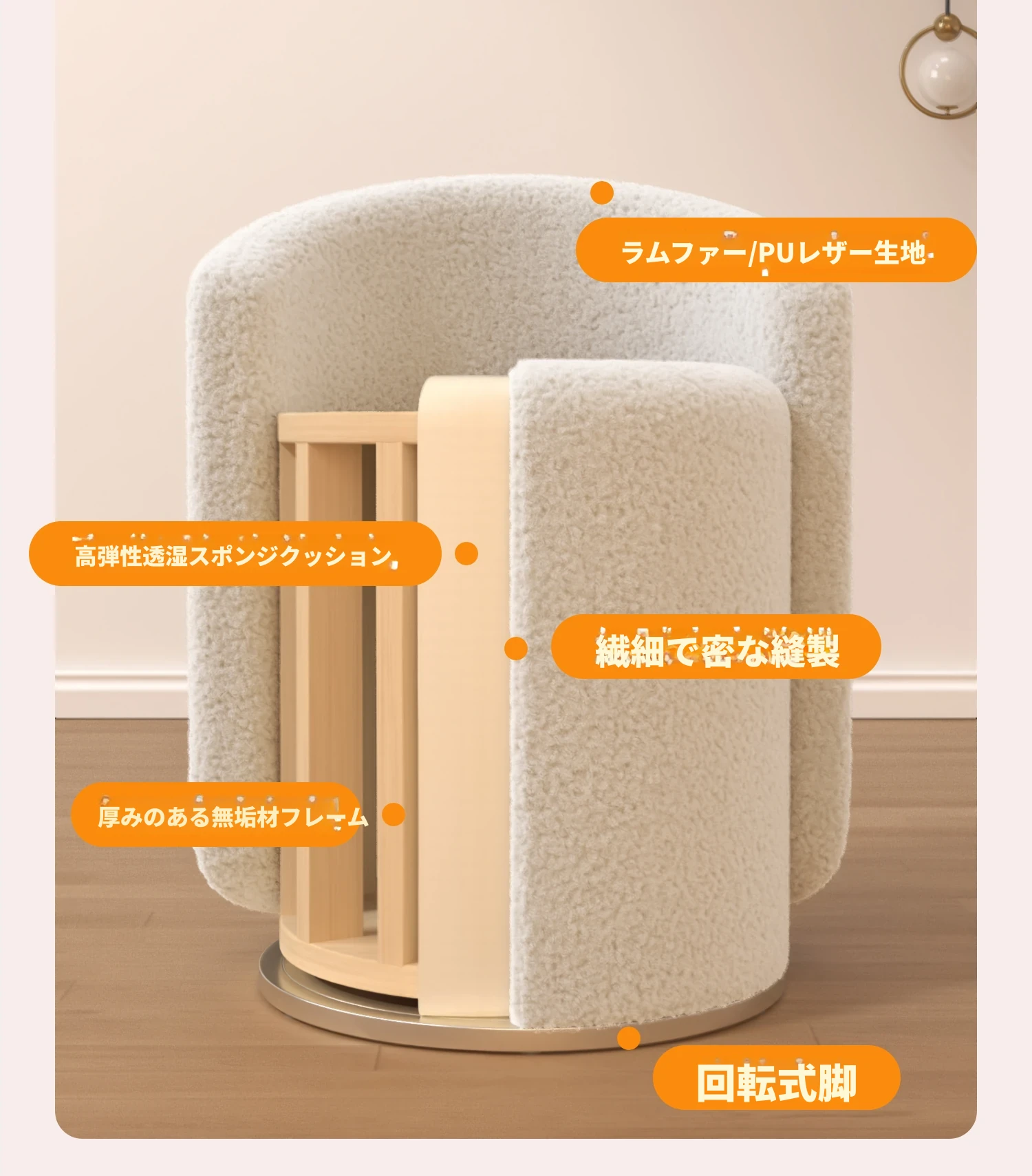 【360°回転可能】ラムフェルトホワイト-無垢材フレーム