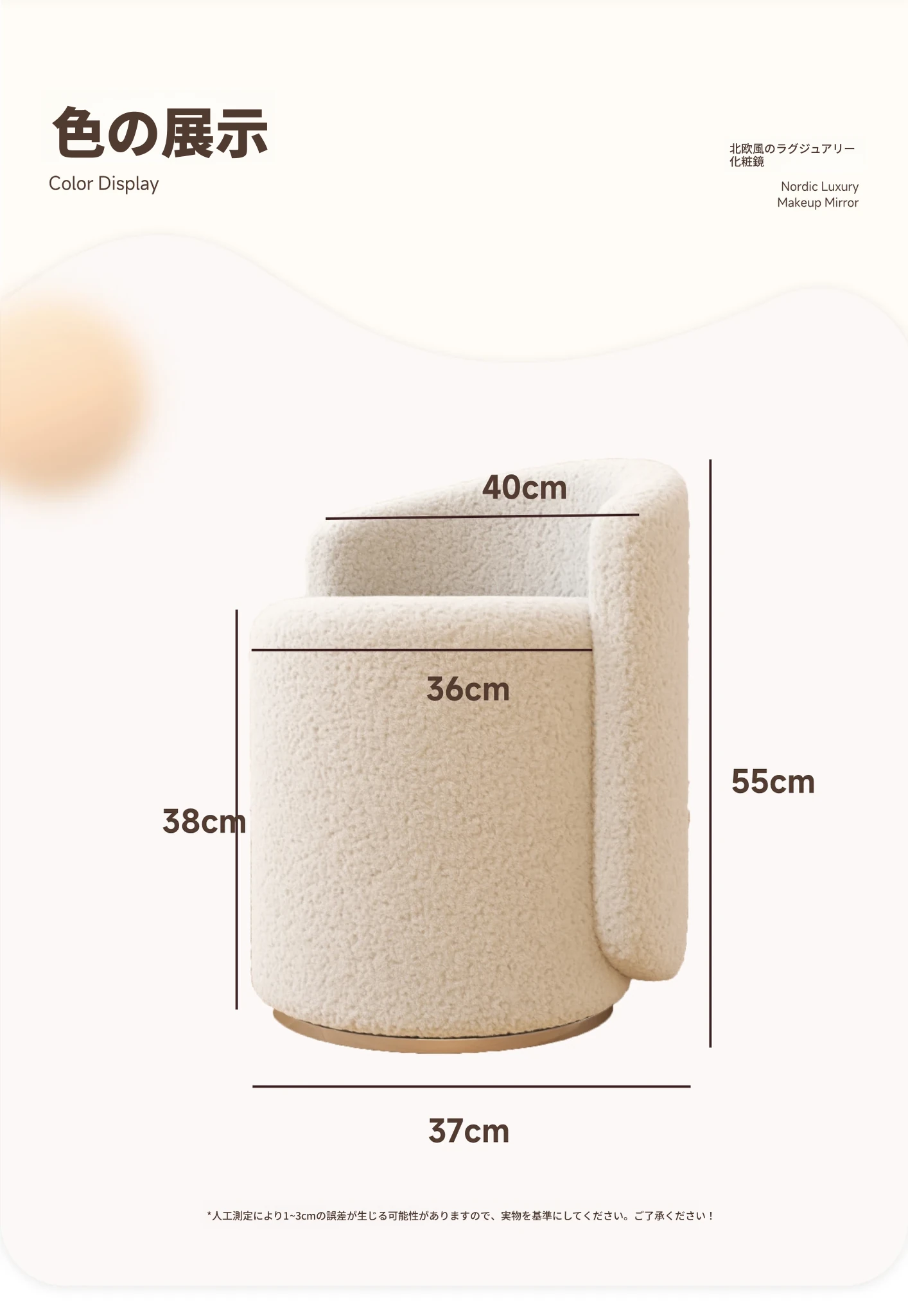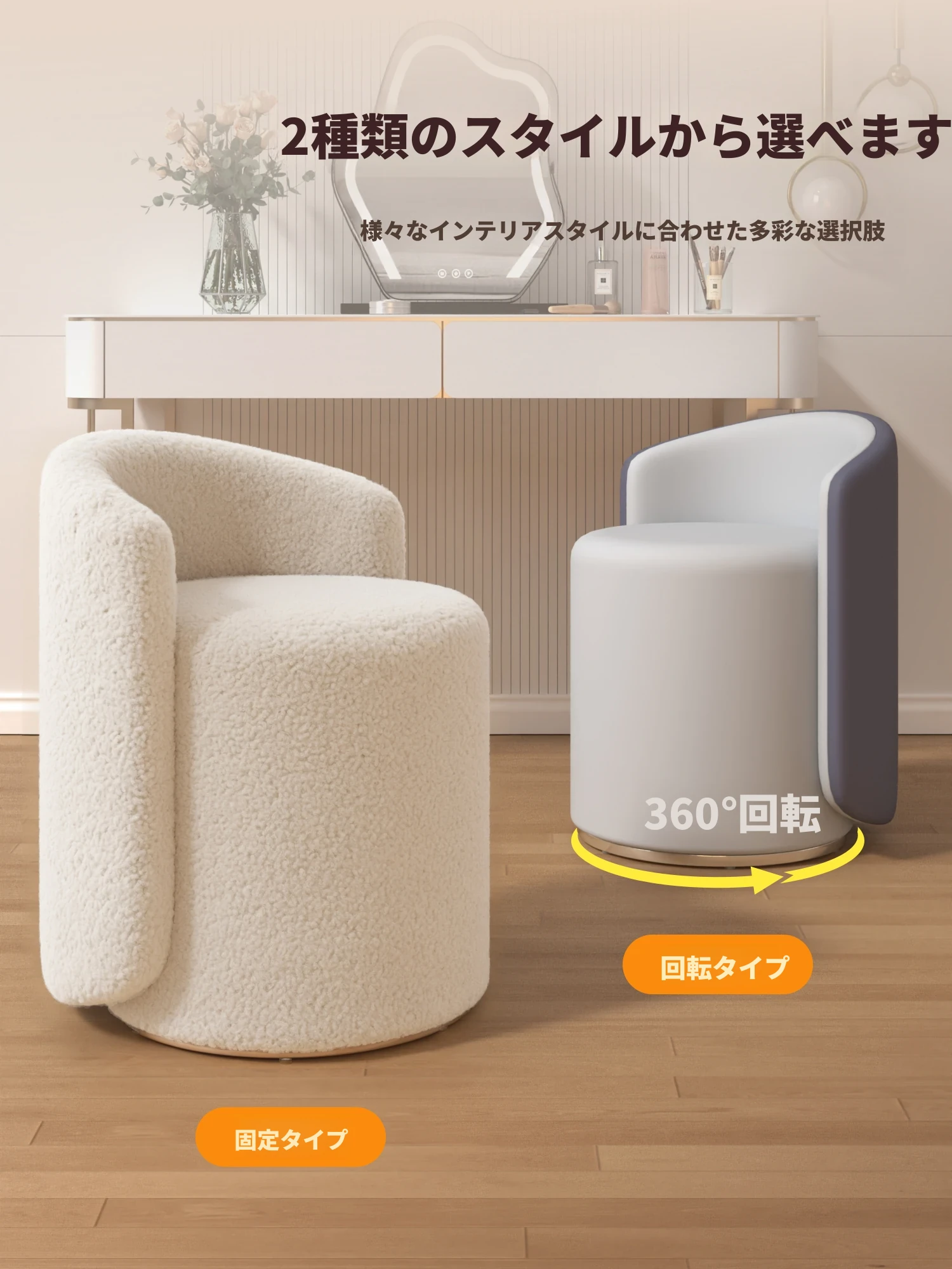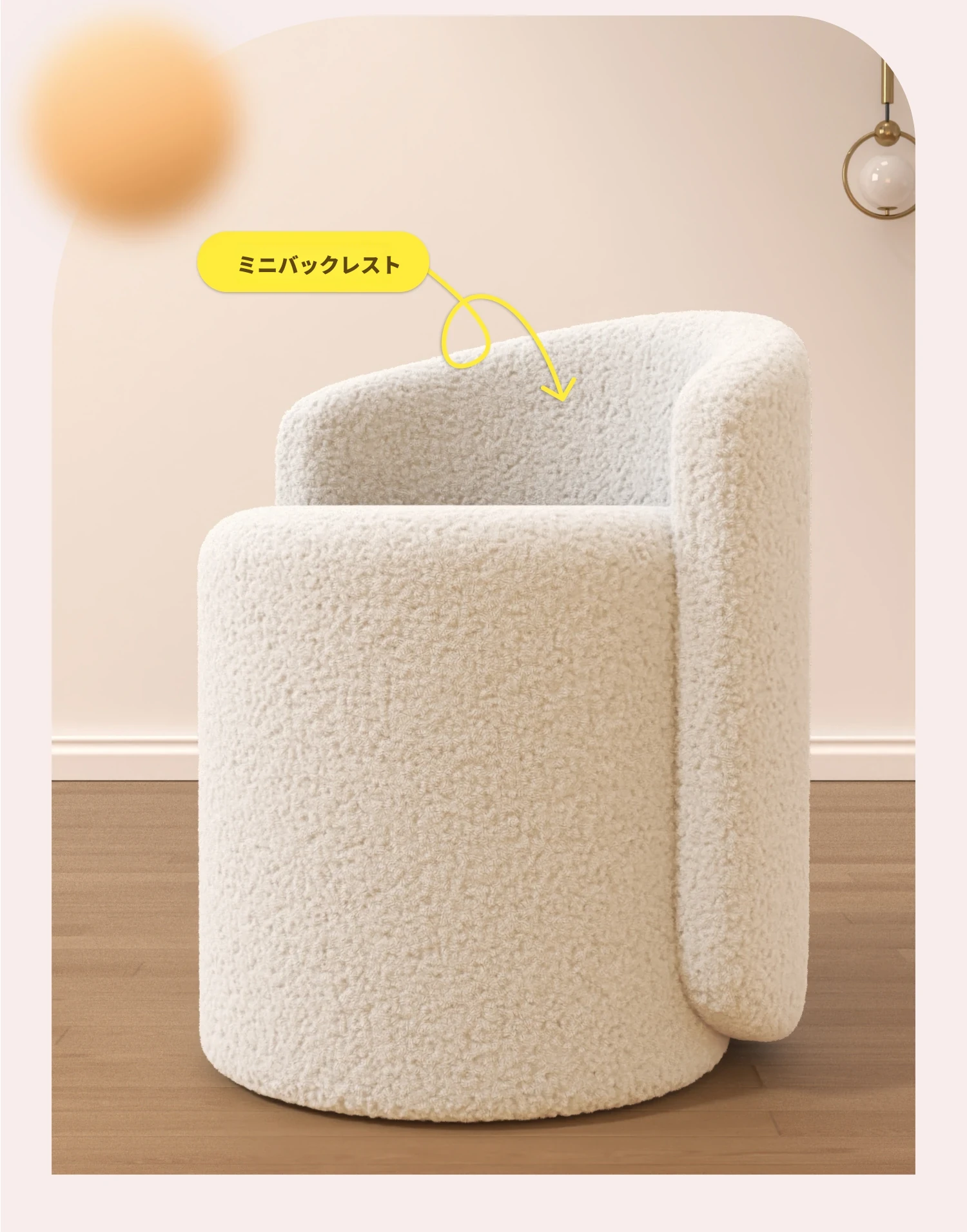 【360°回転可能】ラムフェルトホワイト-無垢材フレーム