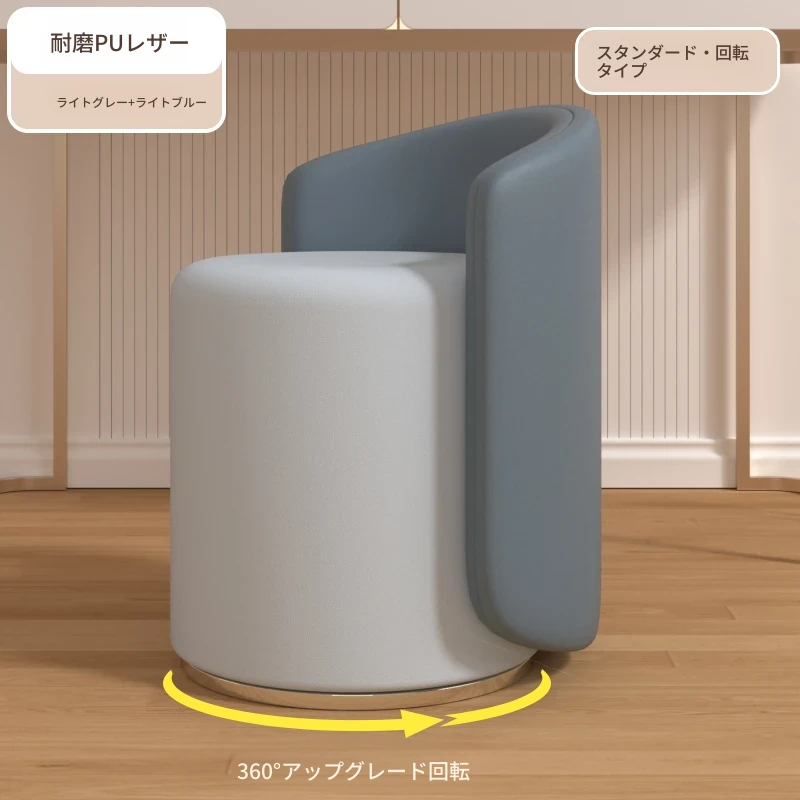 【360°回転可能】猫の爪皮ライトブルー×ライトグレー-無垢材フレーム