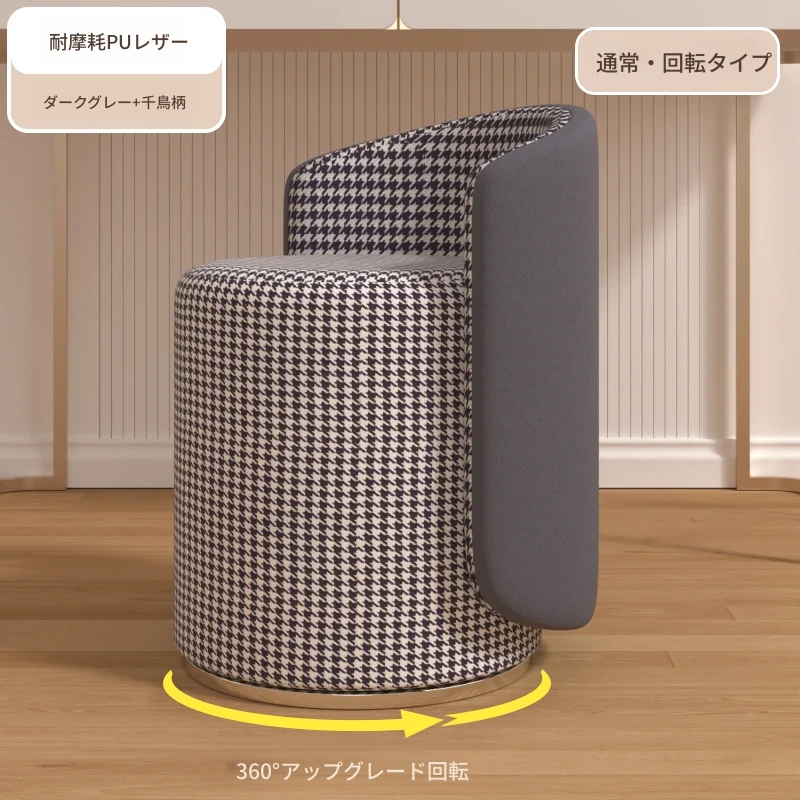 【360°回転可能】コットン布グレー×千鳥柄-無垢材フレーム
