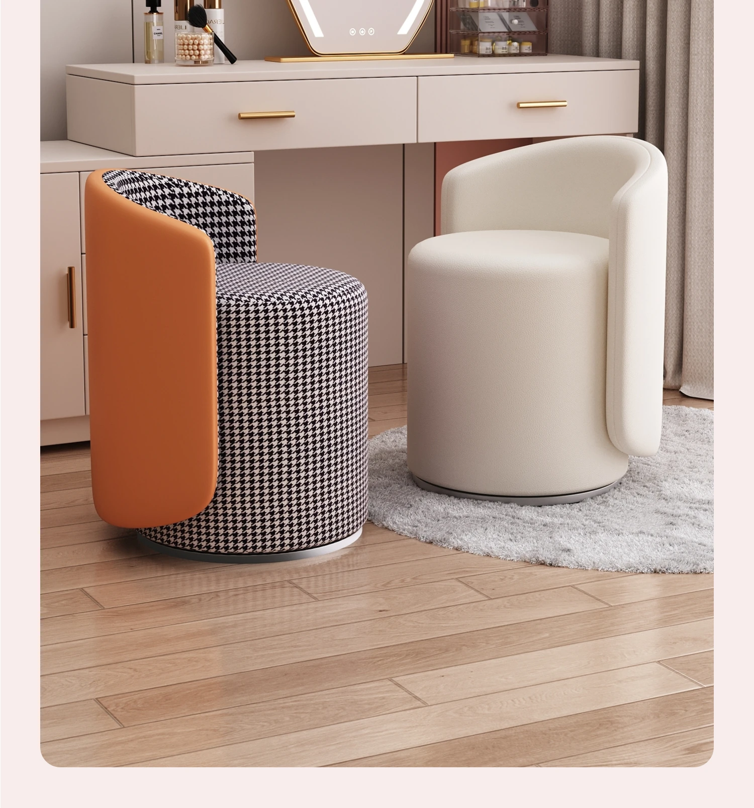 コンパクトでスタイリッシュなソフトクッション付きスツール - リビングルームにぴったりの高級感あふれるデザイン!テーブルサイドにも最適で、スペースを取らずに優雅さをプラス。