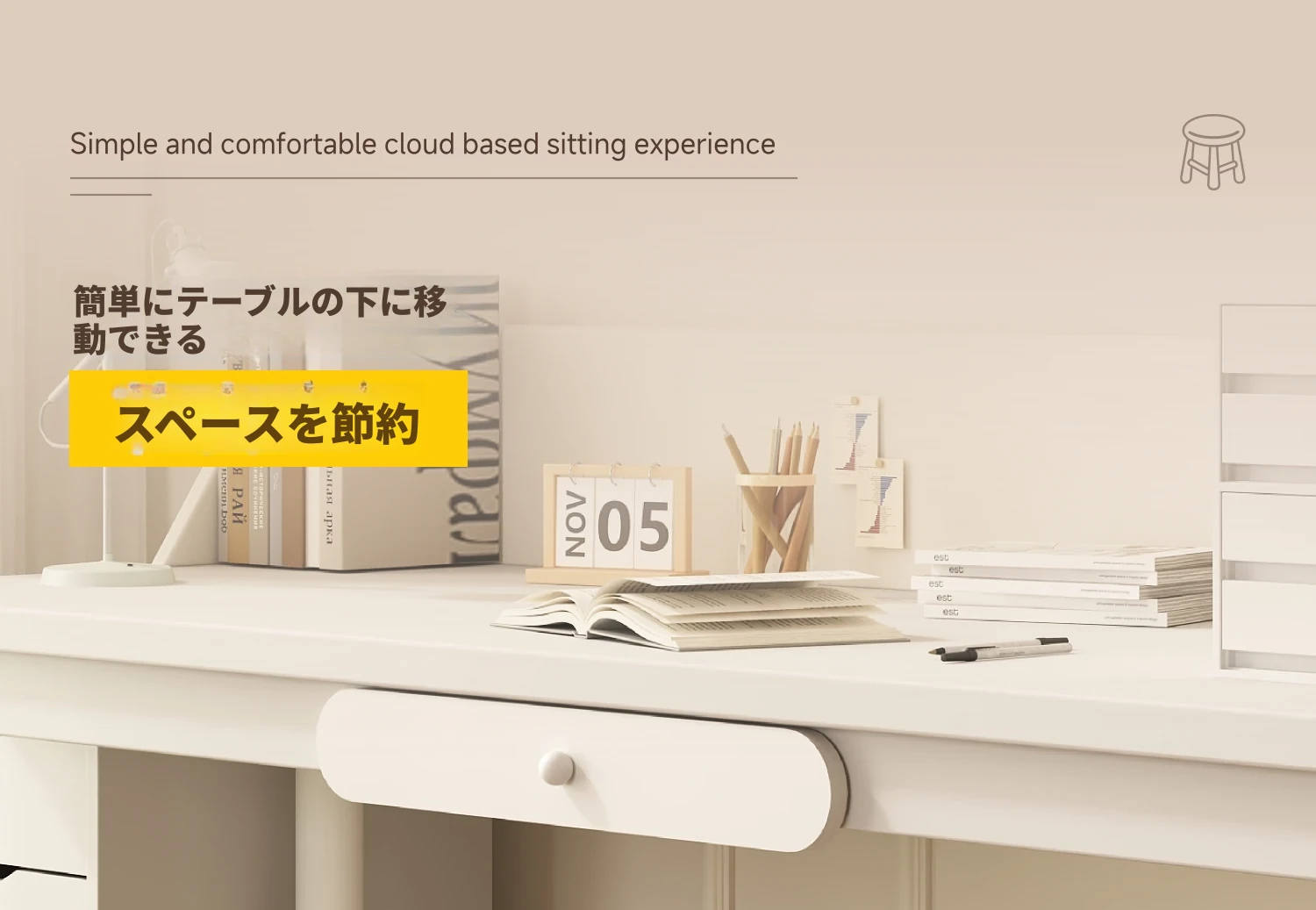 【360°回転可能】猫の爪皮ミルクホワイト-無垢材フレーム