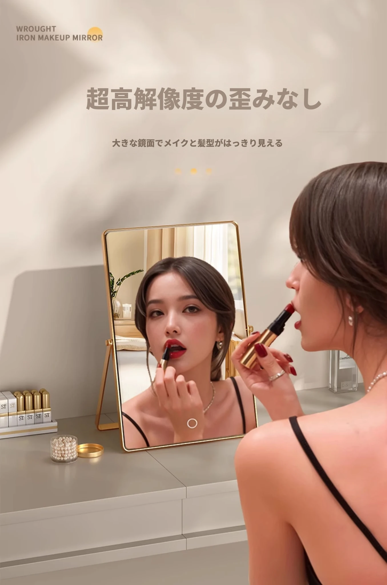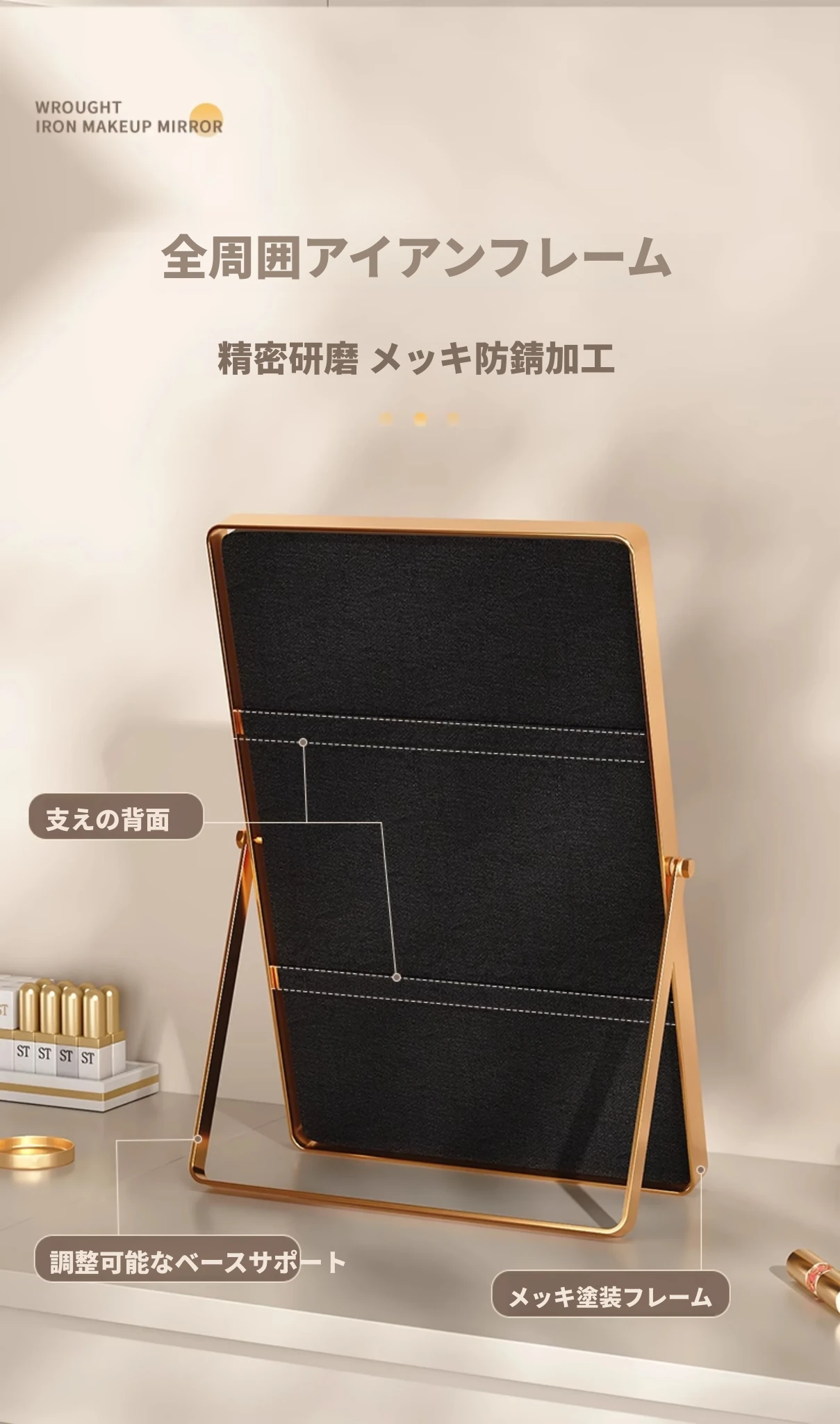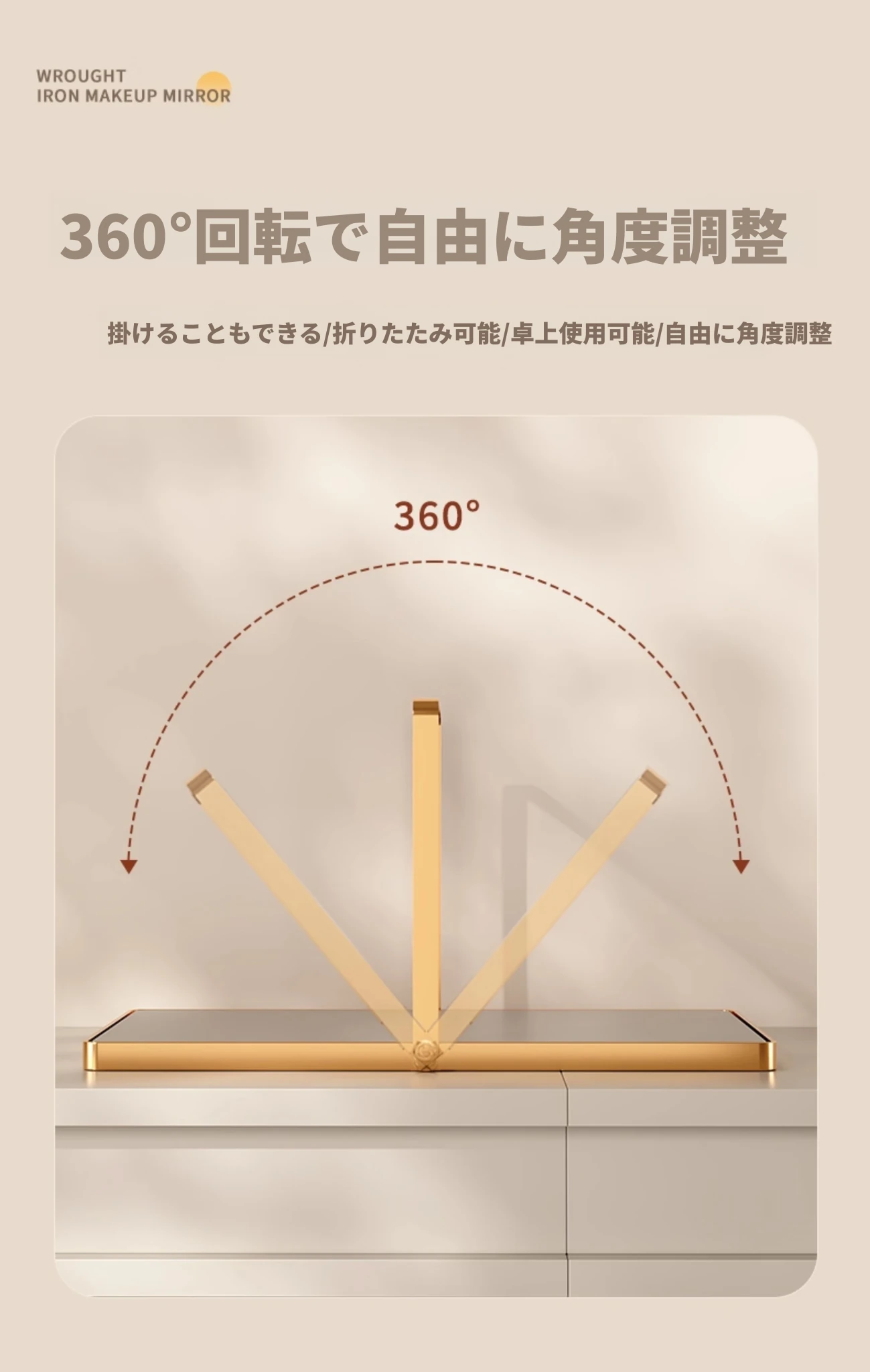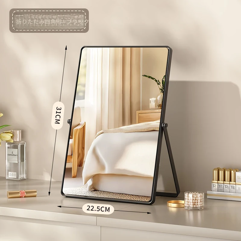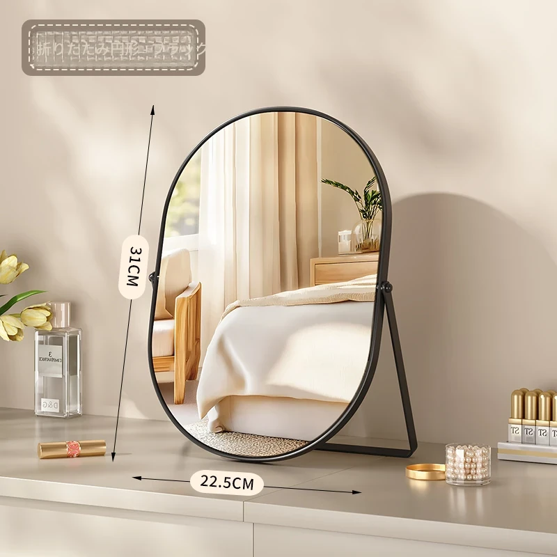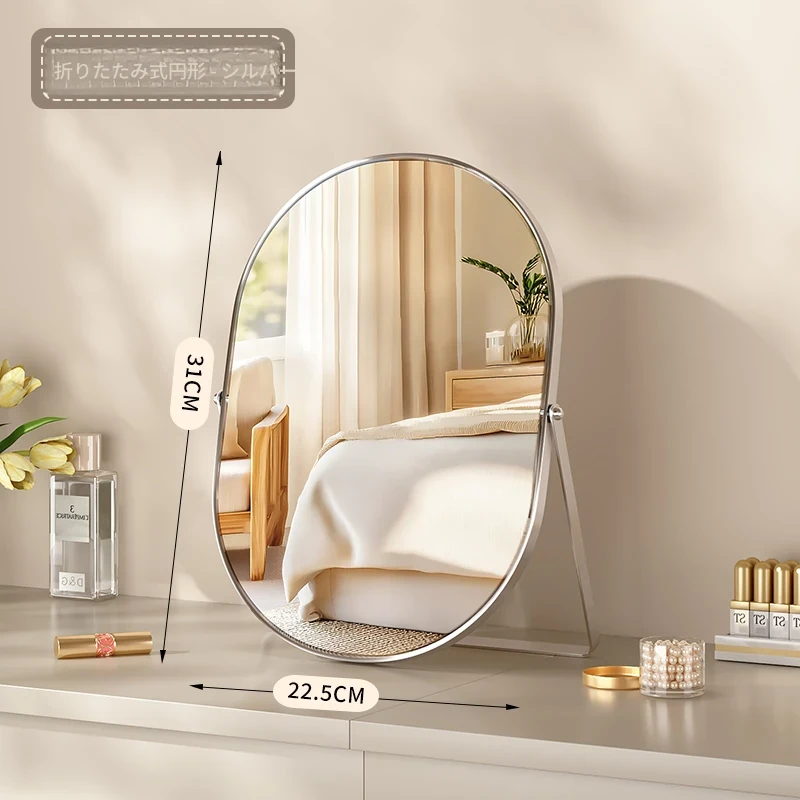学生寮にぴったり!おしゃれなアイアン製折りたたみ化粧鏡 - デスクトップで使える大きな鏡で、リビングや寝室のメイクアップをサポート。快適なビューティータイムを実現します!