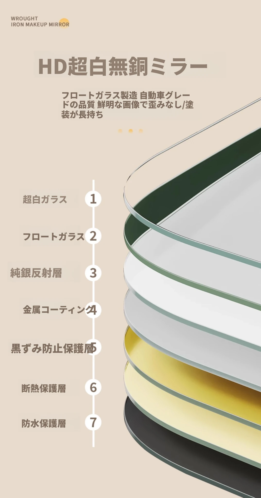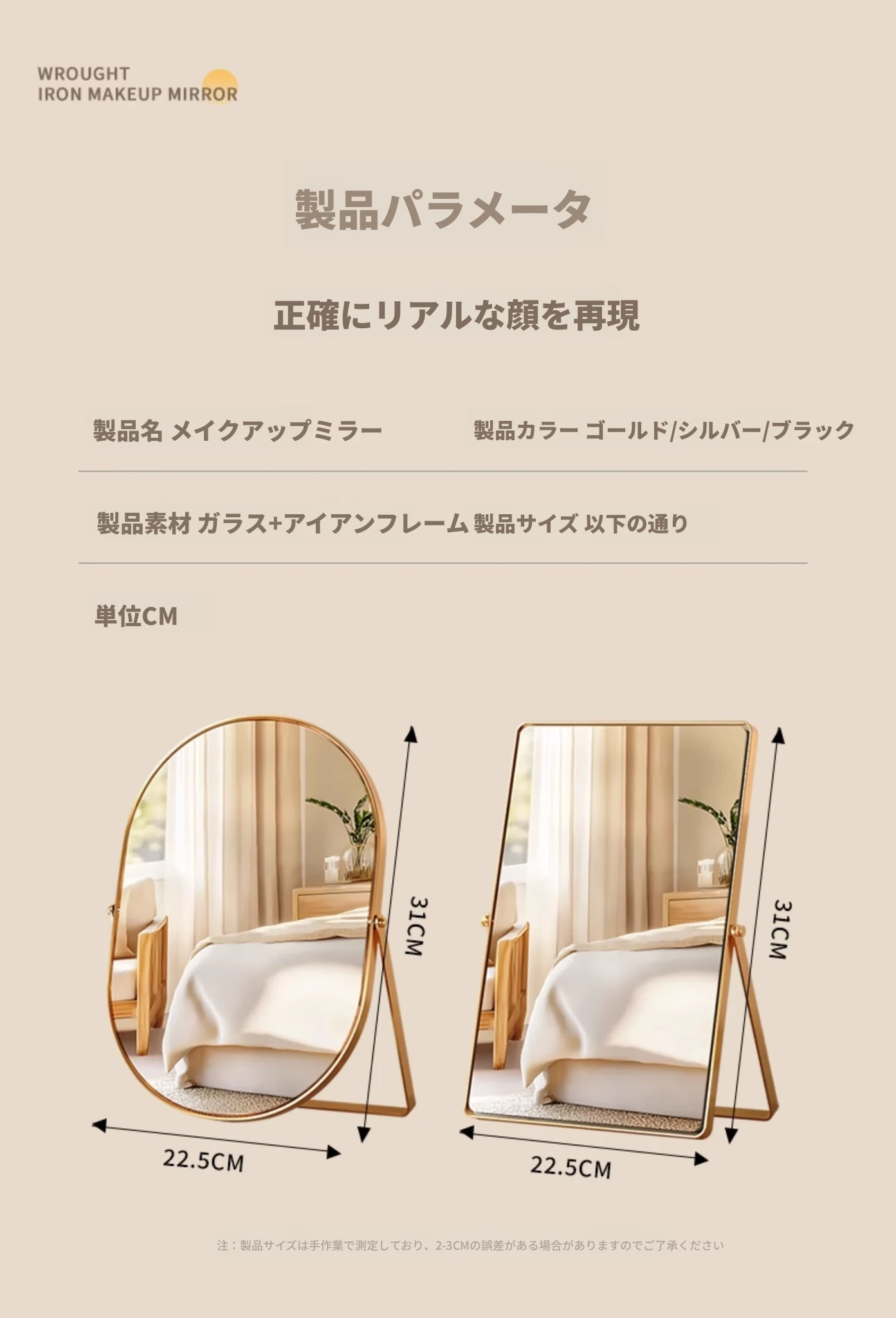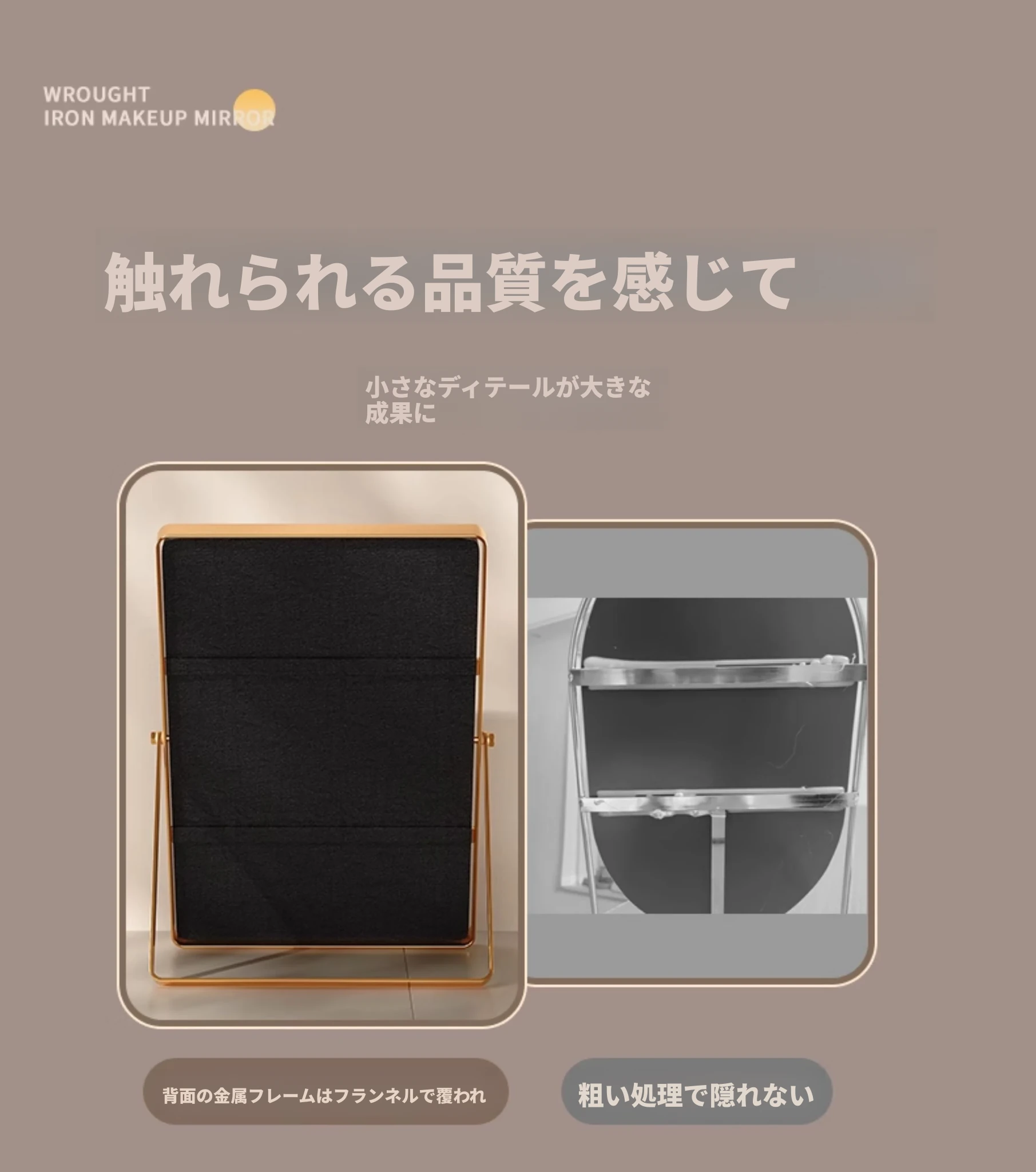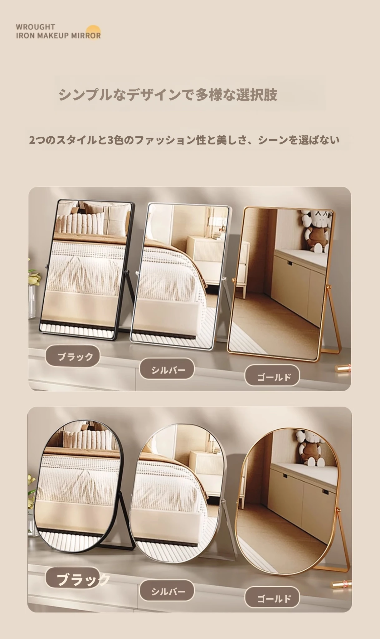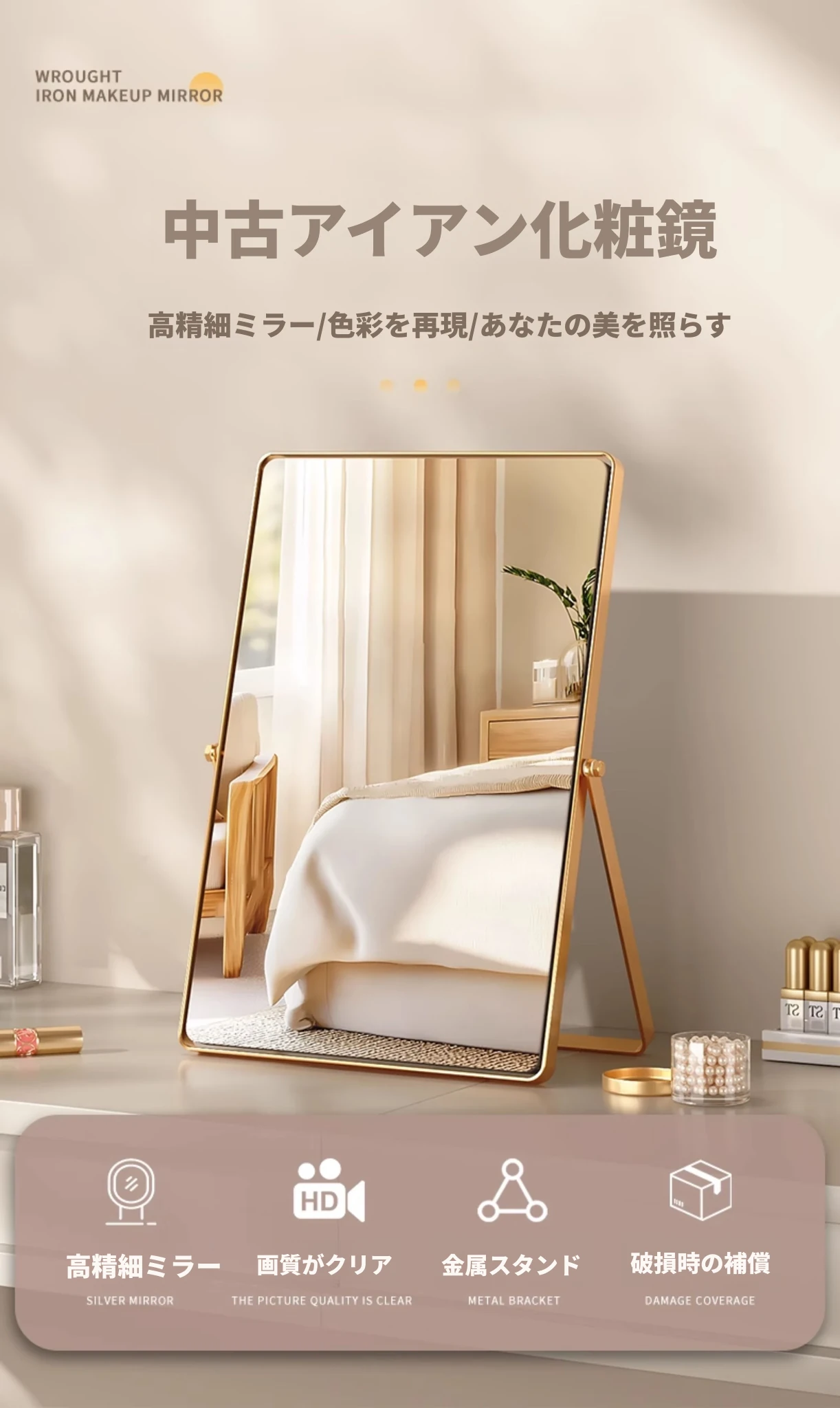 学生寮にぴったり!おしゃれなアイアン製折りたたみ化粧鏡 - デスクトップで使える大きな鏡で、リビングや寝室のメイクアップをサポート。快適なビューティータイムを実現します!