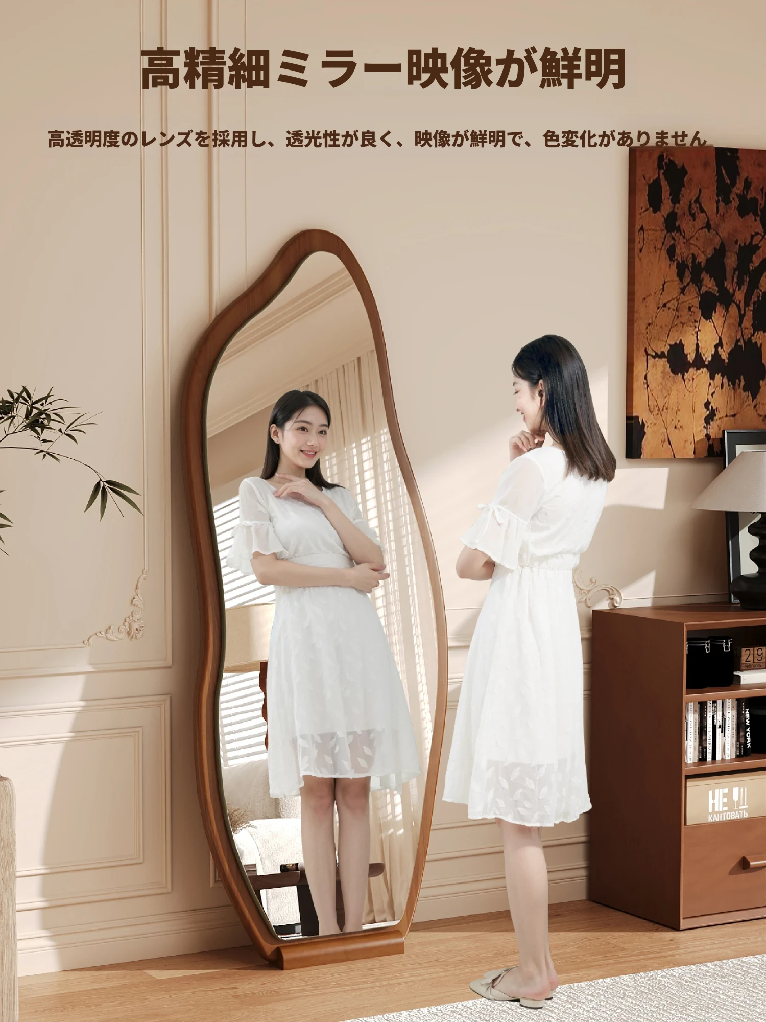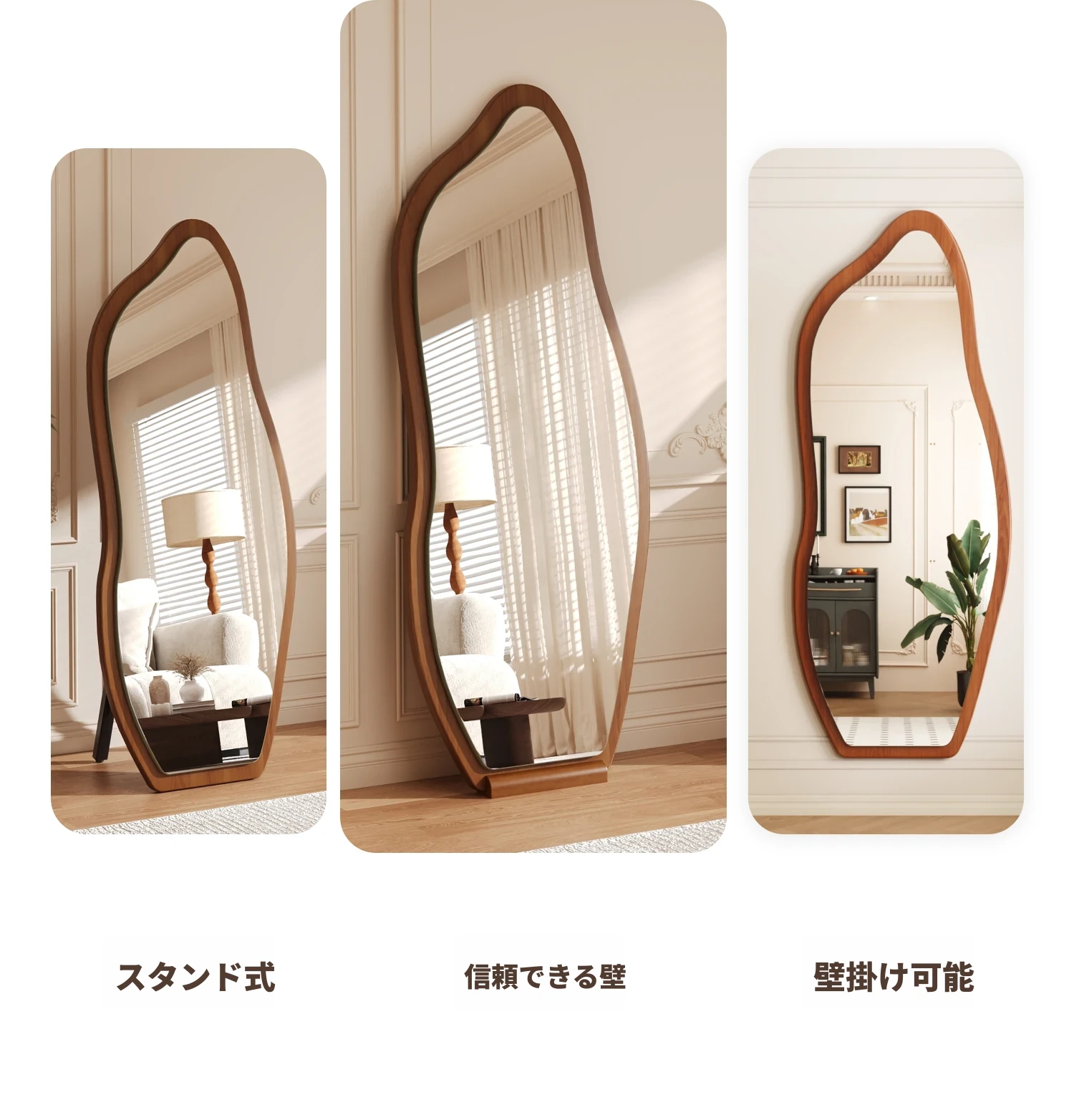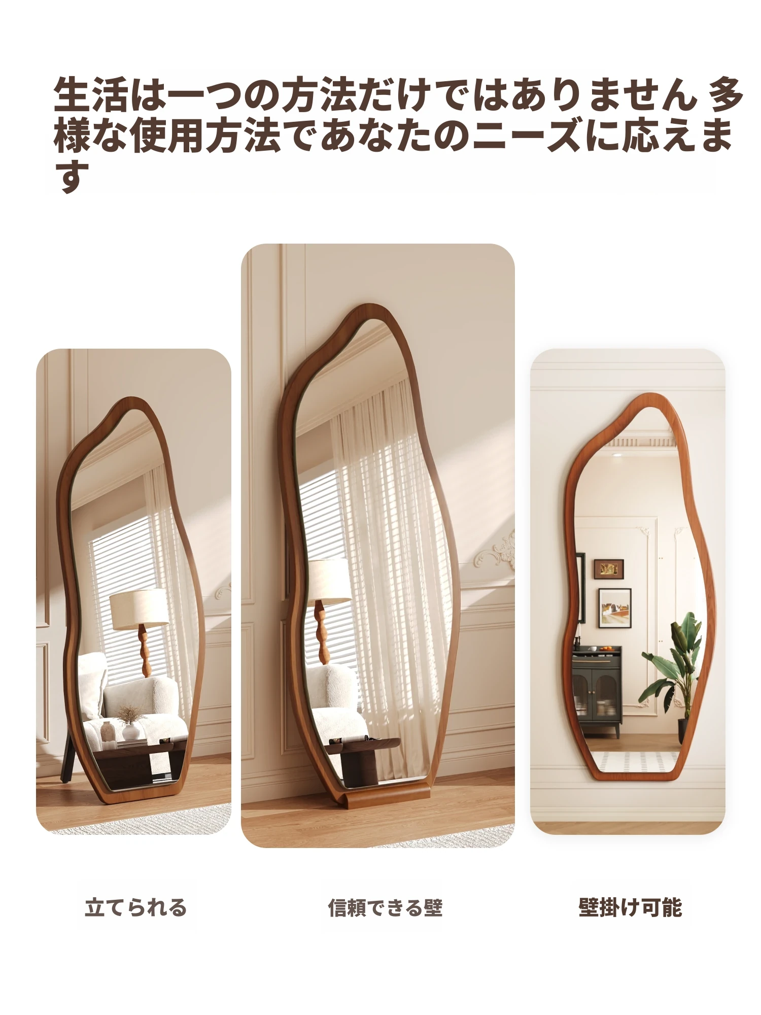 高級感漂う中古全身鏡!おしゃれなデザインのフロアミラー、寝室やクローゼットにぴったりなユニークな形状の衣類試着用ミラー。お部屋をスタイリッシュに演出し、毎日のコーディネートを楽しむ!