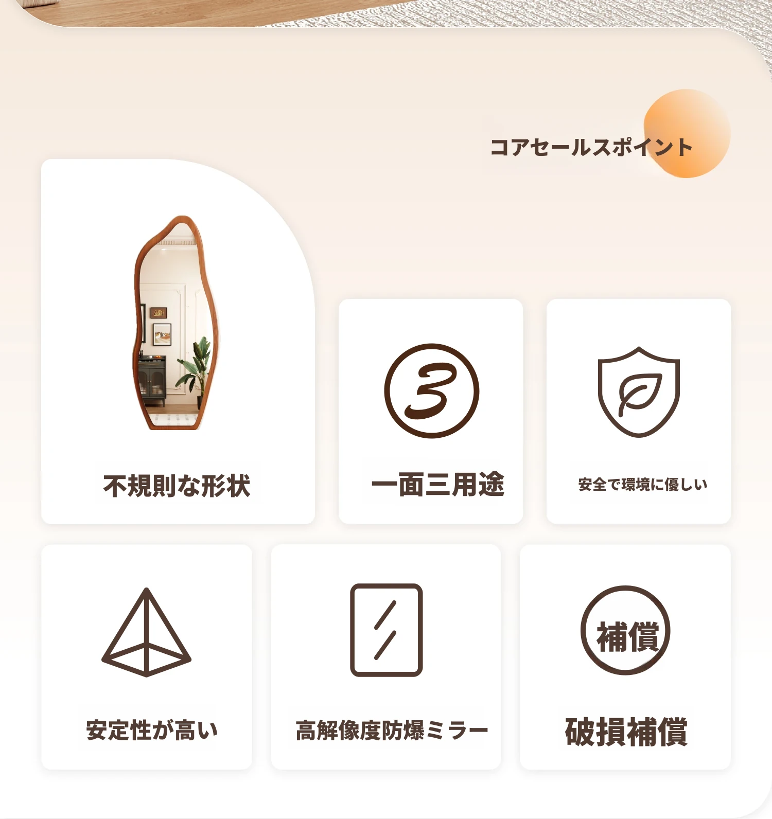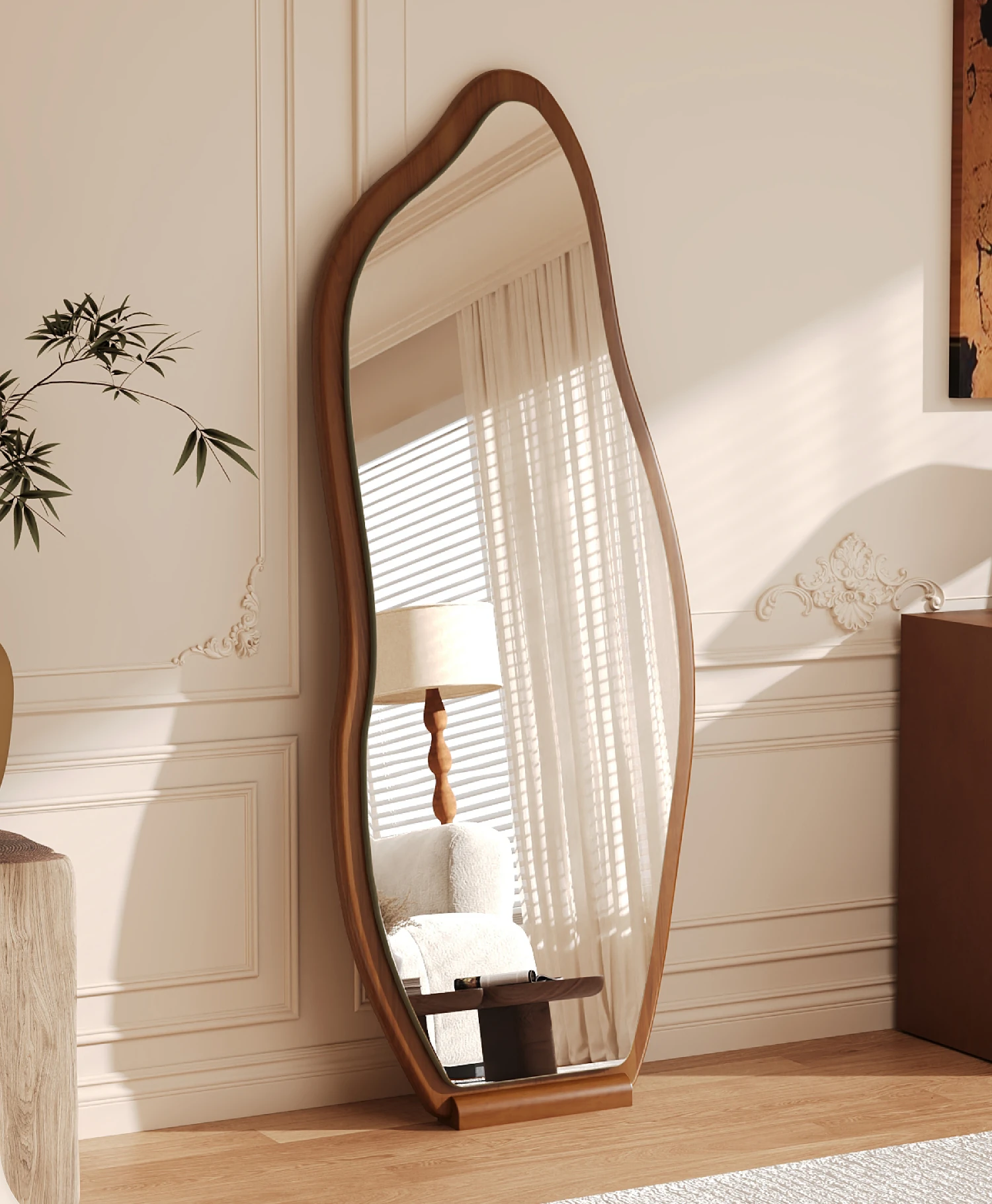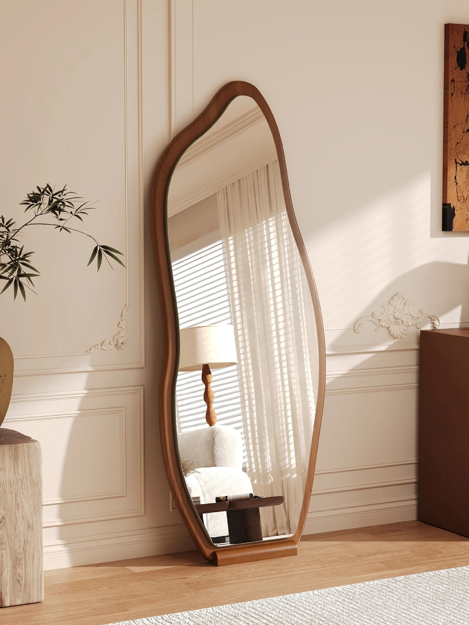 高級感漂う中古全身鏡!おしゃれなデザインのフロアミラー、寝室やクローゼットにぴったりなユニークな形状の衣類試着用ミラー。お部屋をスタイリッシュに演出し、毎日のコーディネートを楽しむ!