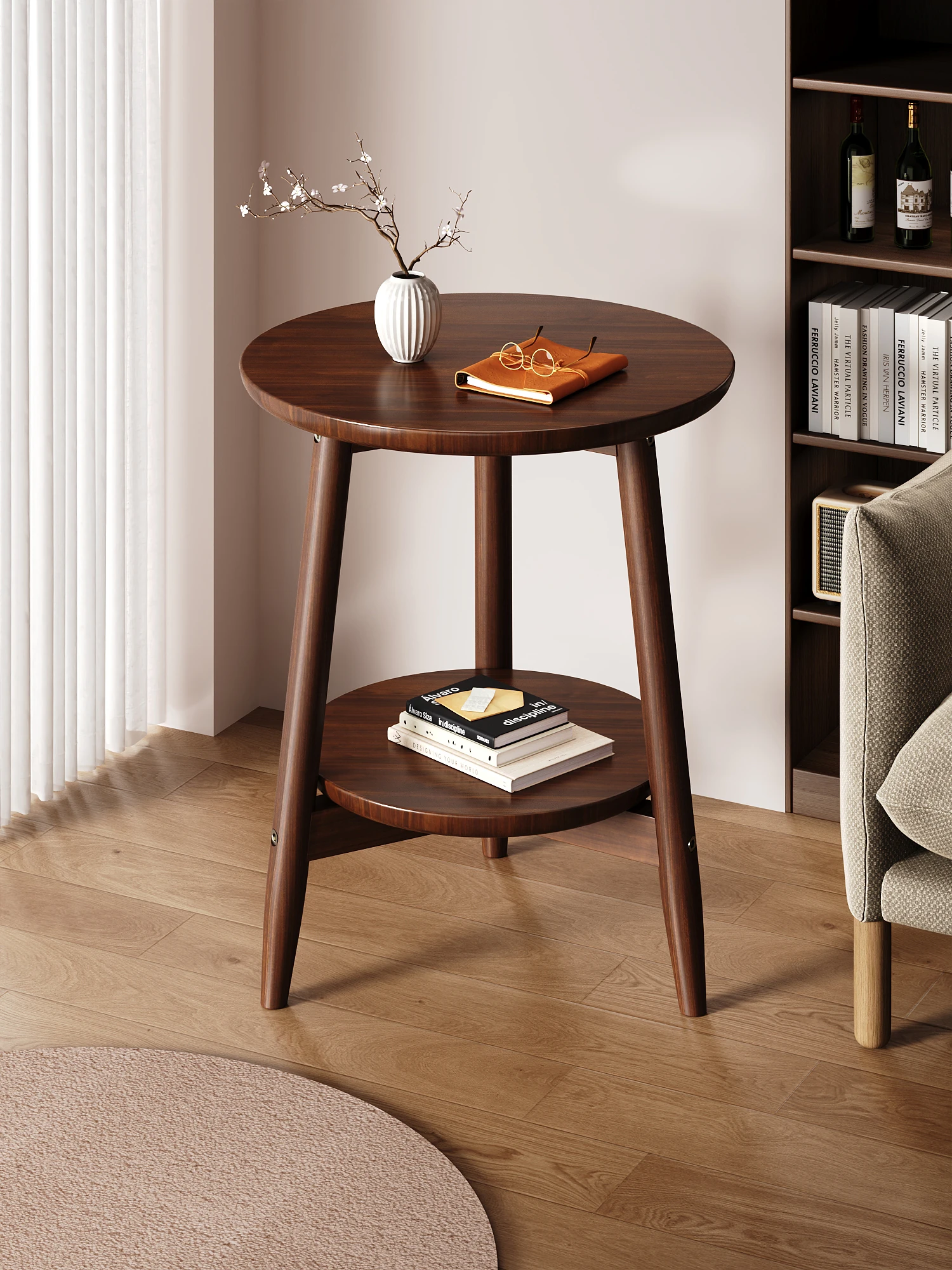 天然木製の小さなサイドテーブル - シンプルでおしゃれなリビングやバルコニーにぴったり!コーヒーテーブルやベッドサイドテーブル、ソファ脇のスペースにも最適です。あなたの生活空間を一層引き立てる一品!