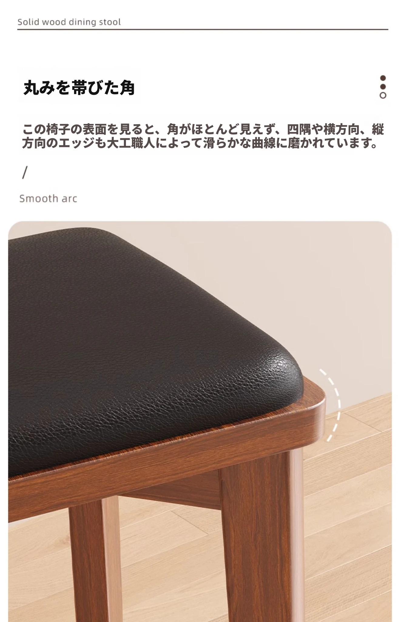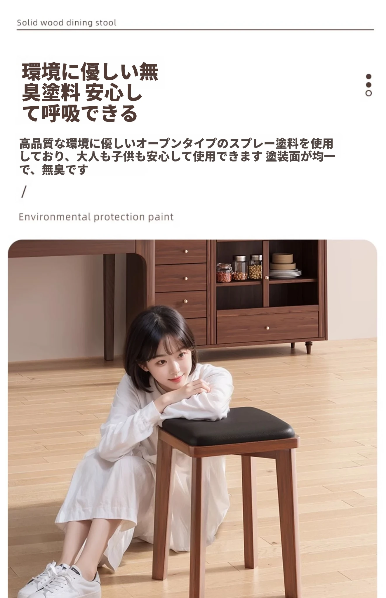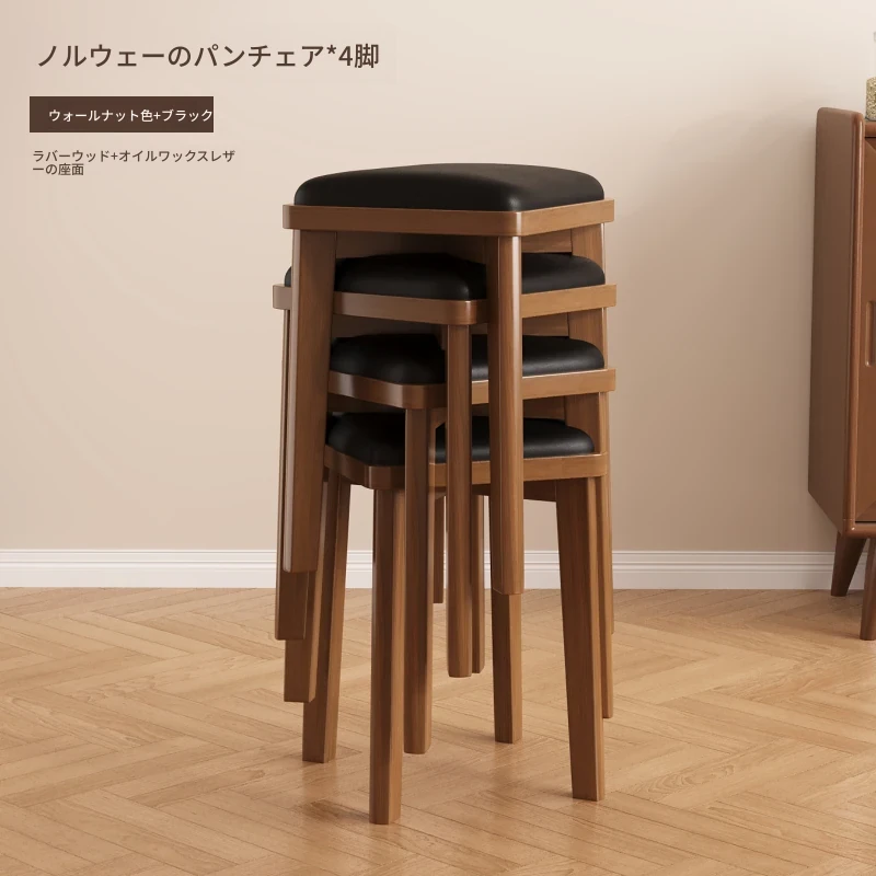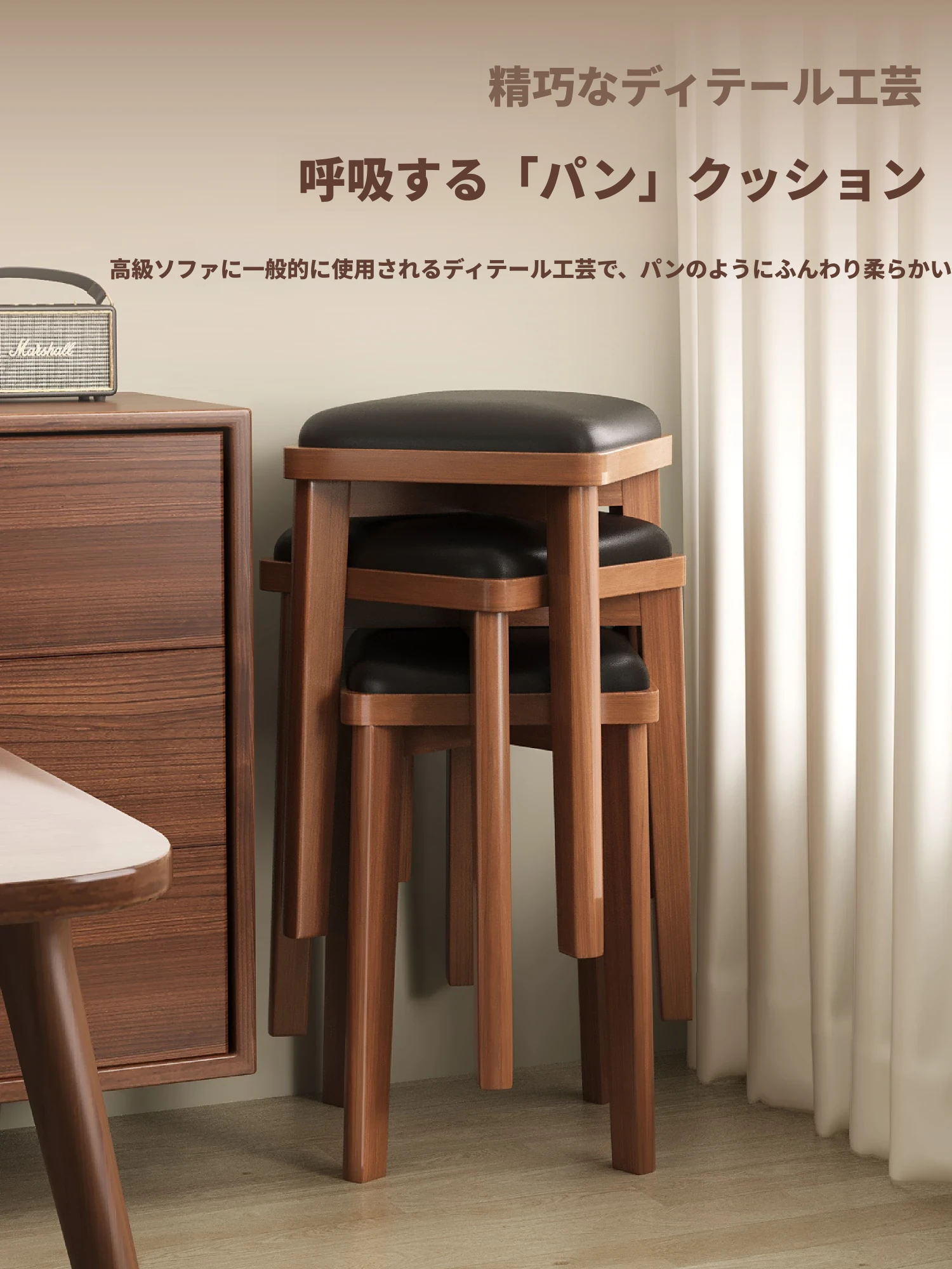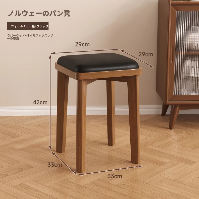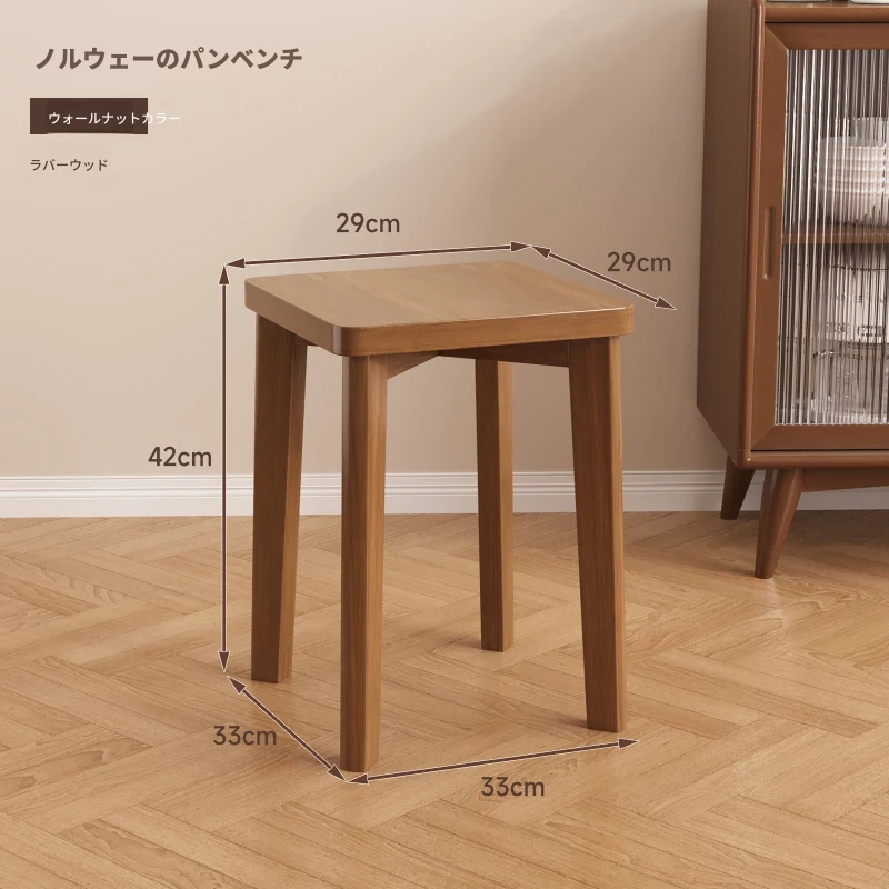 【純粋な無垢材のスツール】くるみの座面+くるみ色の脚+4脚セット