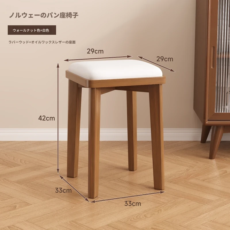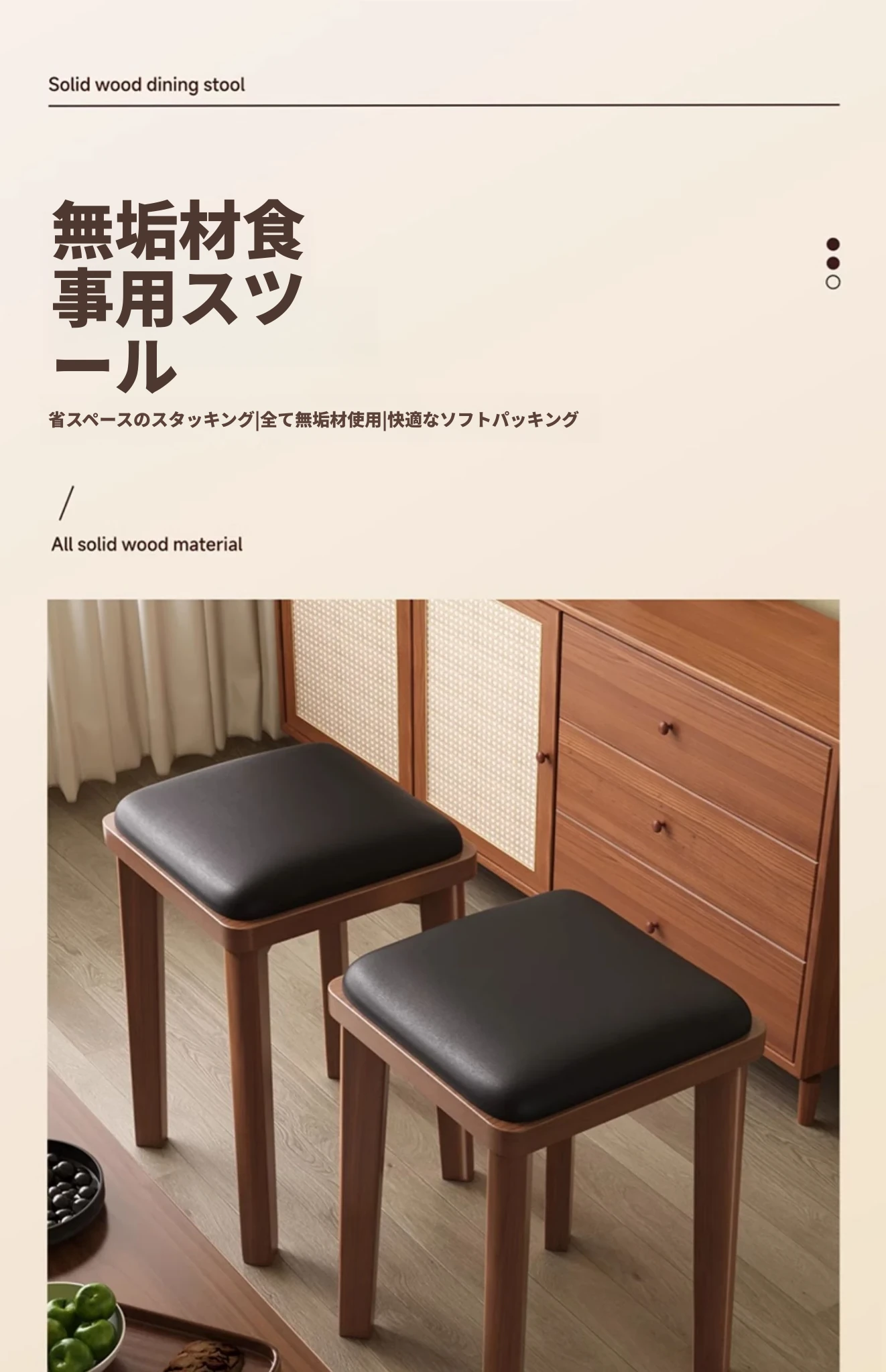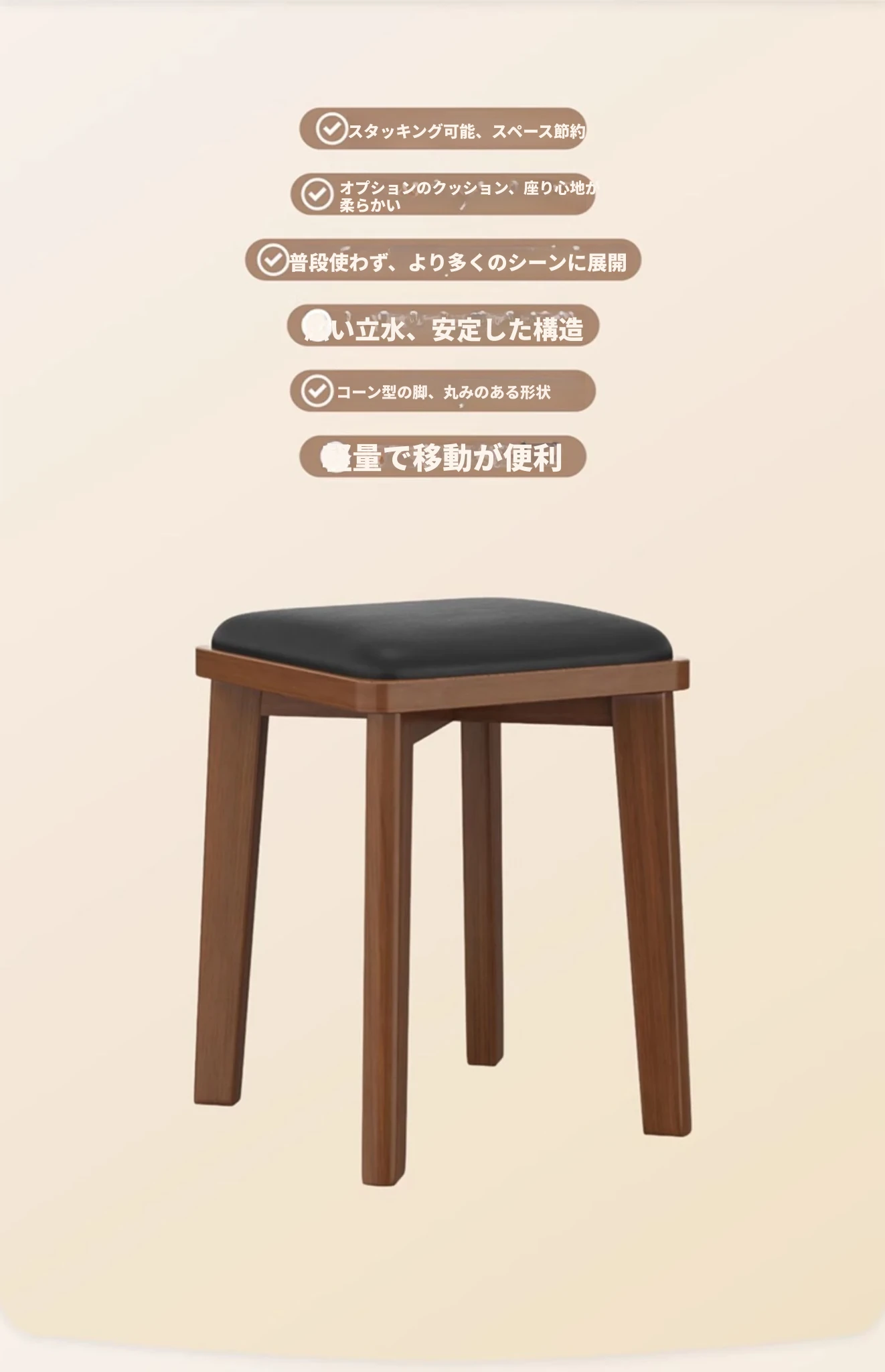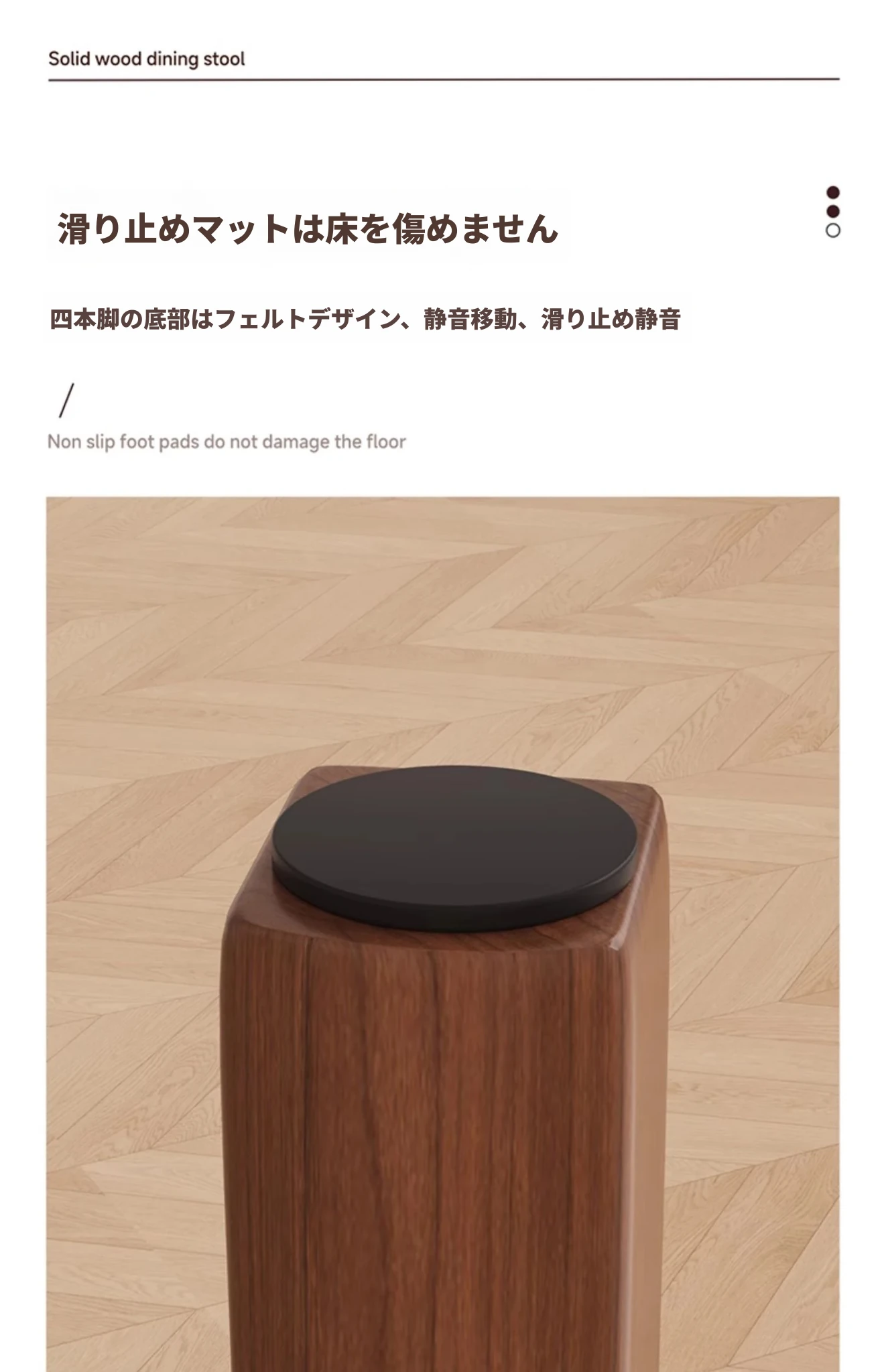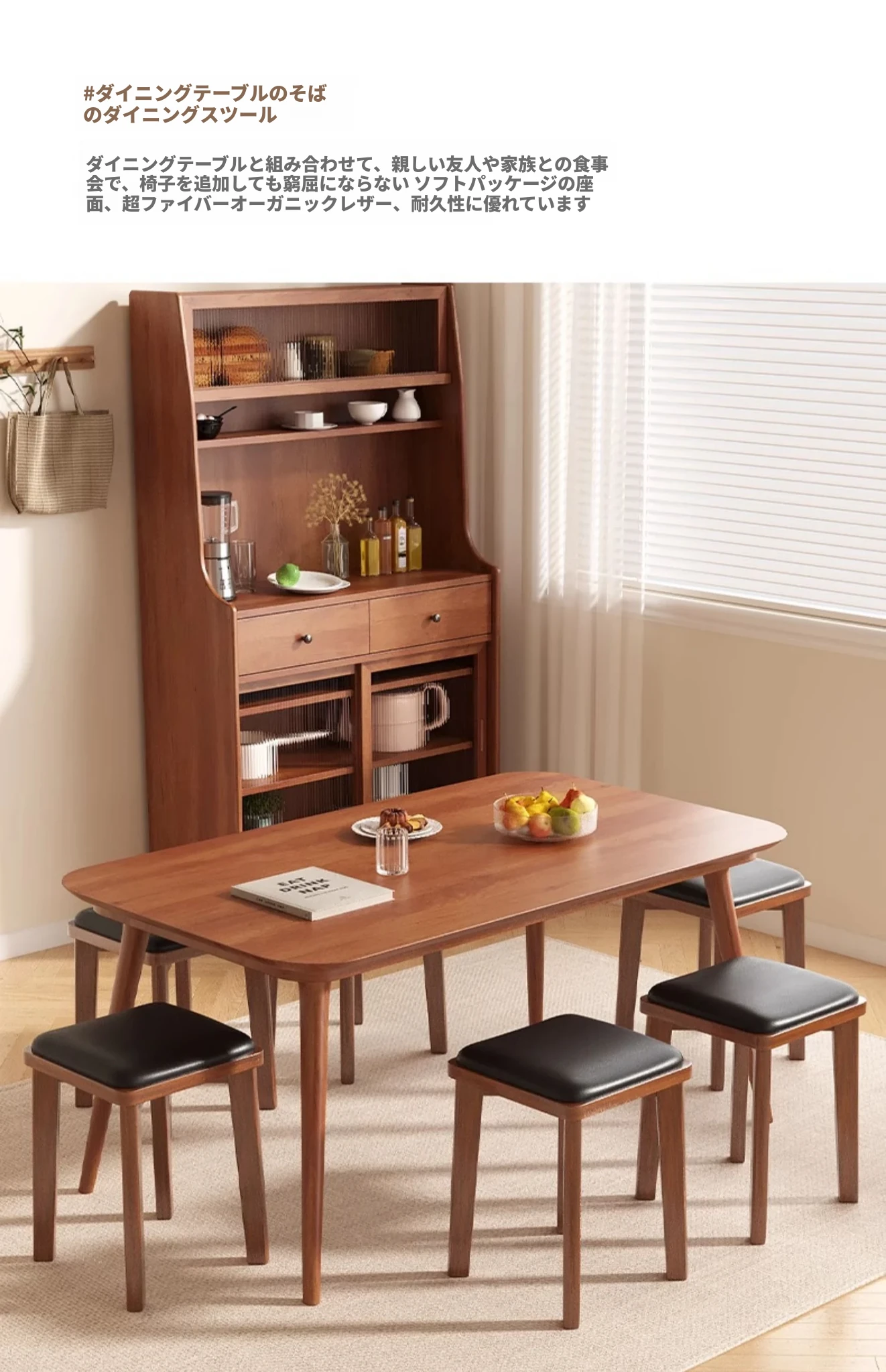 【純粋な無垢材のスツール】くるみの座面+くるみ色の脚+4脚セット