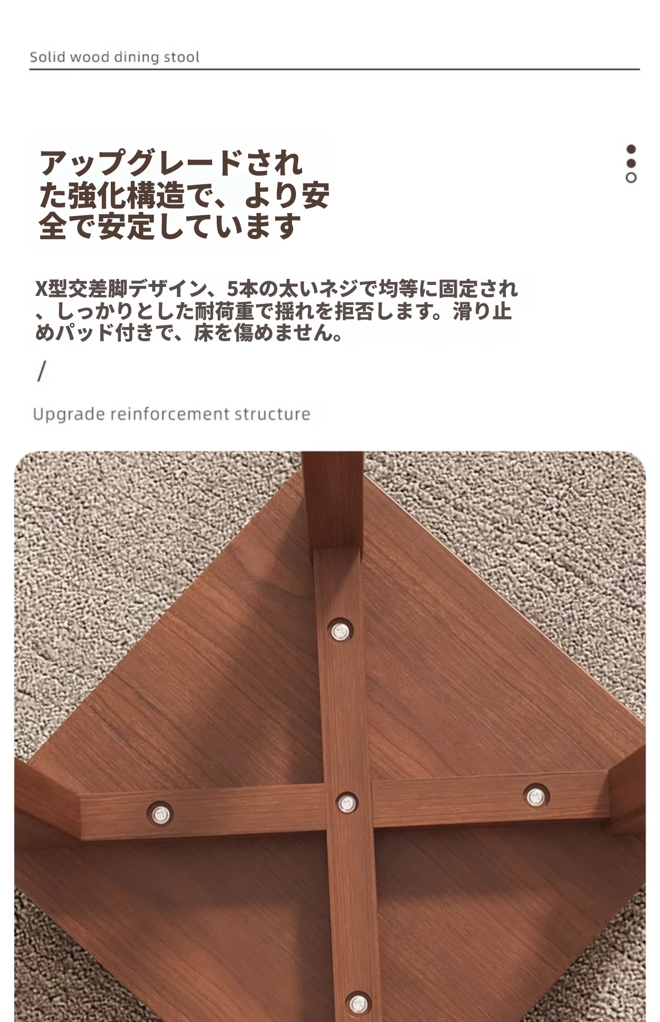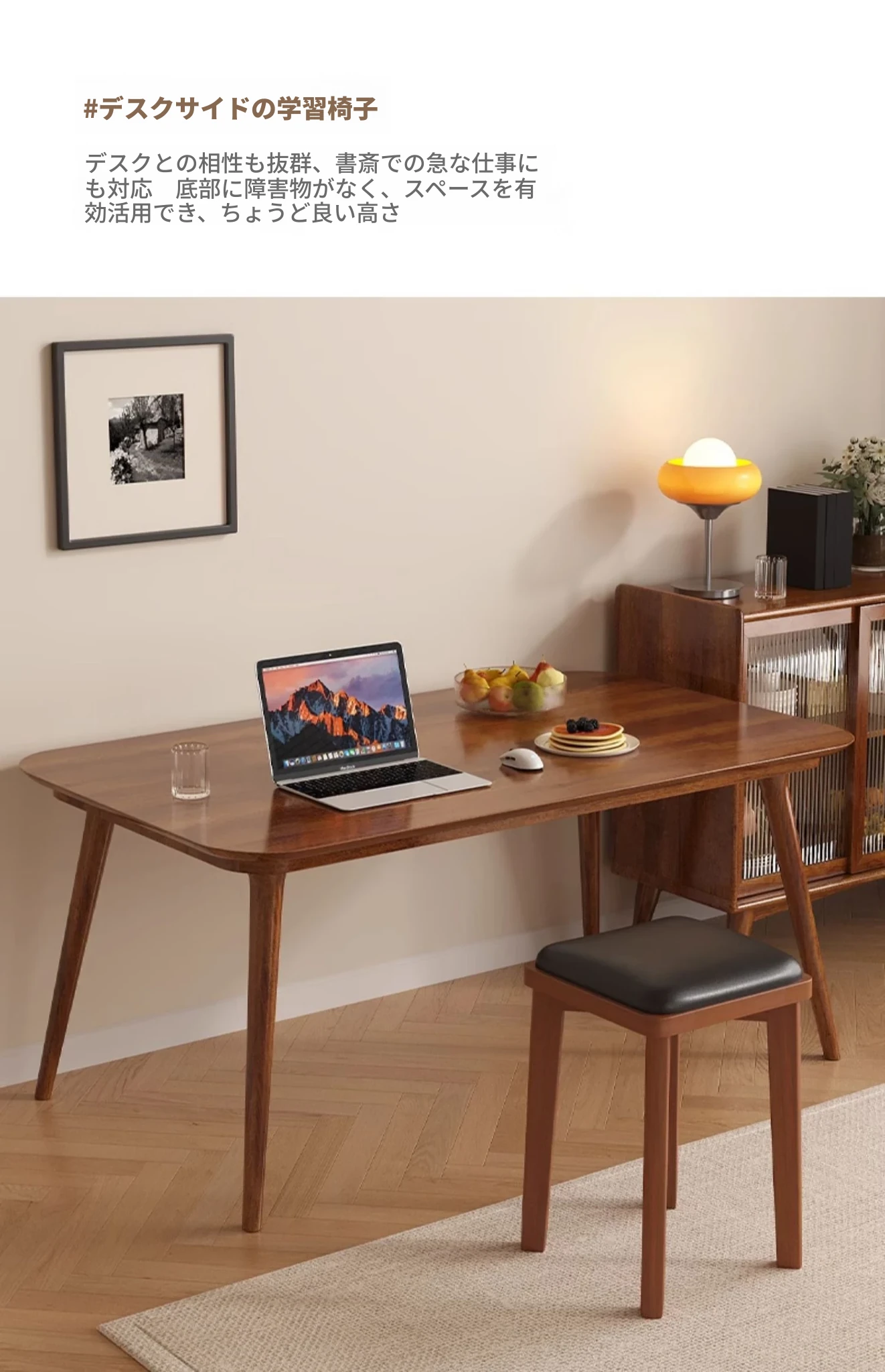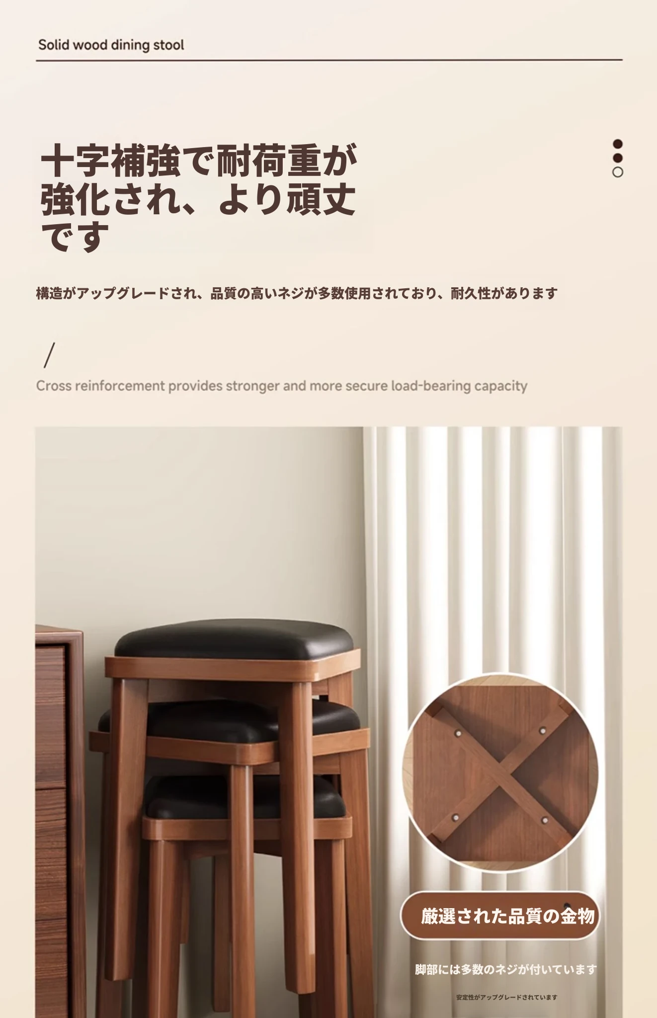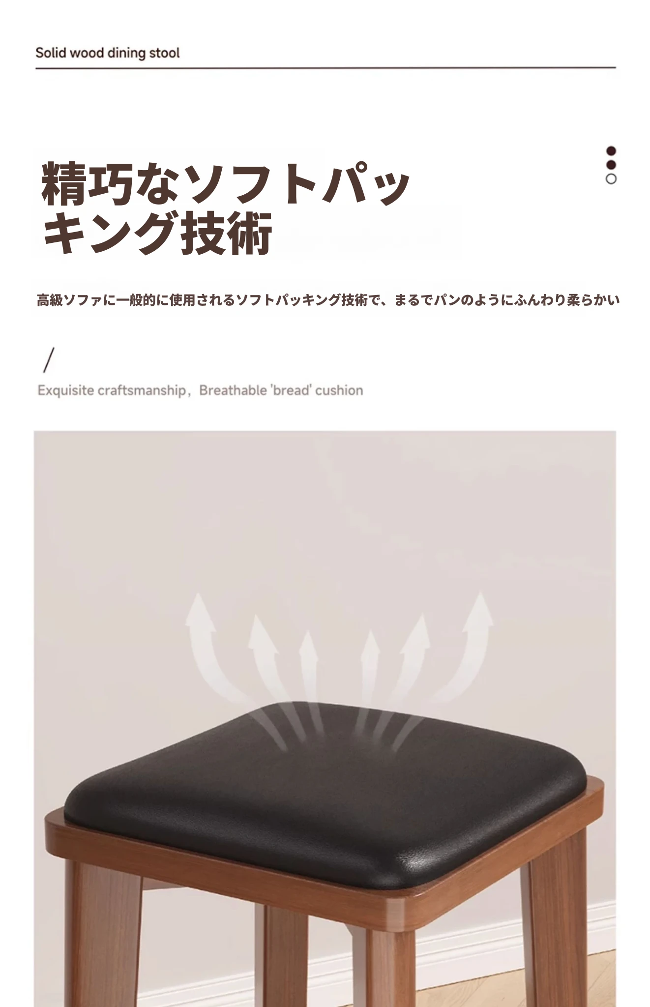 【純粋な無垢材のスツール】くるみの座面+くるみ色の脚+4脚セット