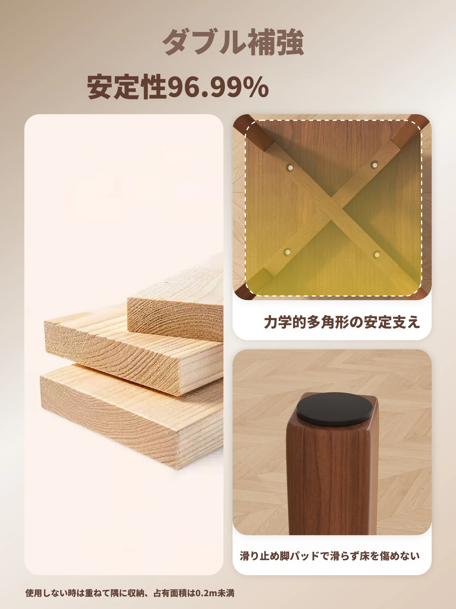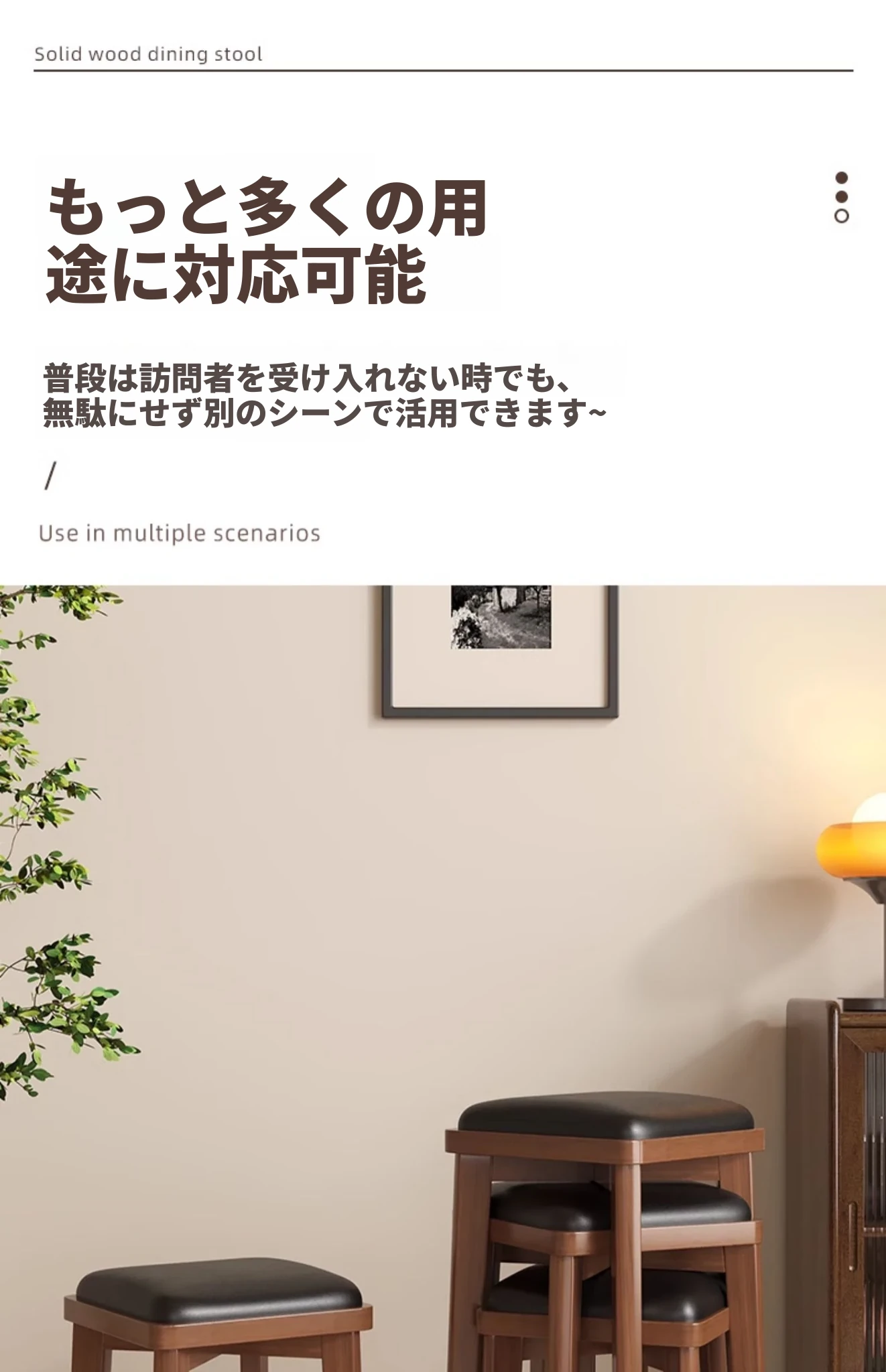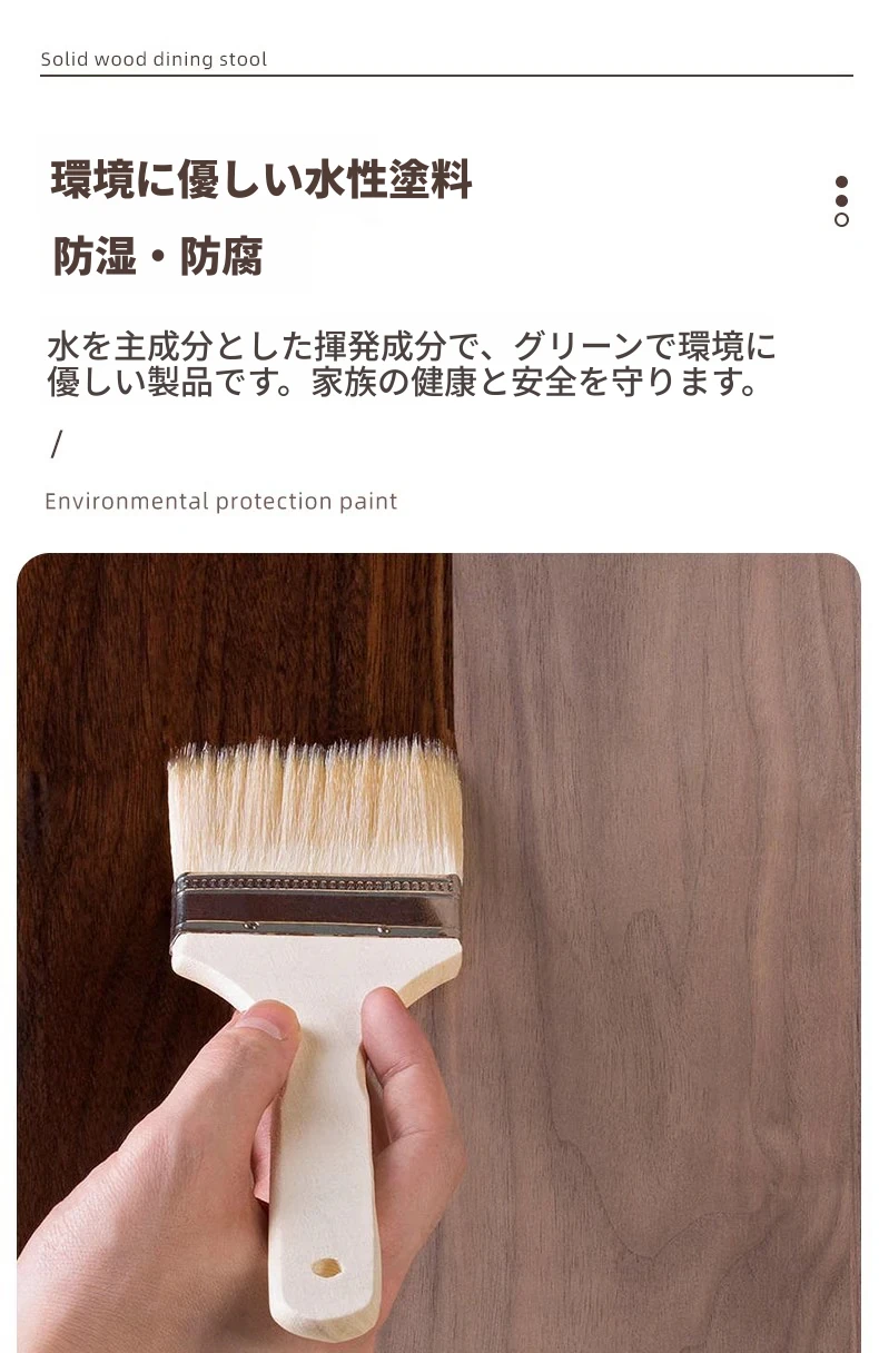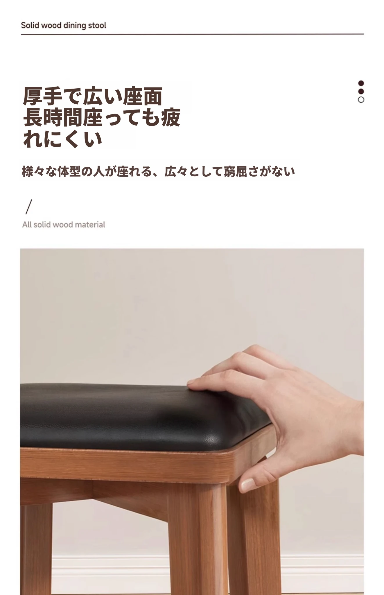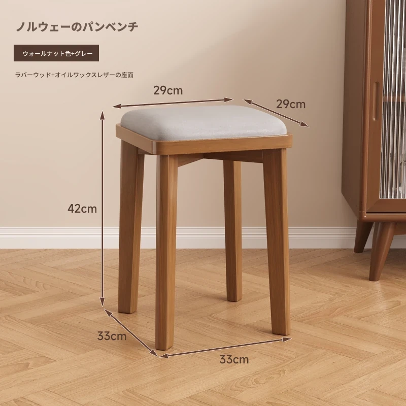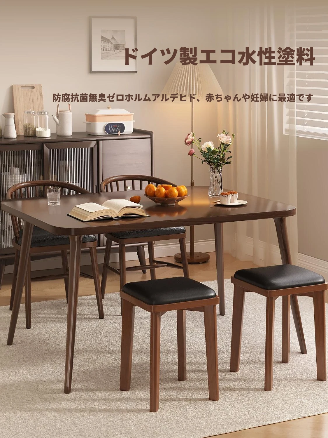 【純粋な無垢材のスツール】くるみの座面+くるみ色の脚+4脚セット