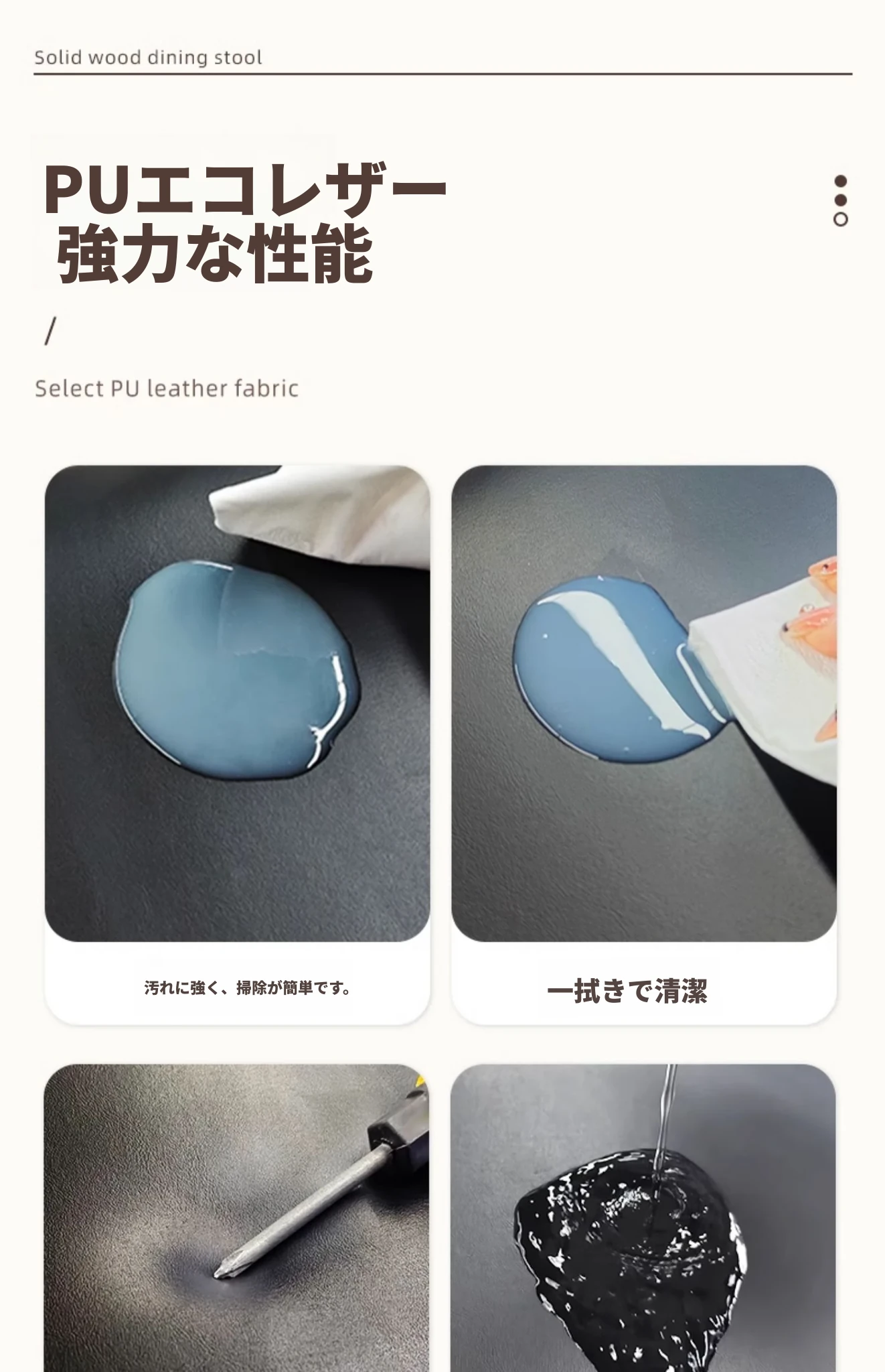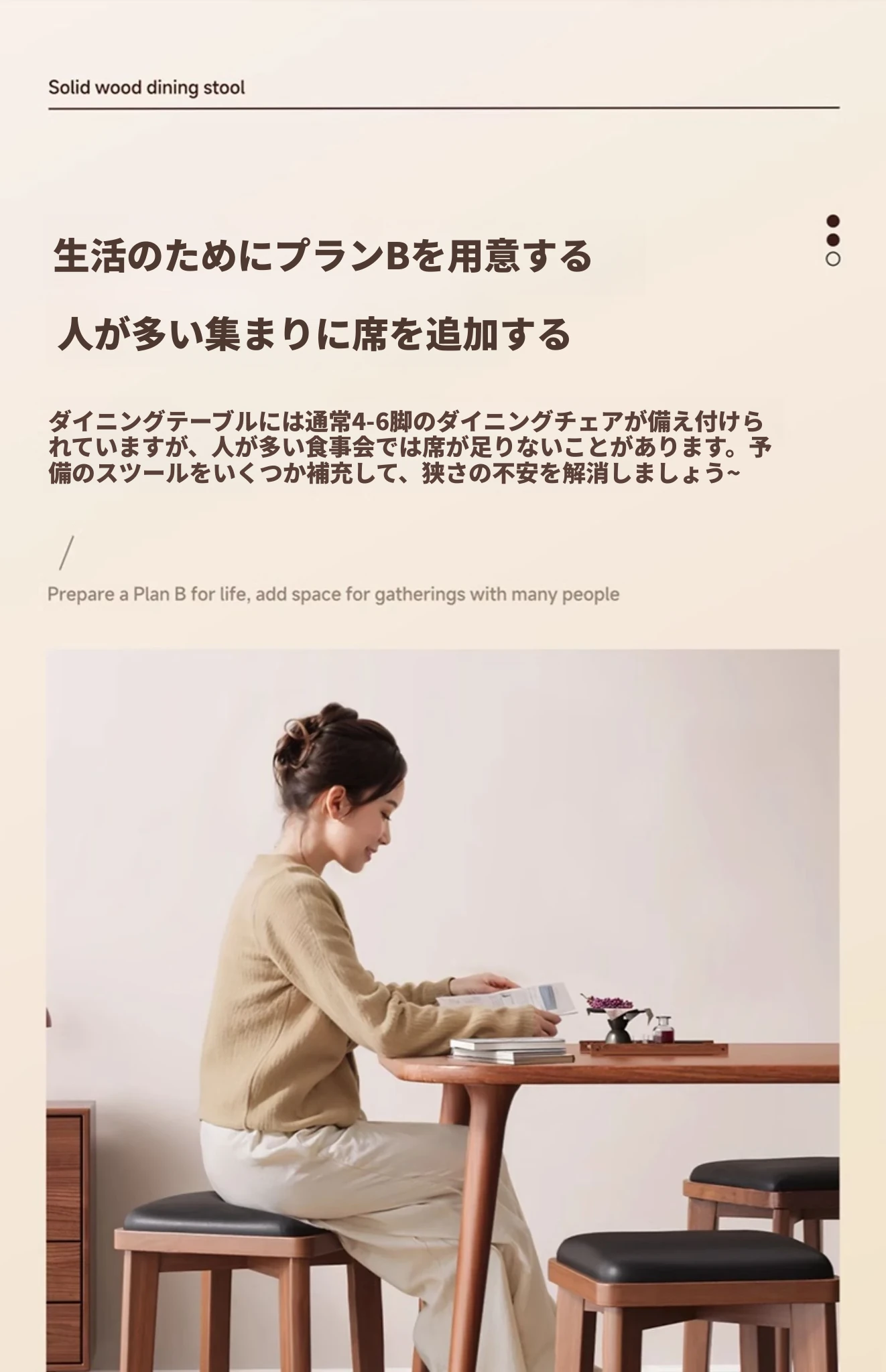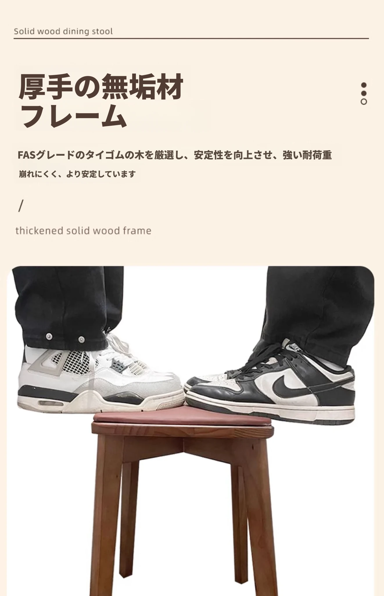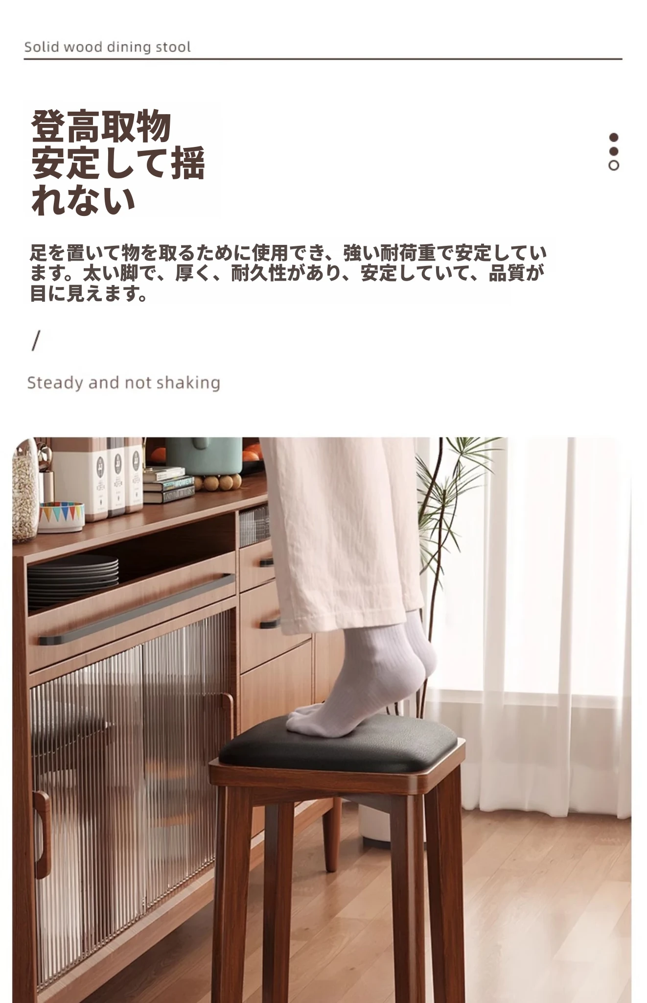 【純粋な無垢材のスツール】くるみの座面+くるみ色の脚+4脚セット