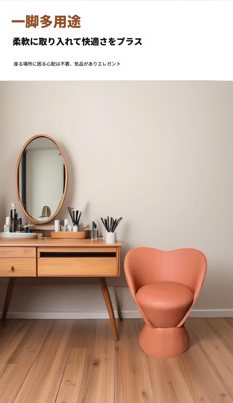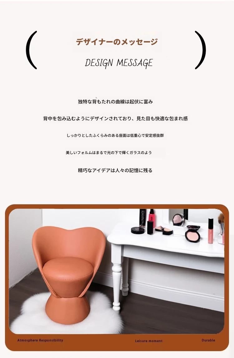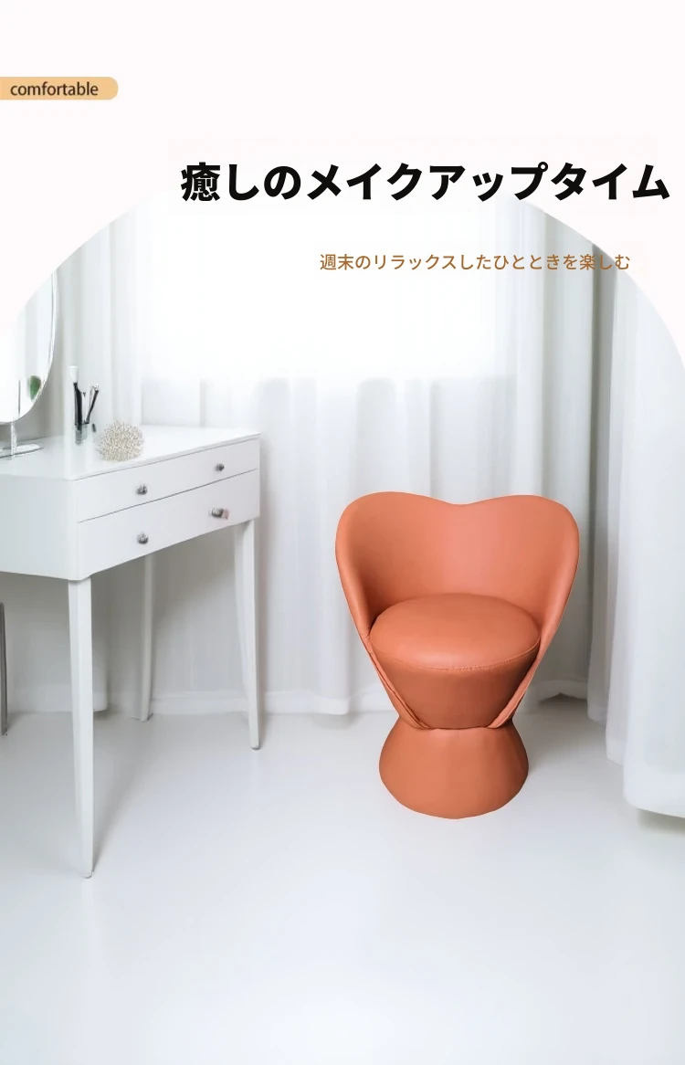 軽やかでラグジュアリーなメイクアップスツール|インスタ映えするおしゃれなデザイン|背もたれ付きの実木製メイクチェア|リビングやティーテーブルにぴったりなコンパクトなスツール!