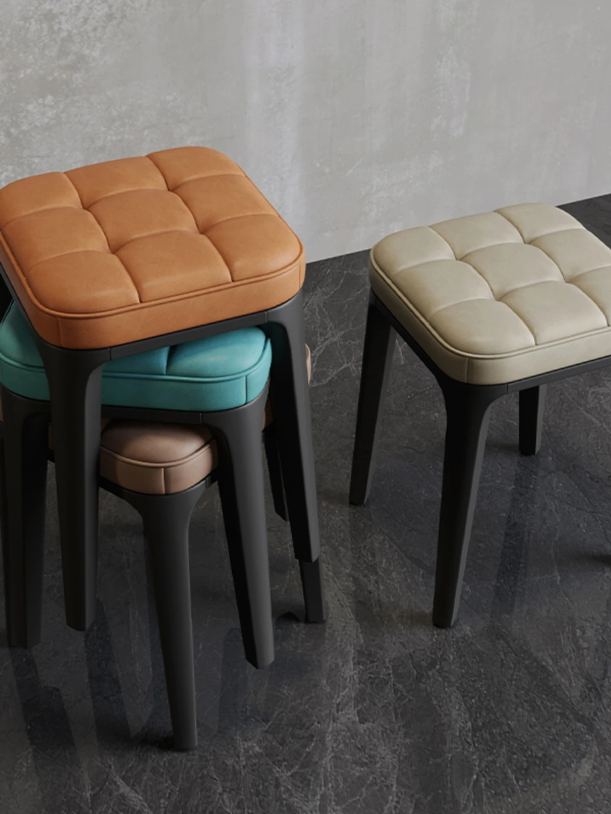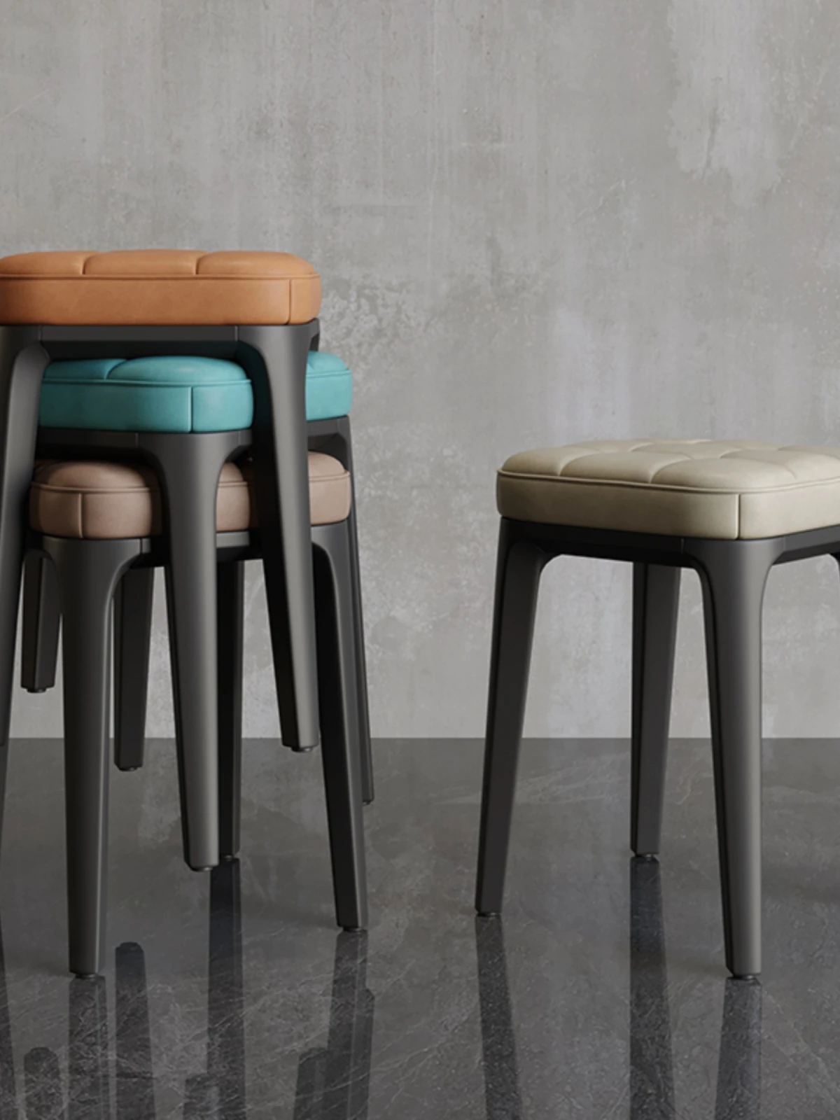北欧スタイルの軽やかな高級感!厚手で重ねられる家庭用ダイニングチェア。モダンシンプルなデザイン、プラスチック製の実用的なスツール。おしゃれなレストランやお部屋にぴったり!