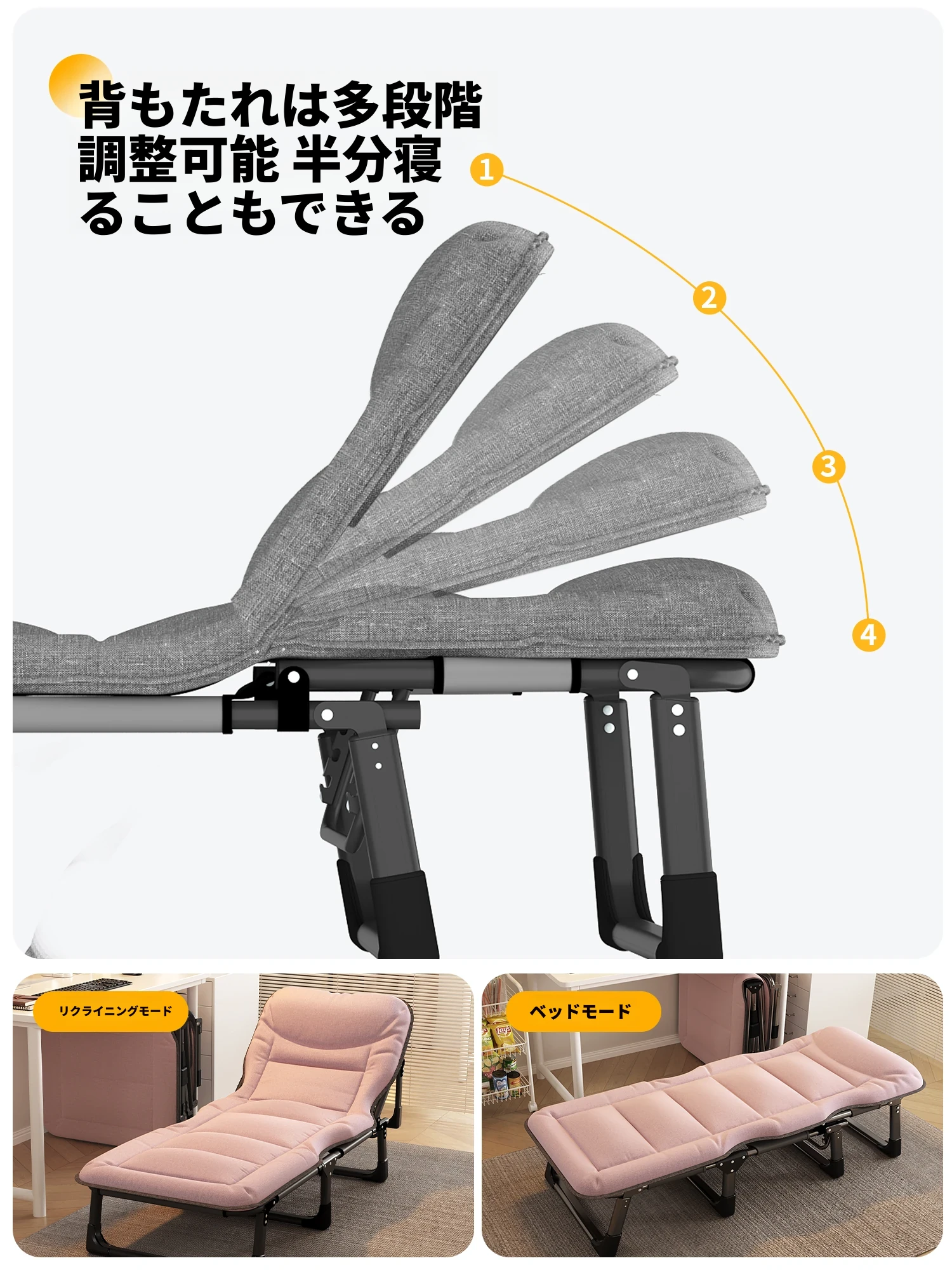 おすすめ【190*68幅 加長加広 負荷300斤】活力オレンジ 背もたれ多段階調整可