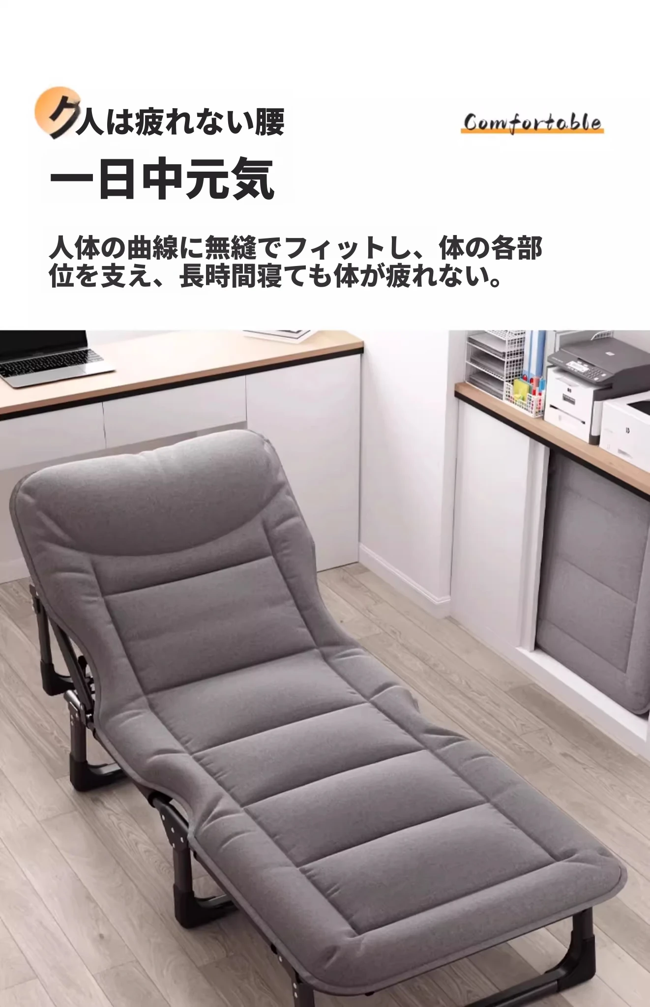 【190*75幅 厚壁強化 負荷350斤】ラグジュアリーグレー 長時間座っても疲れない腰