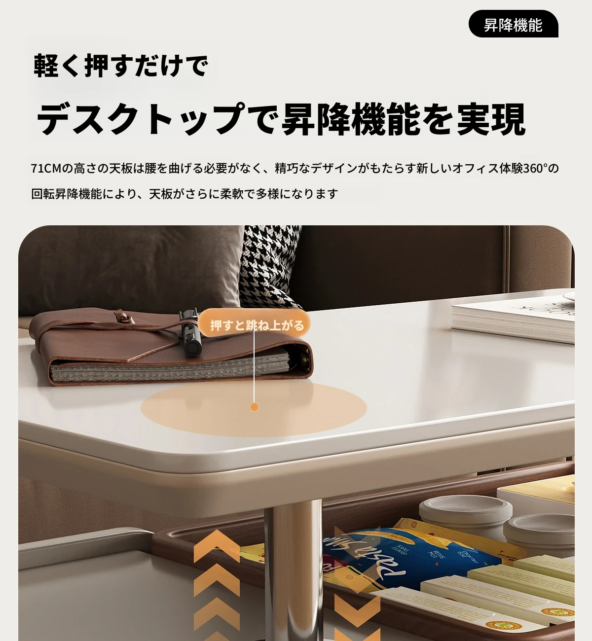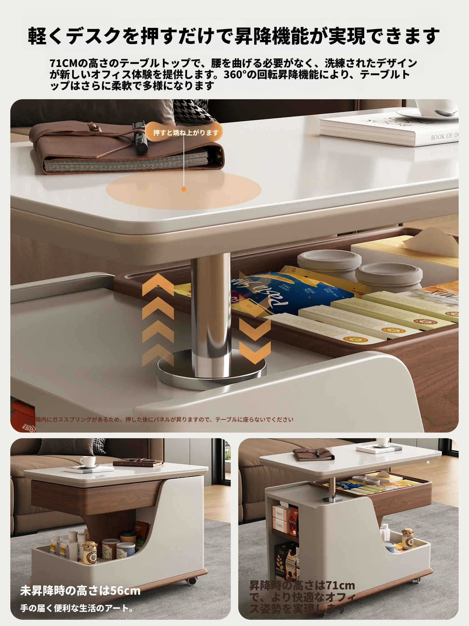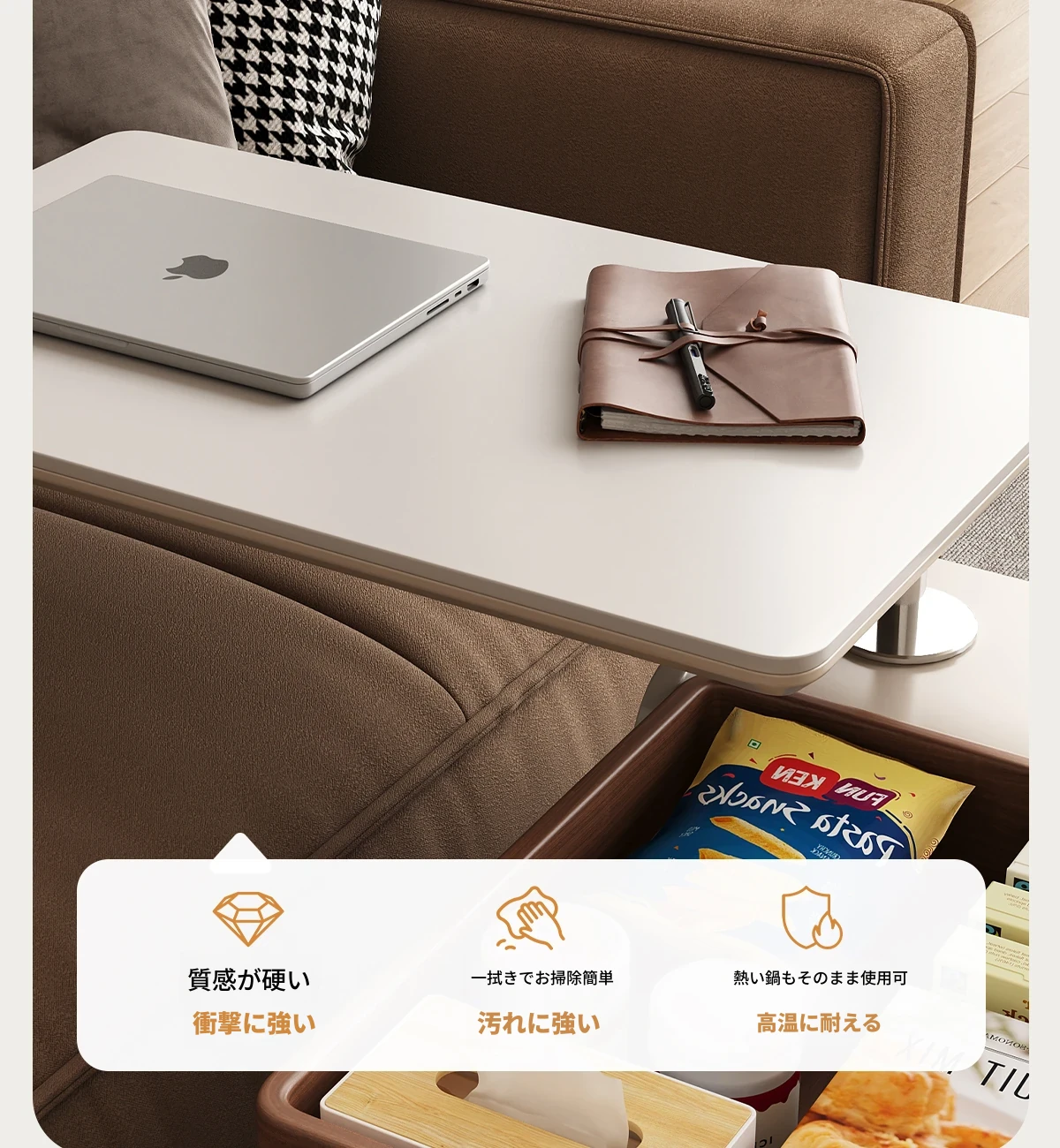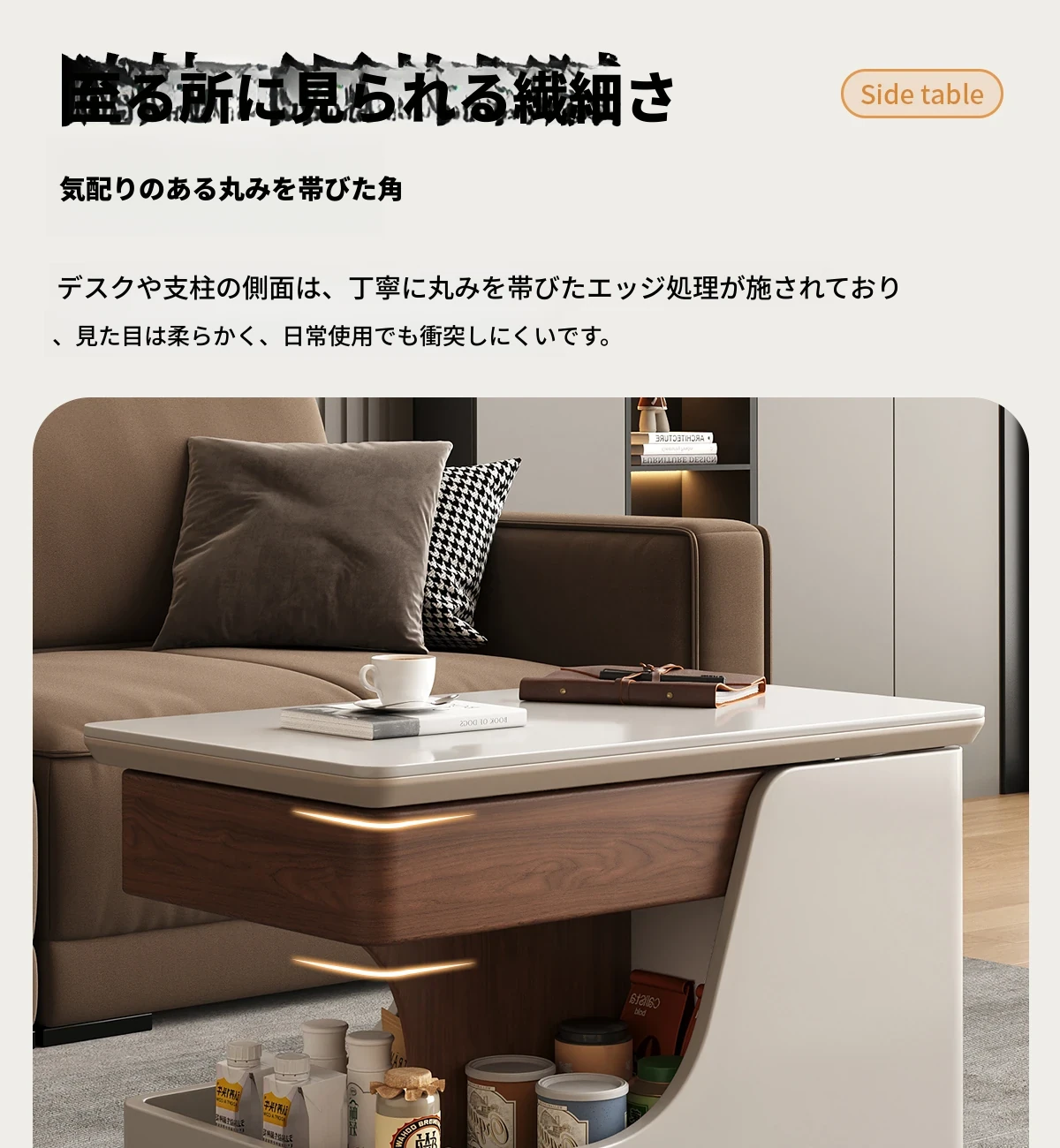 移動式サイドテーブル!スタイリッシュなロック付き昇降機能付き。リビングやベッドサイドに最適な便利なストレージ。高級感あふれる岩板デザインで、おしゃれな空間を演出します。