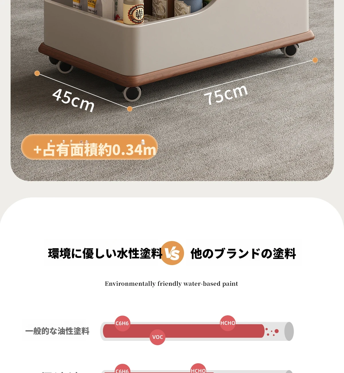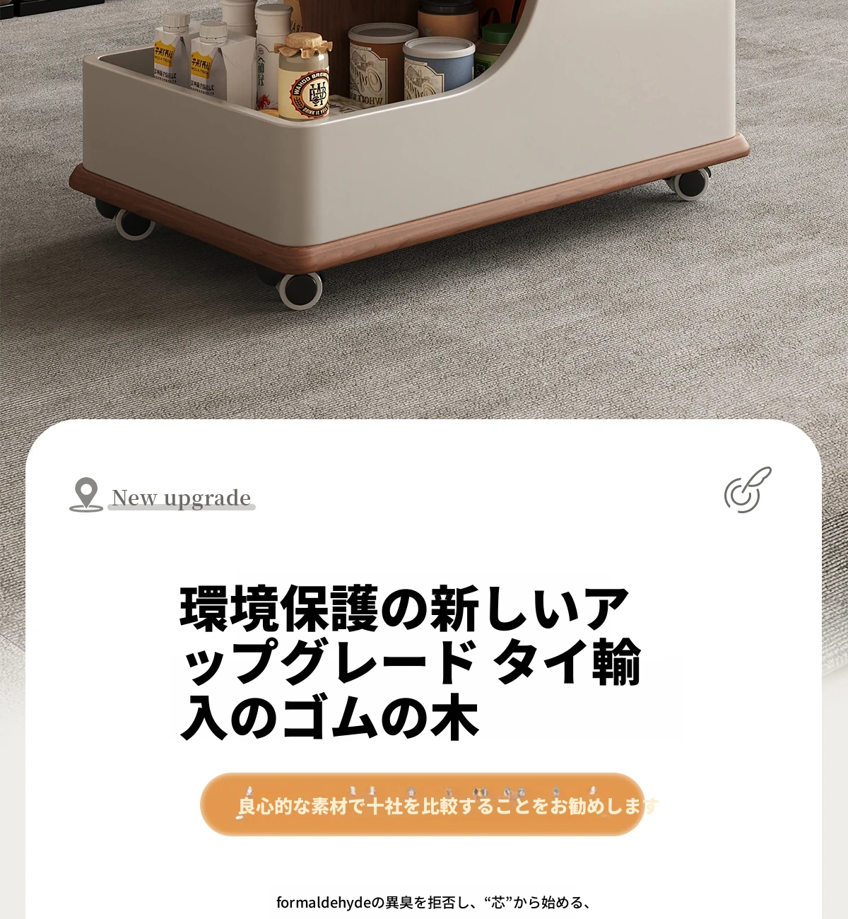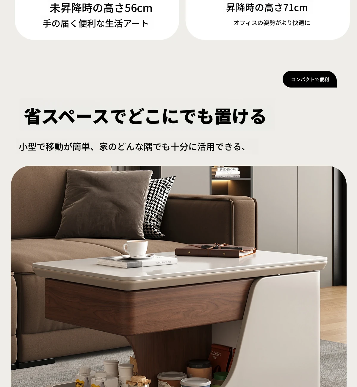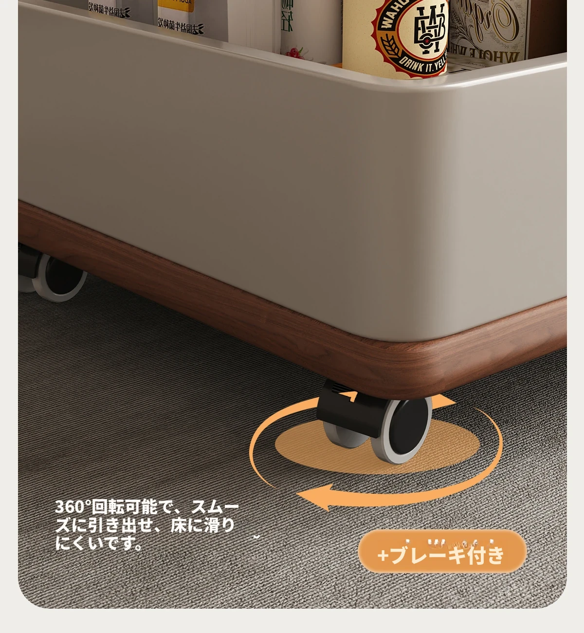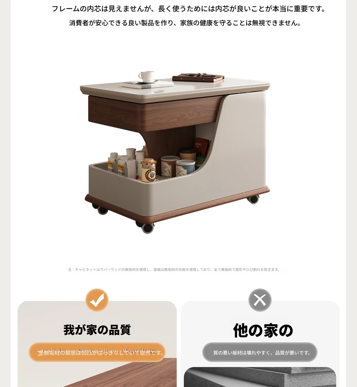 【ホワイト+ウォールナット色】移動式昇降小推車サイドテーブル【組立配送】