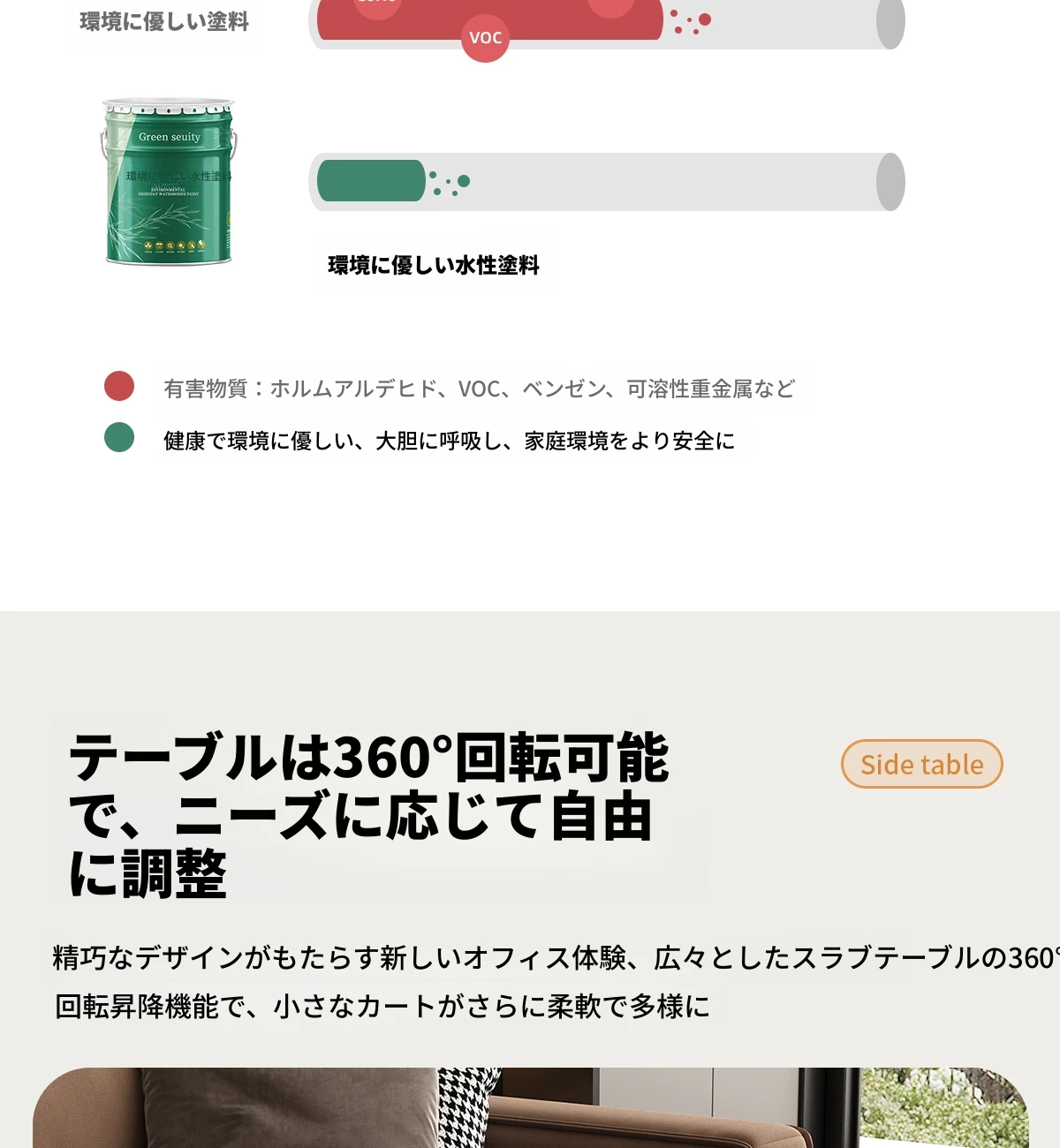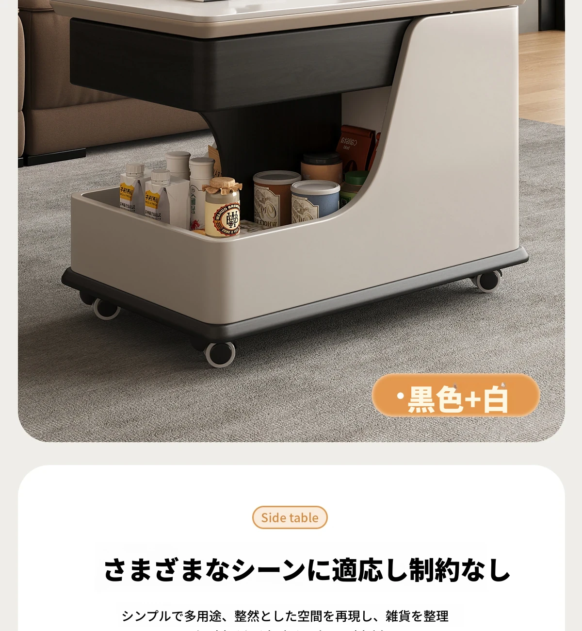 【ホワイト+ブラック色】移動式昇降小推車サイドテーブル【組立配送】