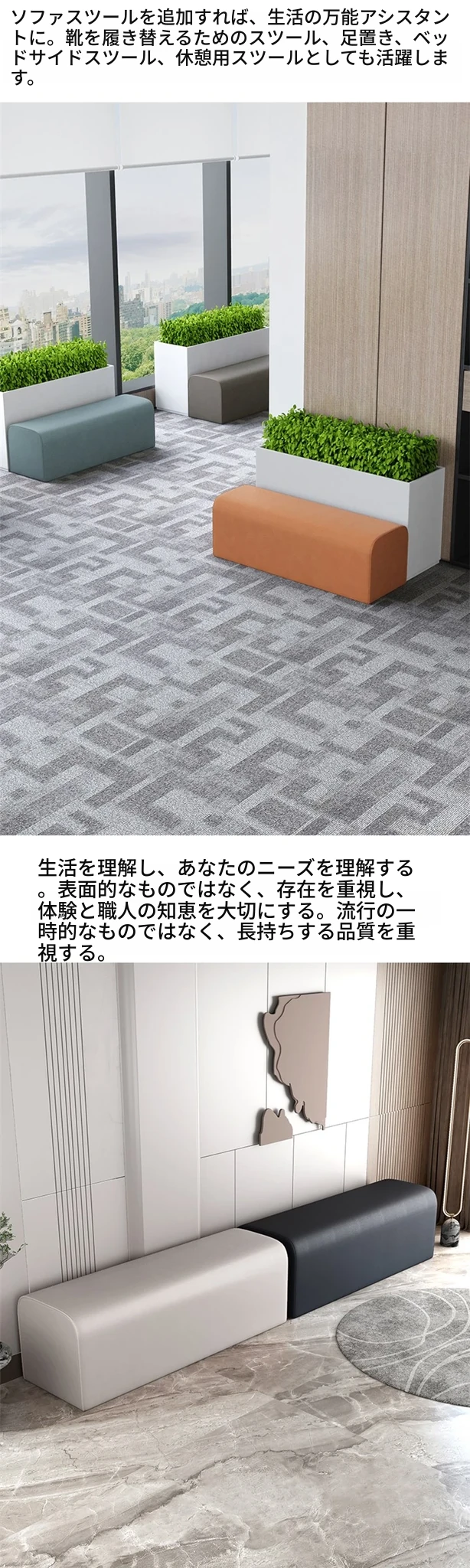 ダンススタジオ専用!長方形ベンチ - 休憩エリアや会社のロビーに最適なスタイリッシュなソファー。おしゃれなブティックにもピッタリ!快適さとデザインを兼ね備えたカスタムソリューション。