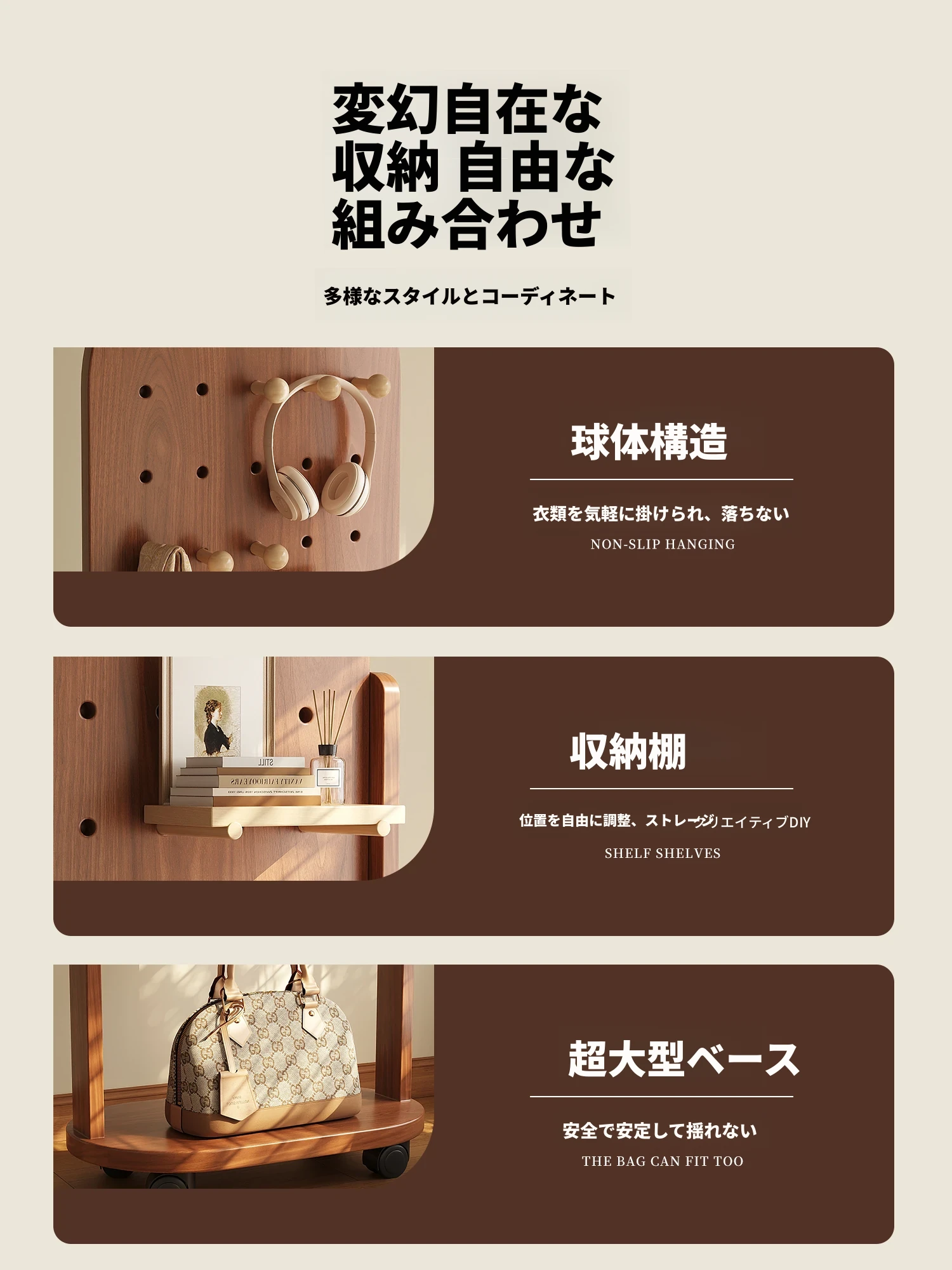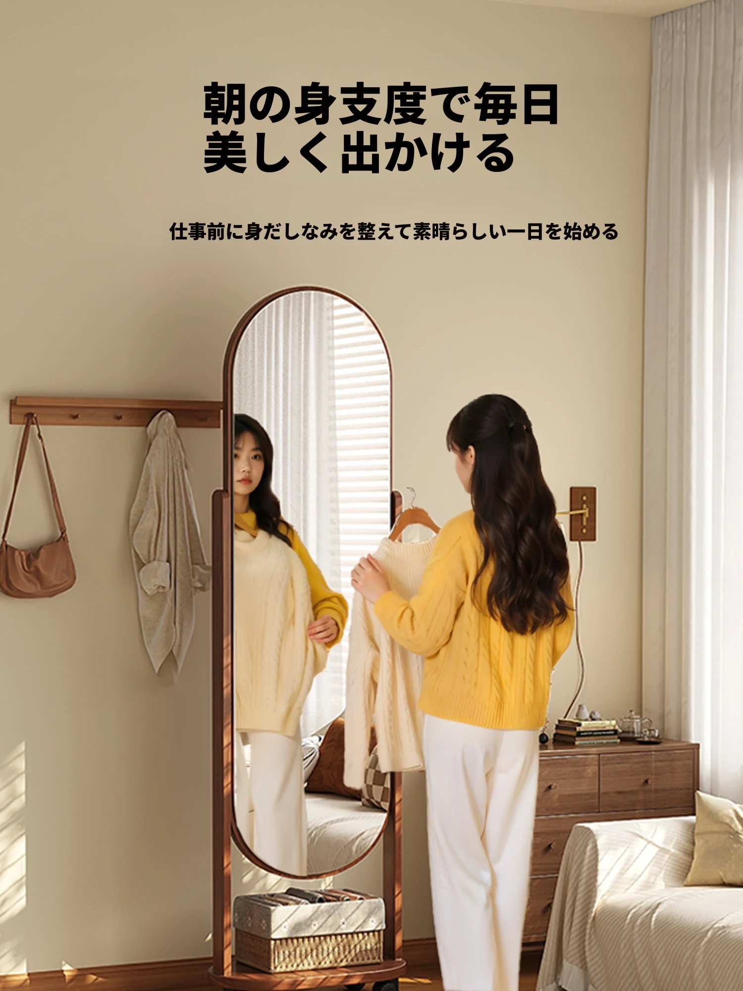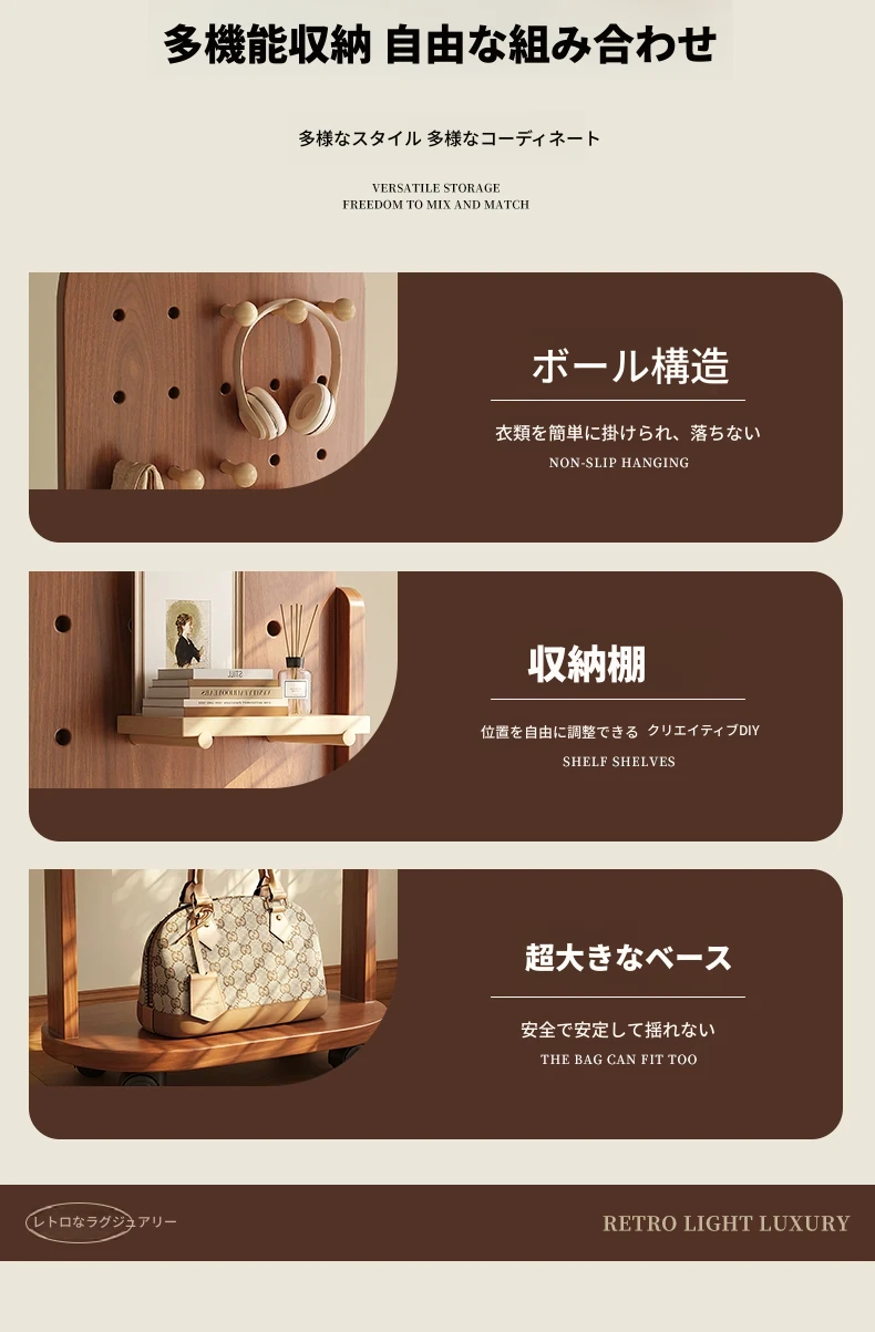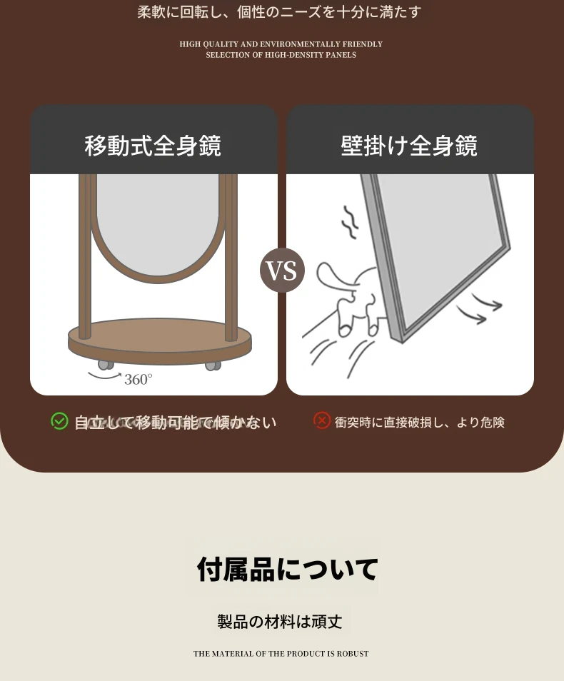 回転式全身ミラー付きの穴あきボード、移動可能なフロアミラー、寝室用ハンガーラック一体型の試着鏡!スタイリッシュなデザインで、どんな部屋にもぴったり。自宅で簡単にコーディネートチェックができる便利アイテム!