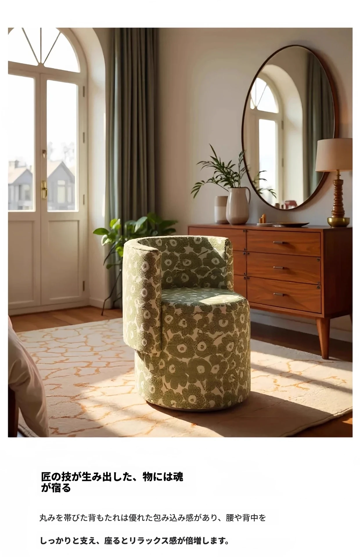 ヴィンテージ風メイクアップスツール|ラグジュアリー感漂う高級感あるデザイン|おしゃれな寝室用化粧椅子|個性的なデザイナーアイテム|くつろぎのひとときを演出するリラックスチェア