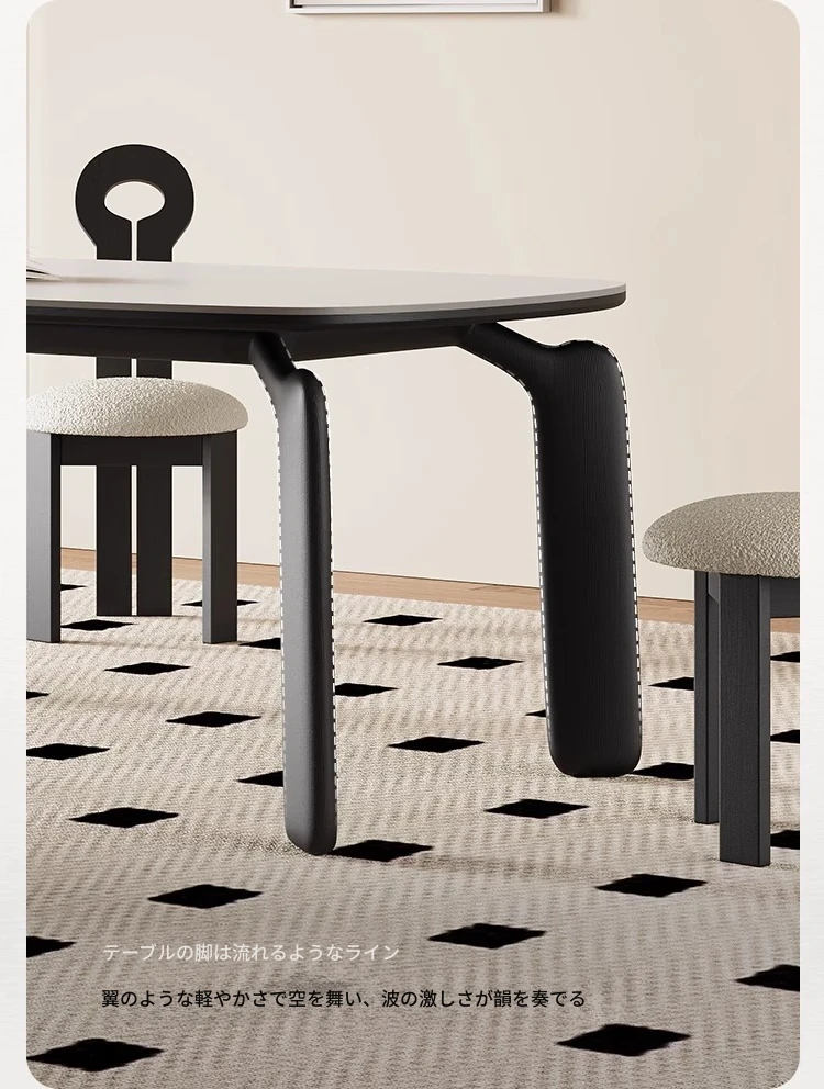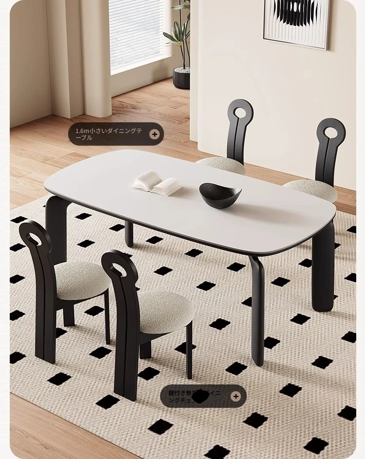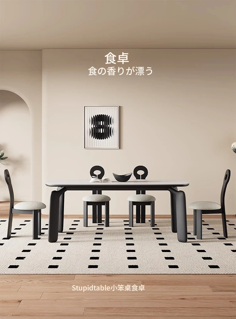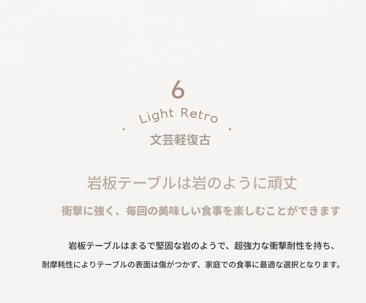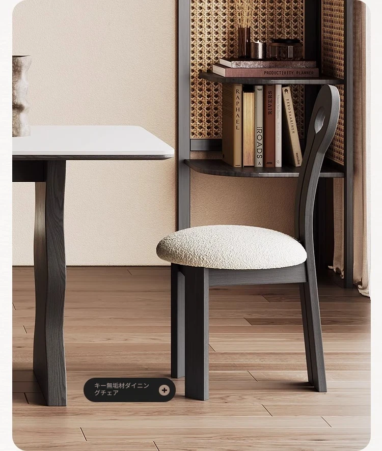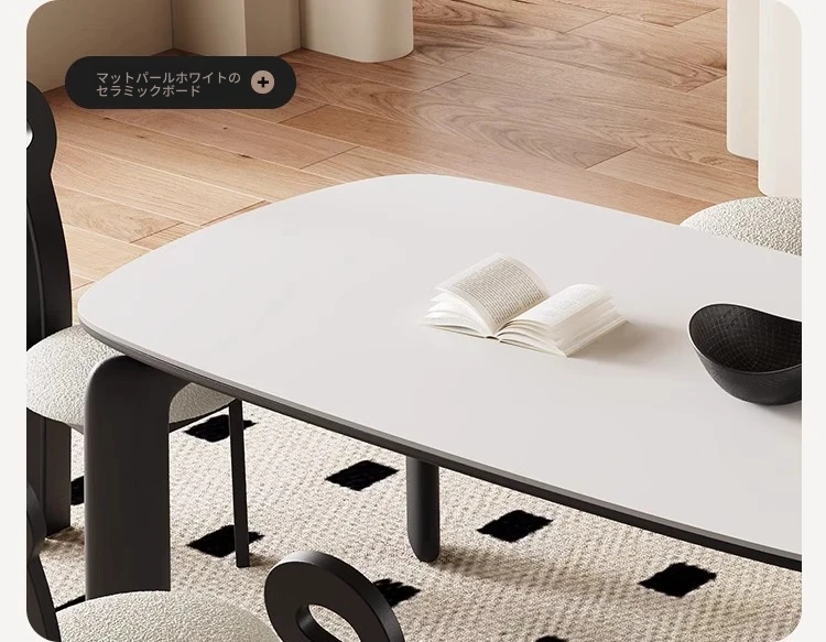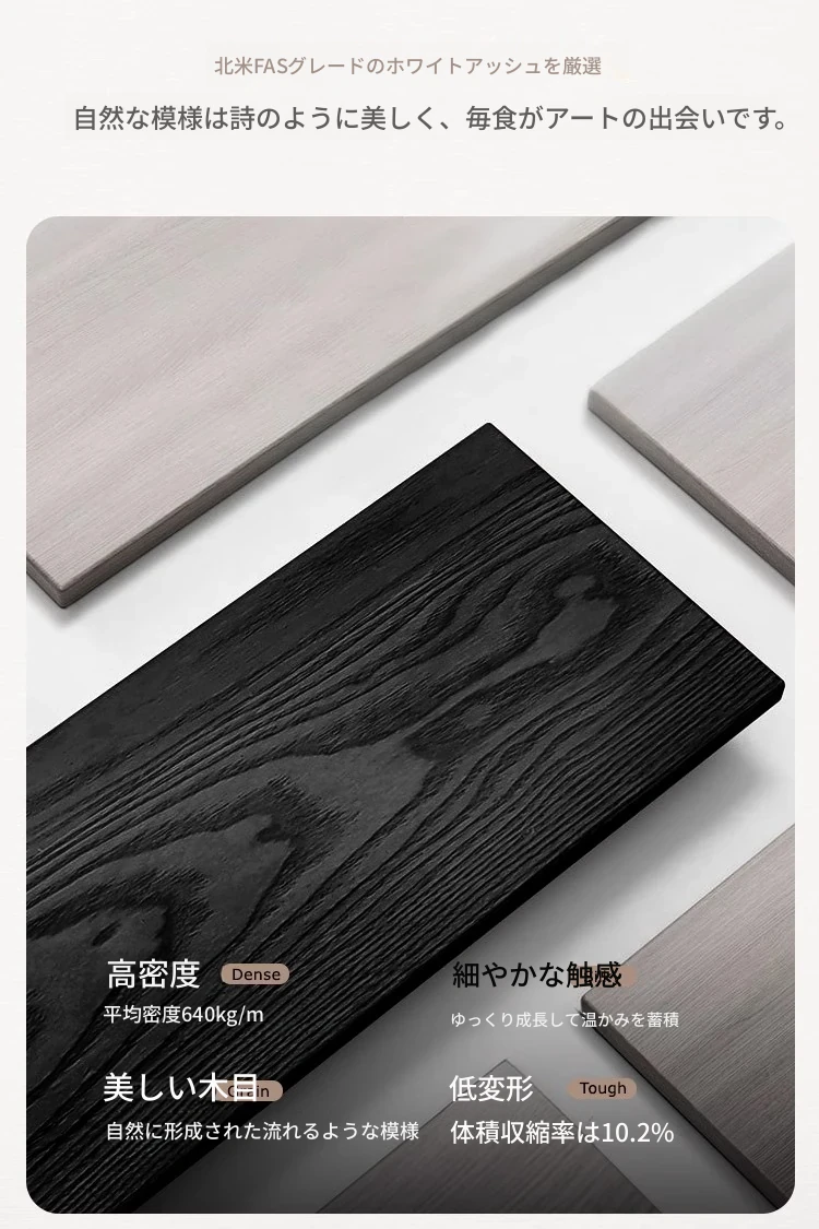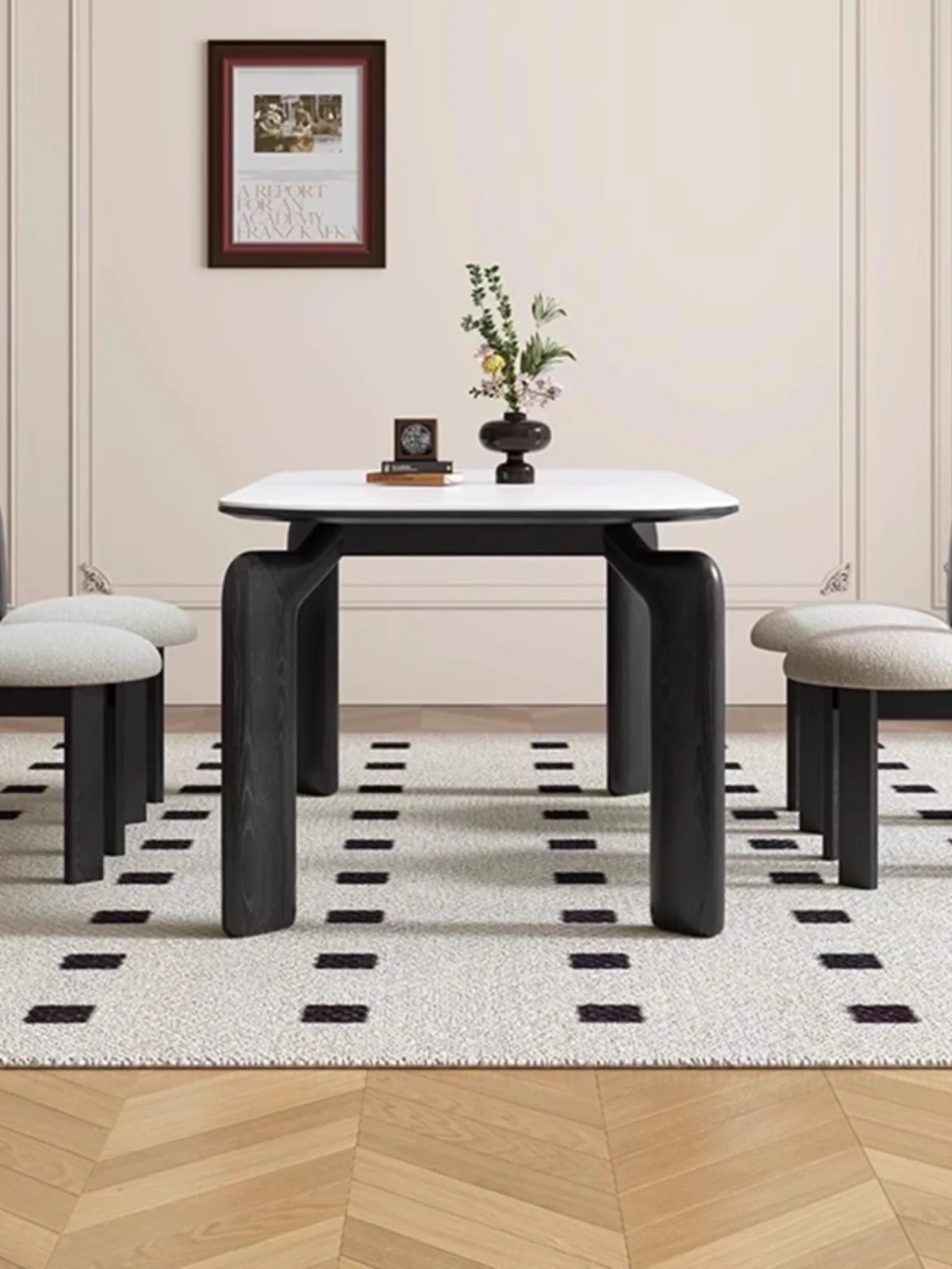 中古風の岩板実木ダイニングテーブル|フレンチブラックの侘寂スタイル|アメリカン・北欧デザイン|高級オーク&ホワイトアッシュ|クリーミーカラーで優雅な食卓を演出!