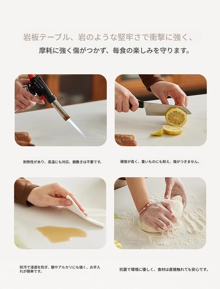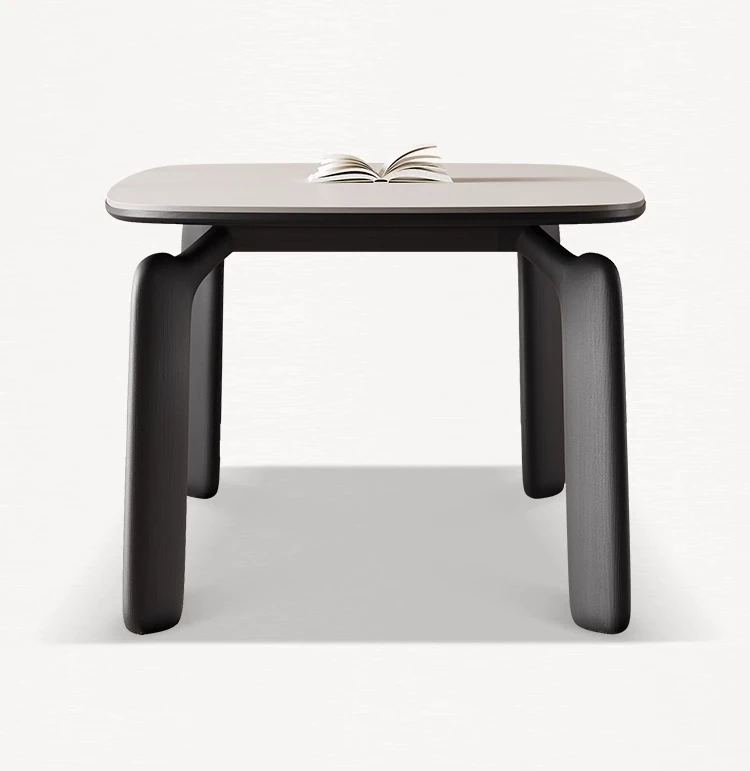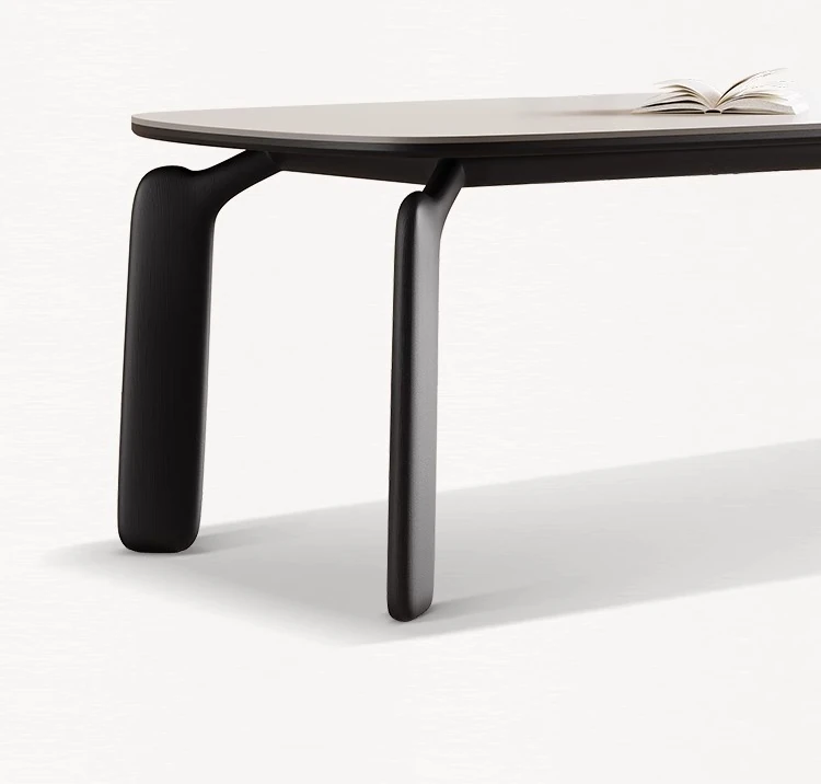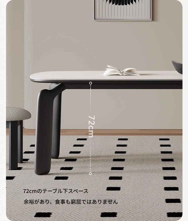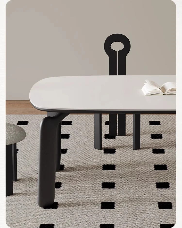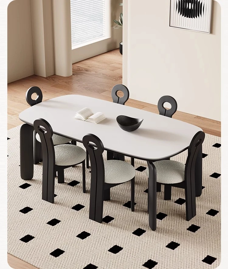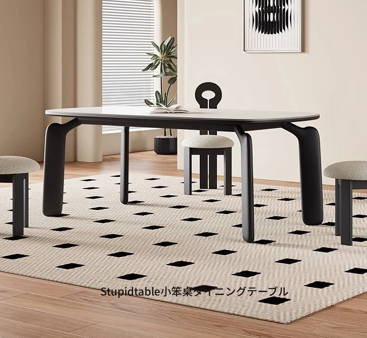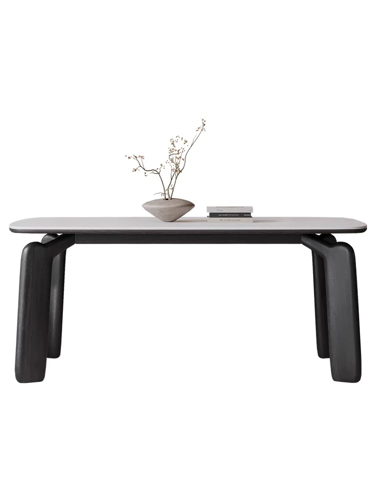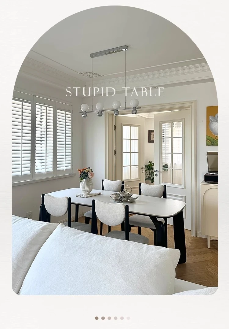 中古風の岩板実木ダイニングテーブル|フレンチブラックの侘寂スタイル|アメリカン・北欧デザイン|高級オーク&ホワイトアッシュ|クリーミーカラーで優雅な食卓を演出!