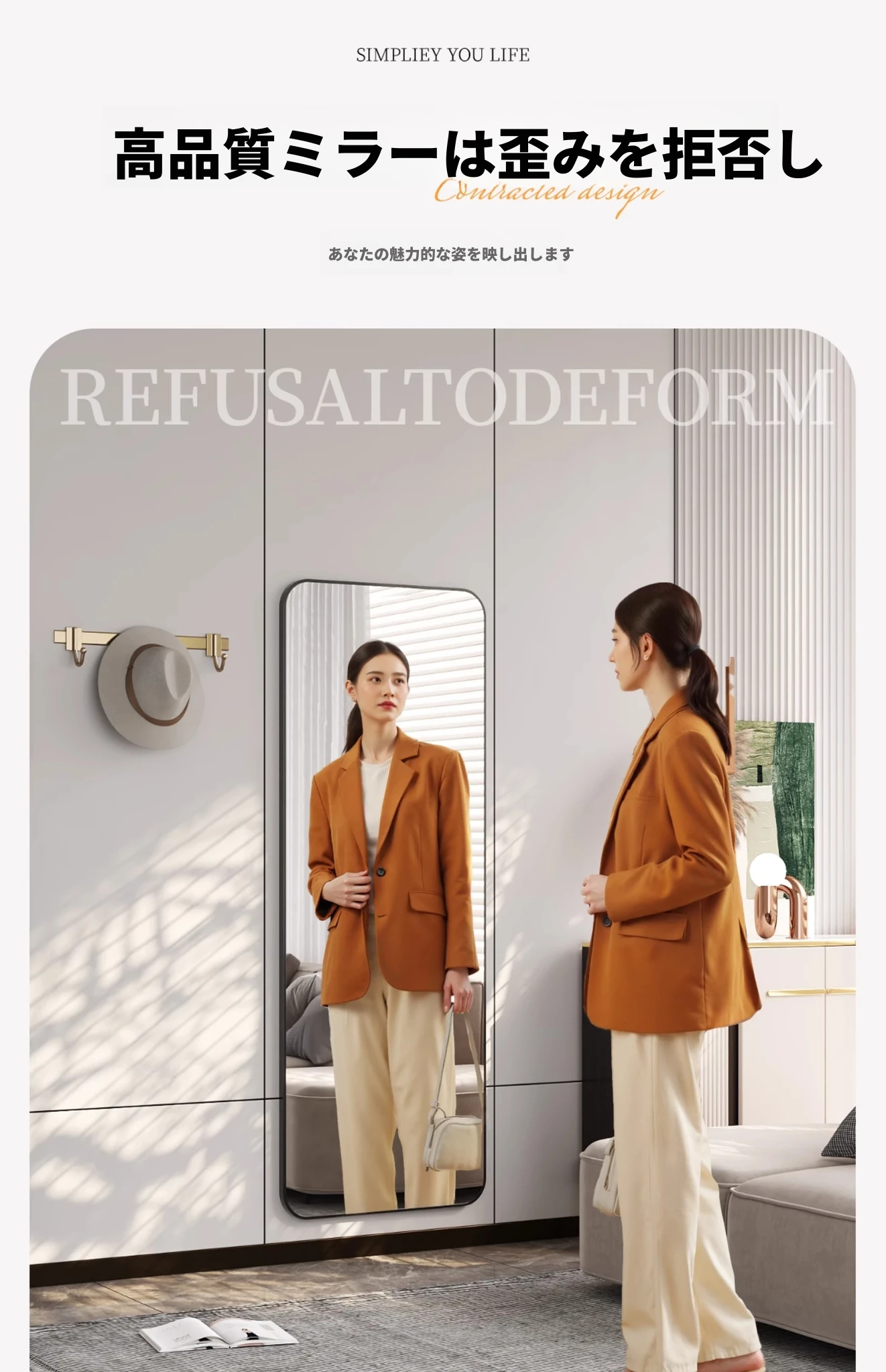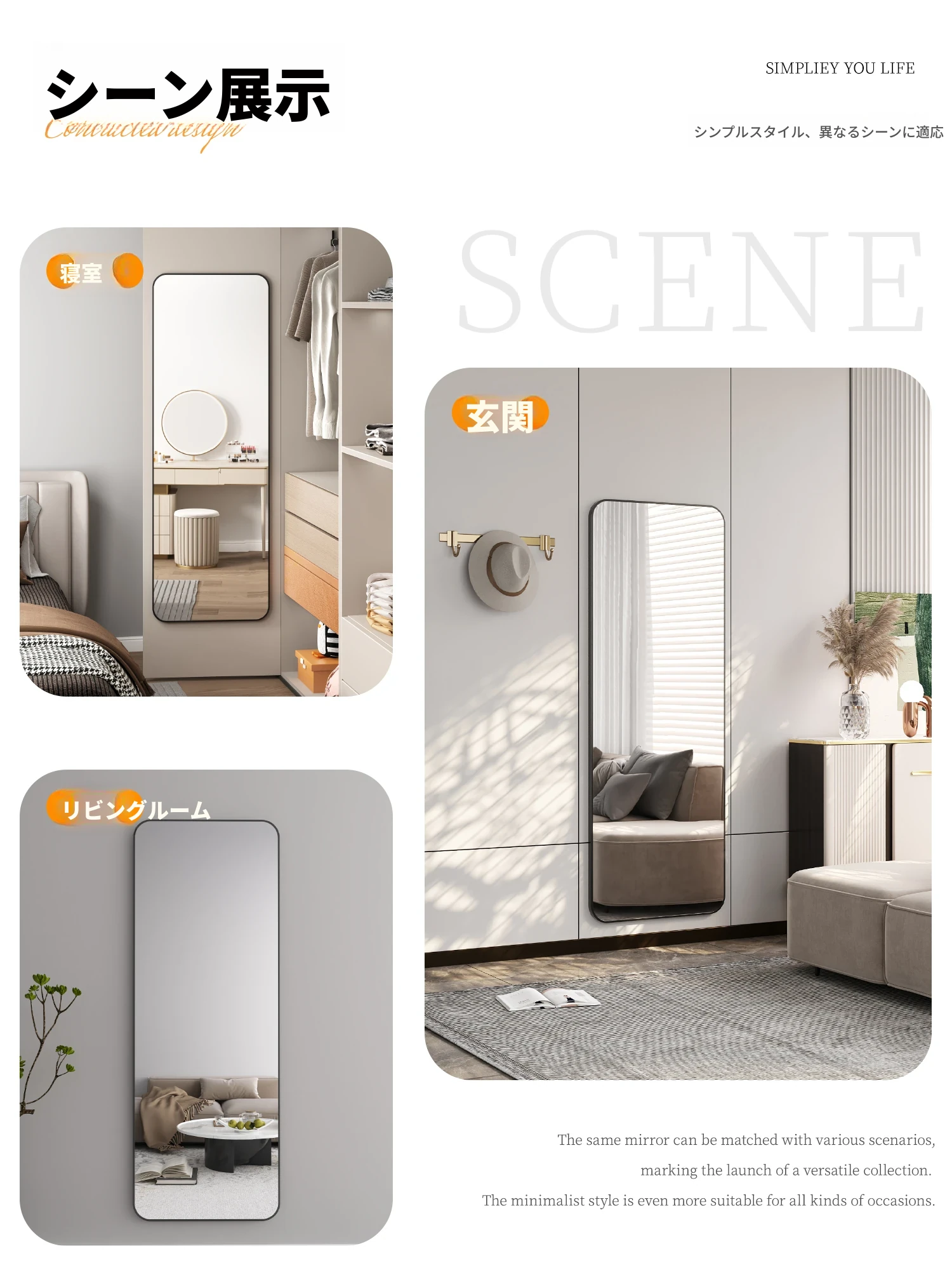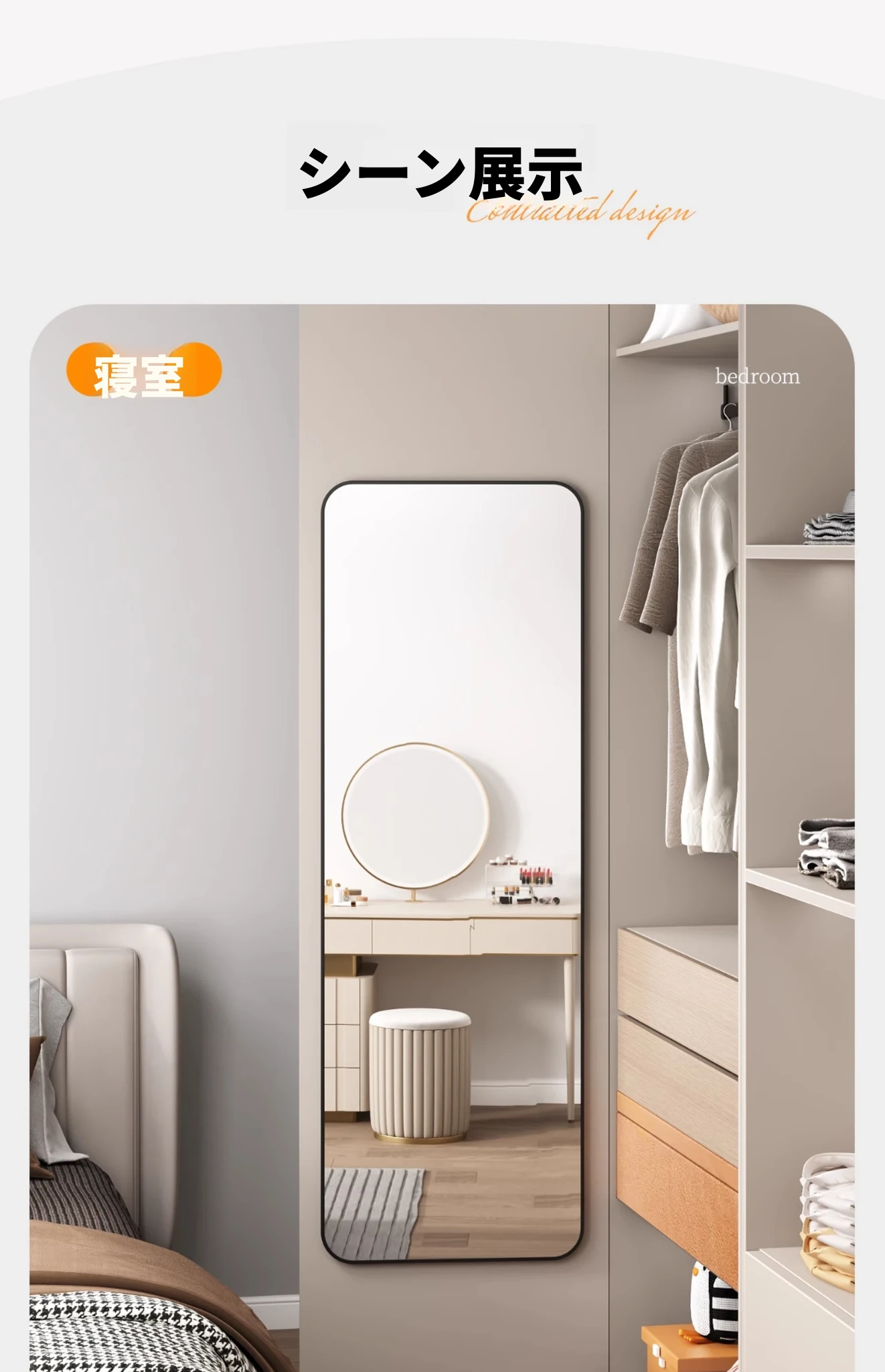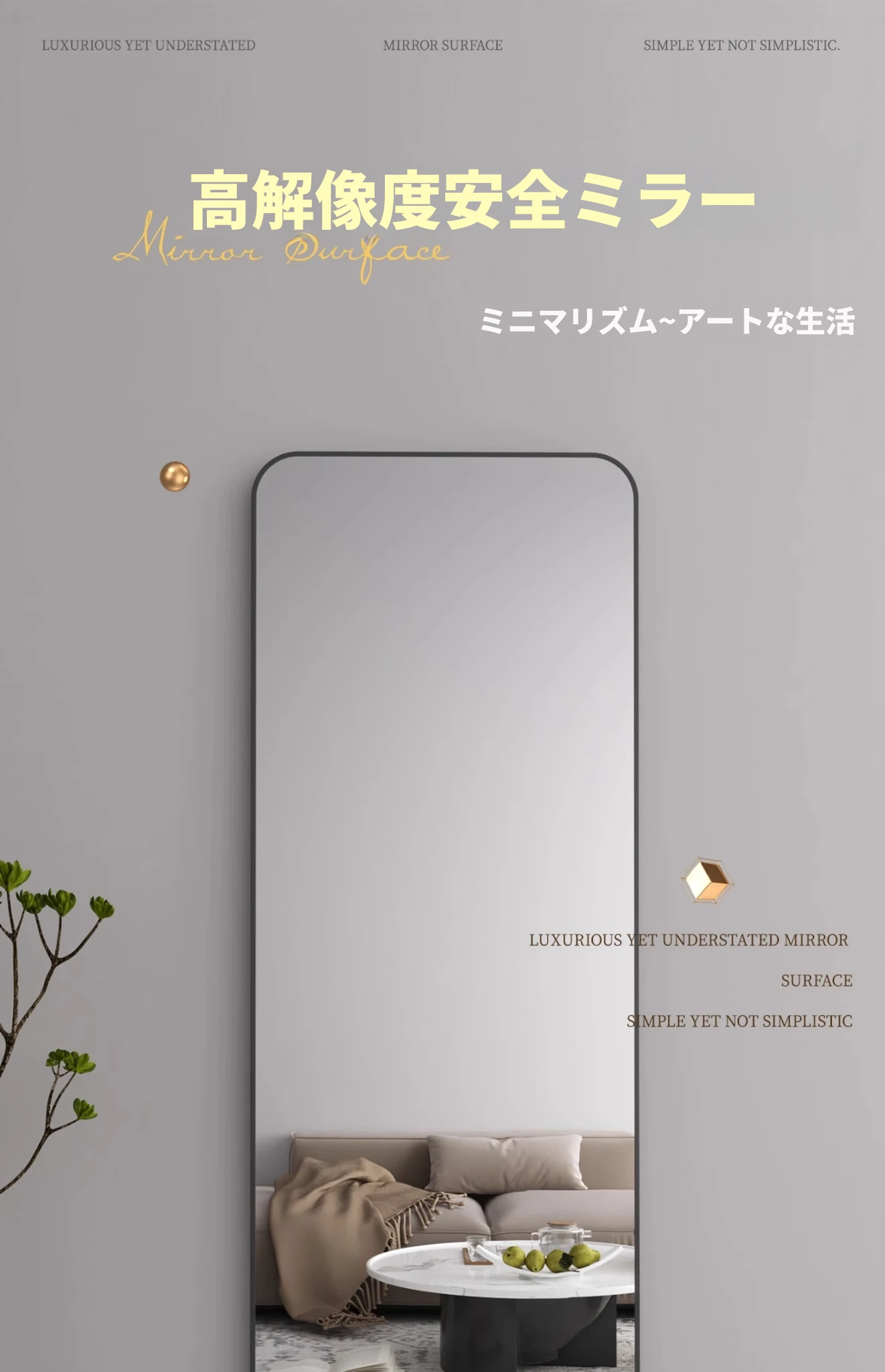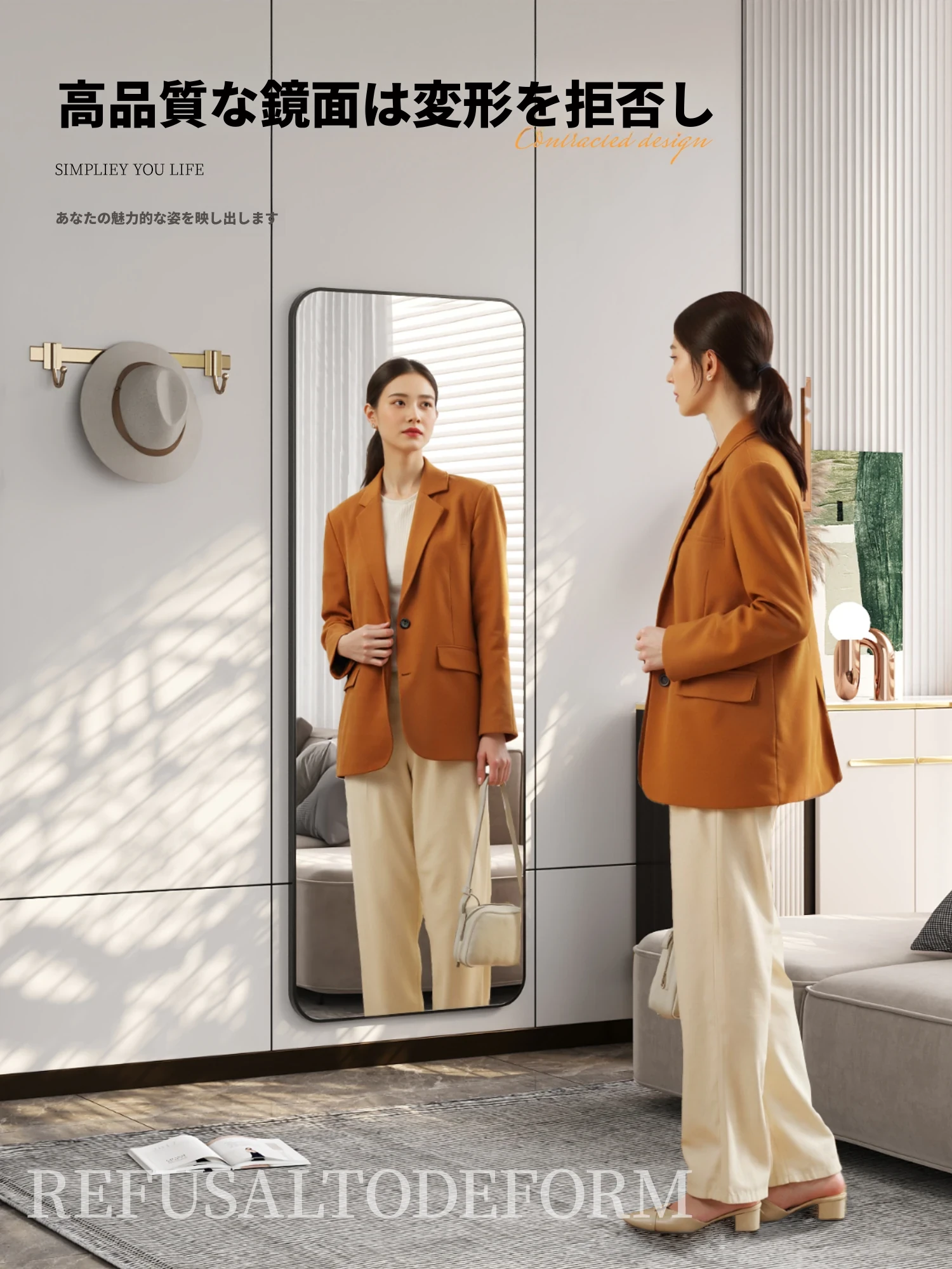 壁掛け全身鏡|自粘式で簡単取り付け!穴あけ不要のスタイリッシュな衣服用ミラー|おしゃれな宿舎にもぴったりの高級感あふれる試着鏡!
