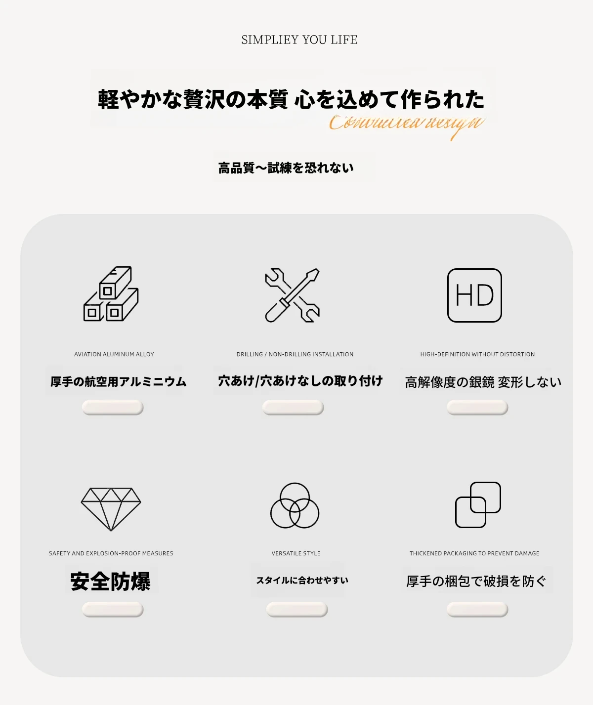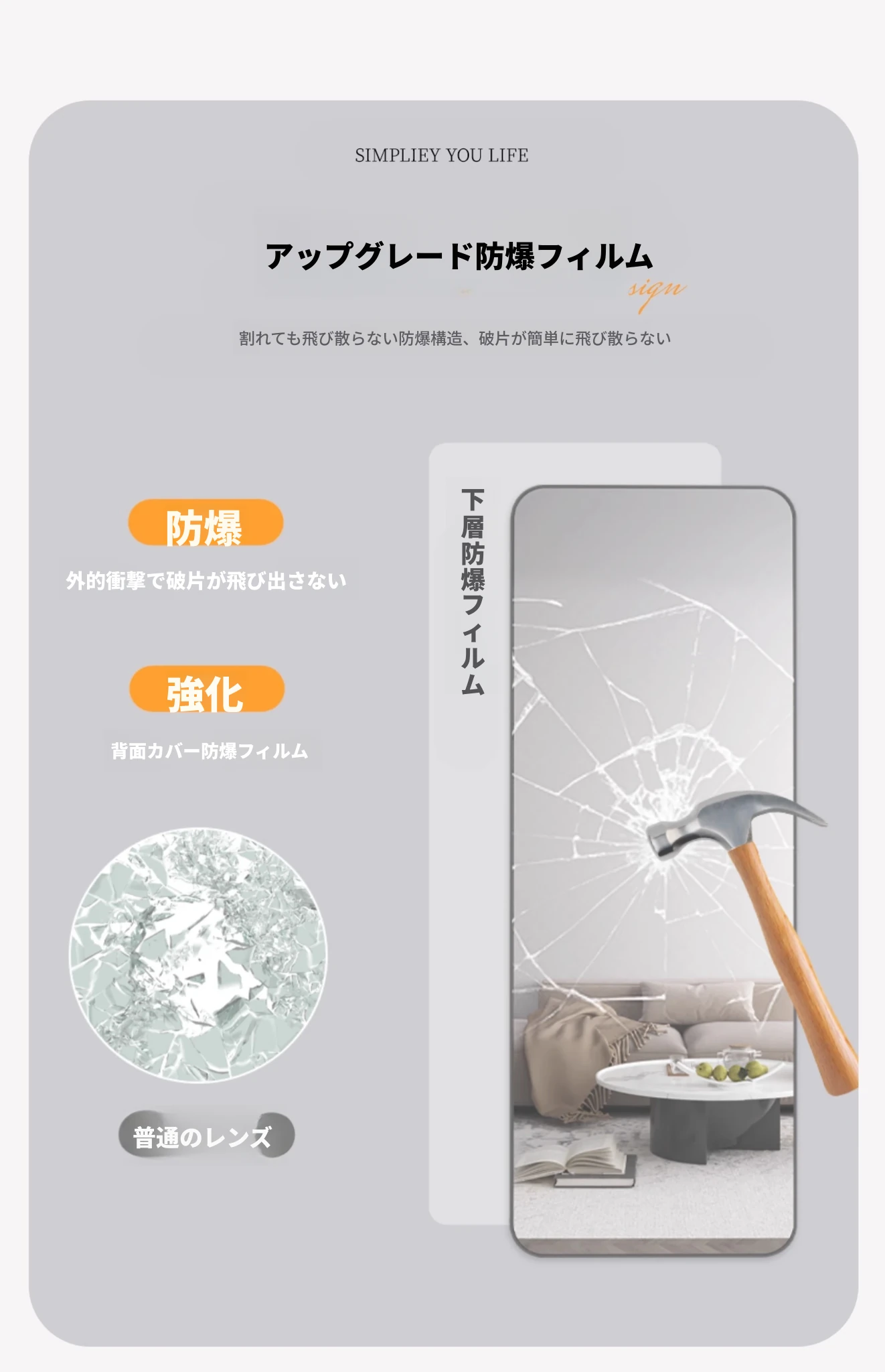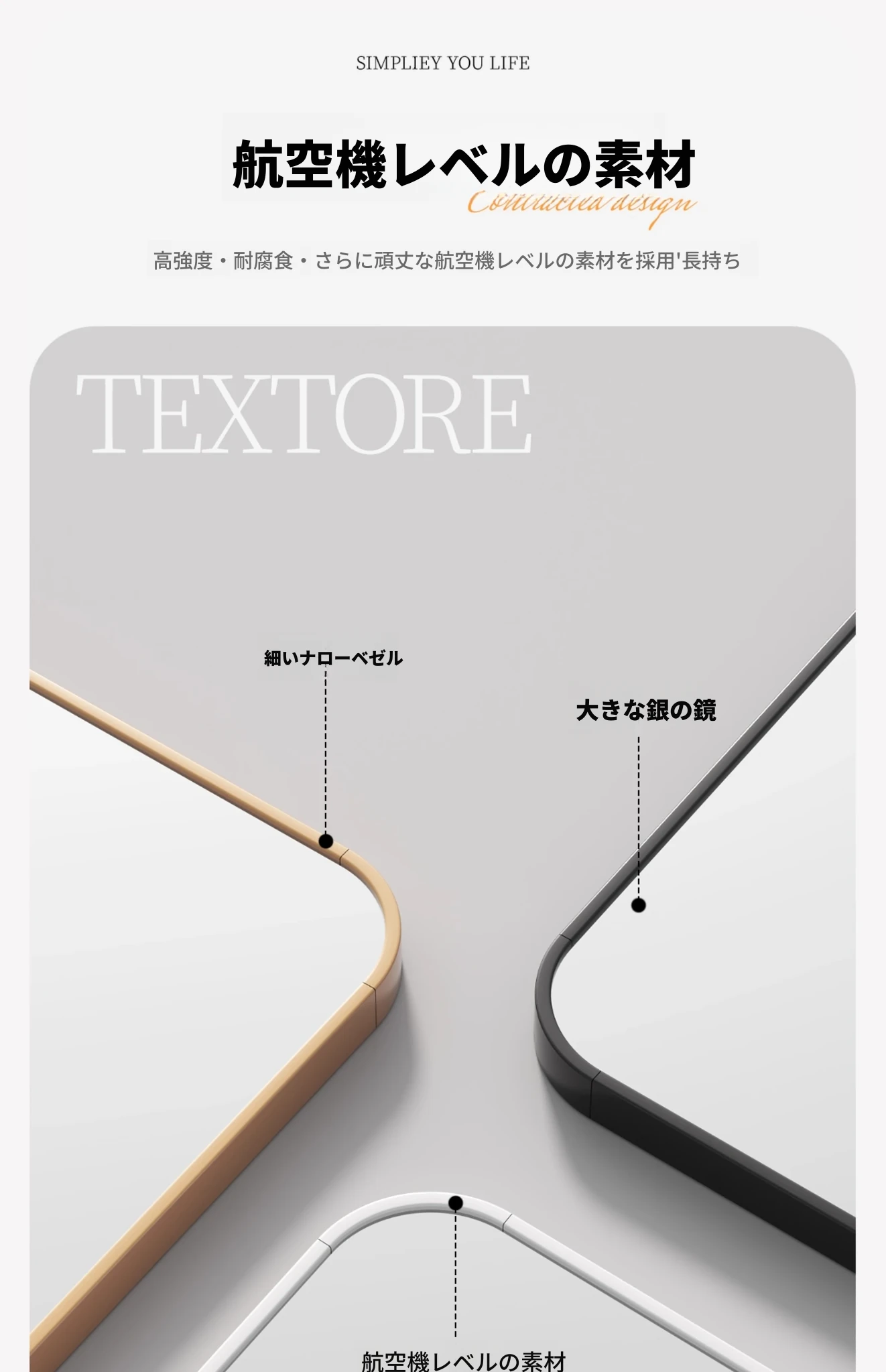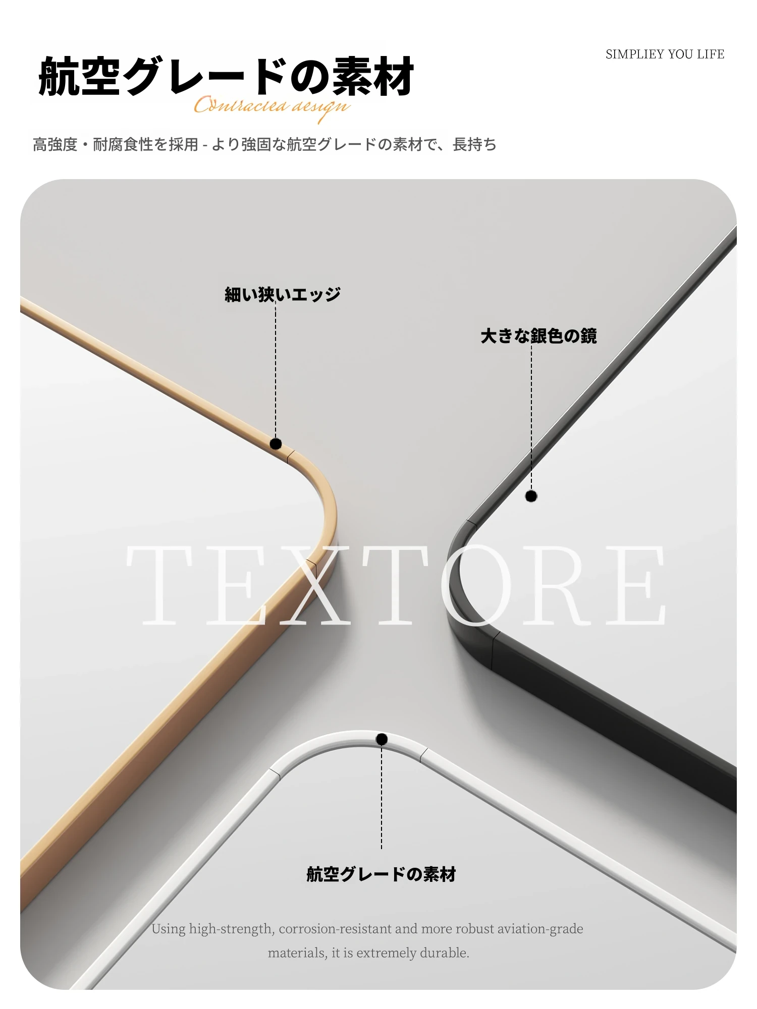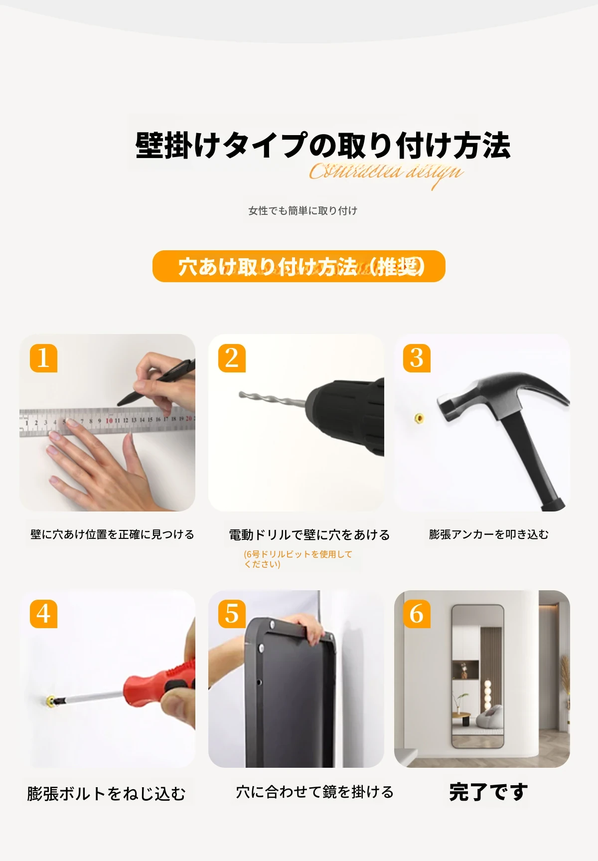 壁掛け全身鏡|自粘式で簡単取り付け!穴あけ不要のスタイリッシュな衣服用ミラー|おしゃれな宿舎にもぴったりの高級感あふれる試着鏡!