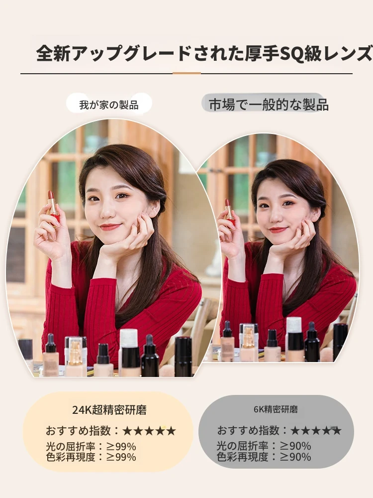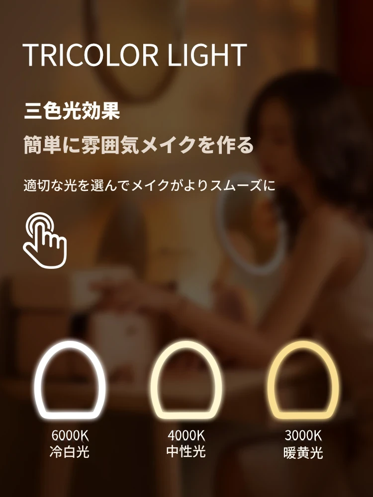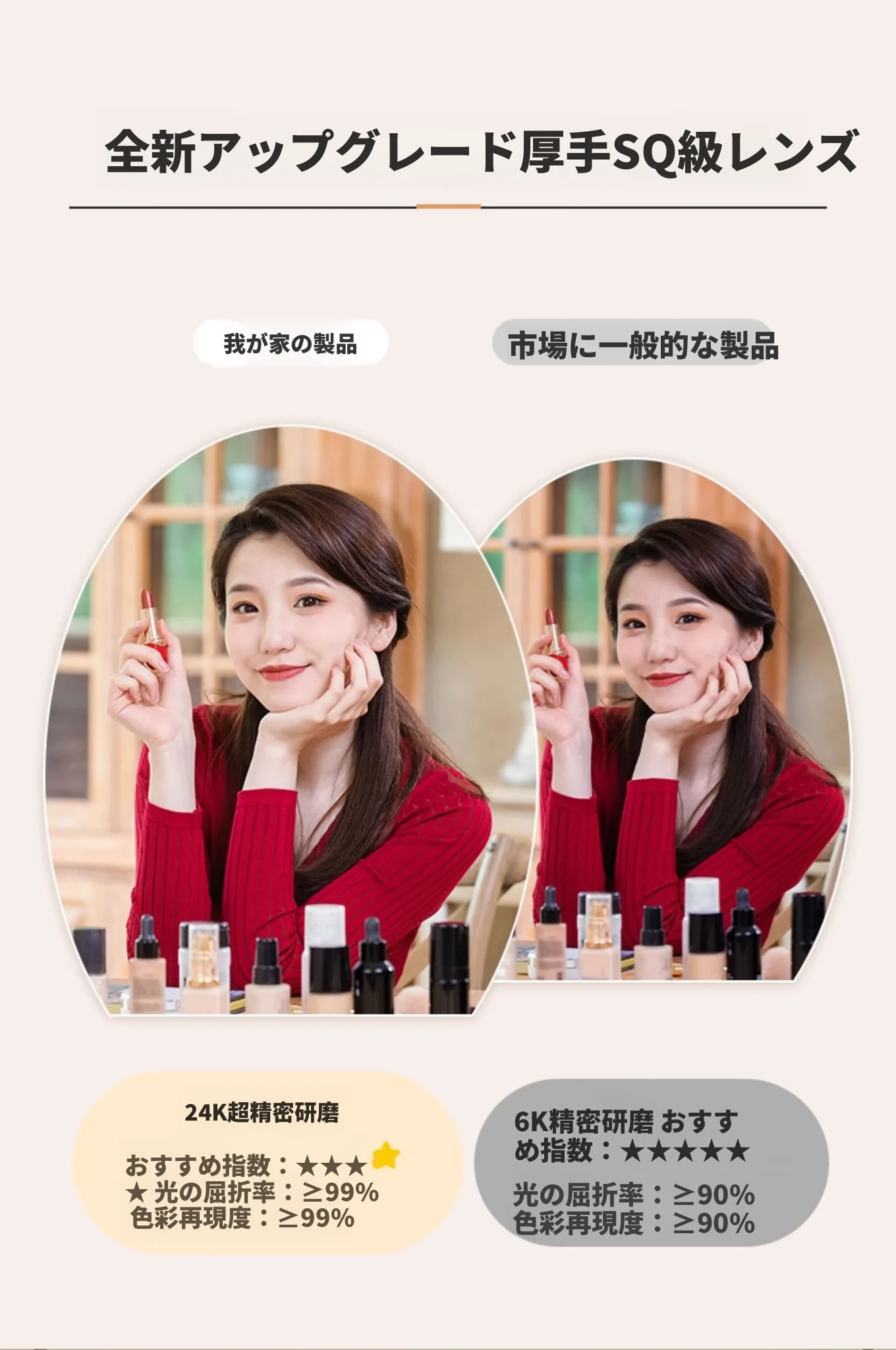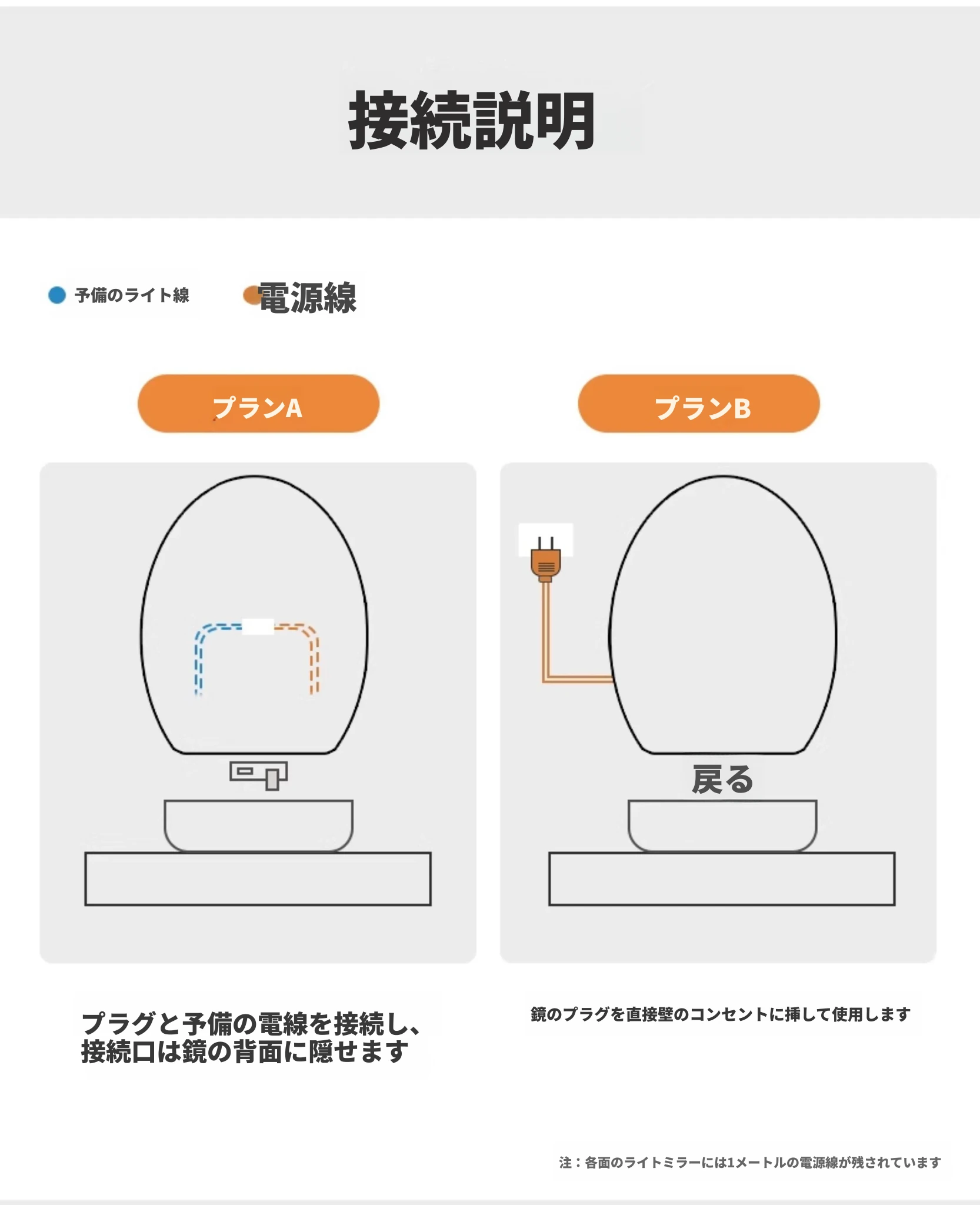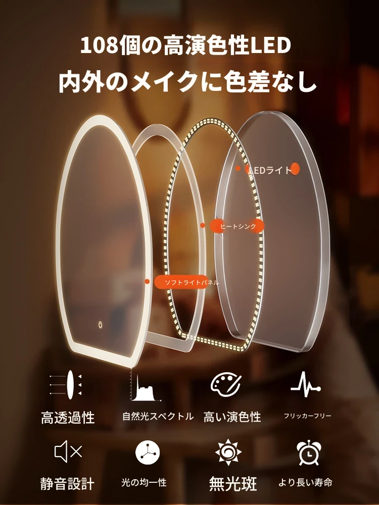 壁掛け式スマートLED化粧鏡 - 洗練されたデザインで、主寝室にぴったりの大きな鏡。明るい照明でメイクを完璧にサポートし、スタイリッシュなコスメティック台を演出します。