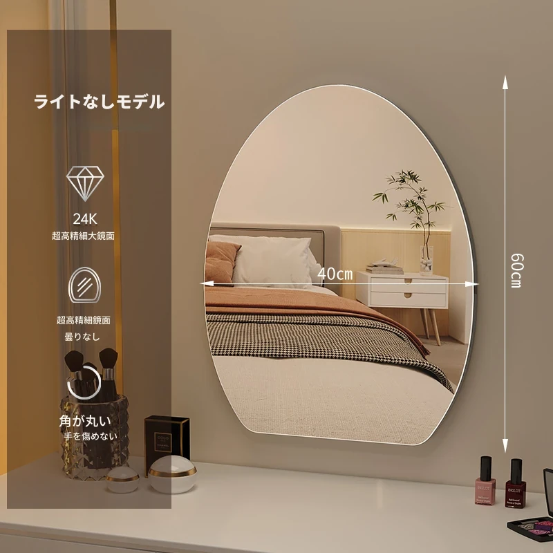 【照明なし】【穴あけ/穴あけ不要】40*60cm【高解像度防爆5mm無銅銀鏡】