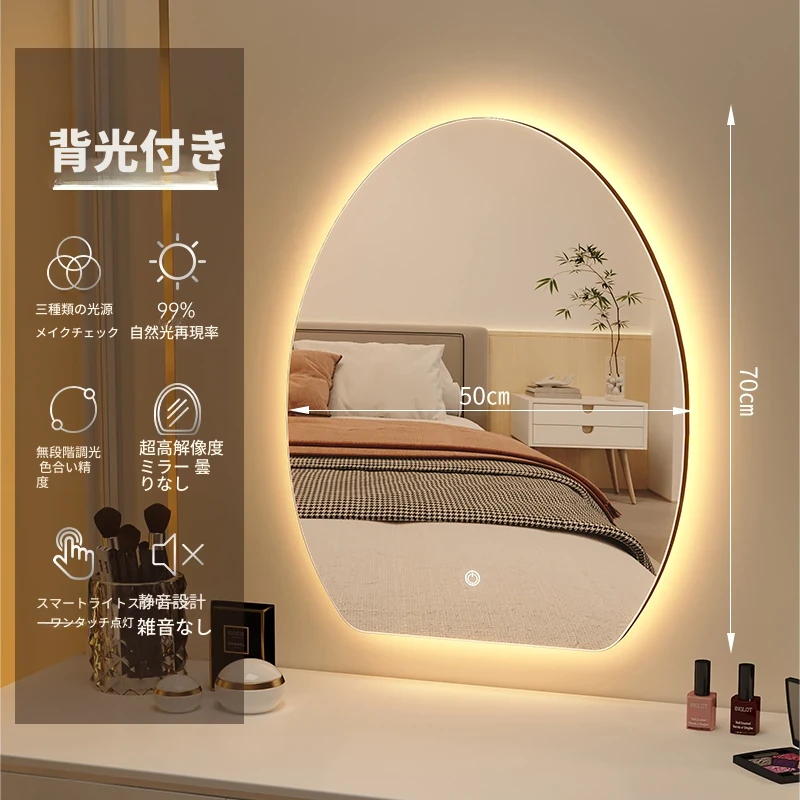 【背面光タイプ】【壁掛けタイプ】50*70cm【三色光+明るさ調整可】