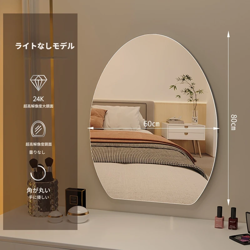 【照明なし】【穴あけ/穴あけ不要】60*80cm【高解像度防爆5mm無銅銀鏡】