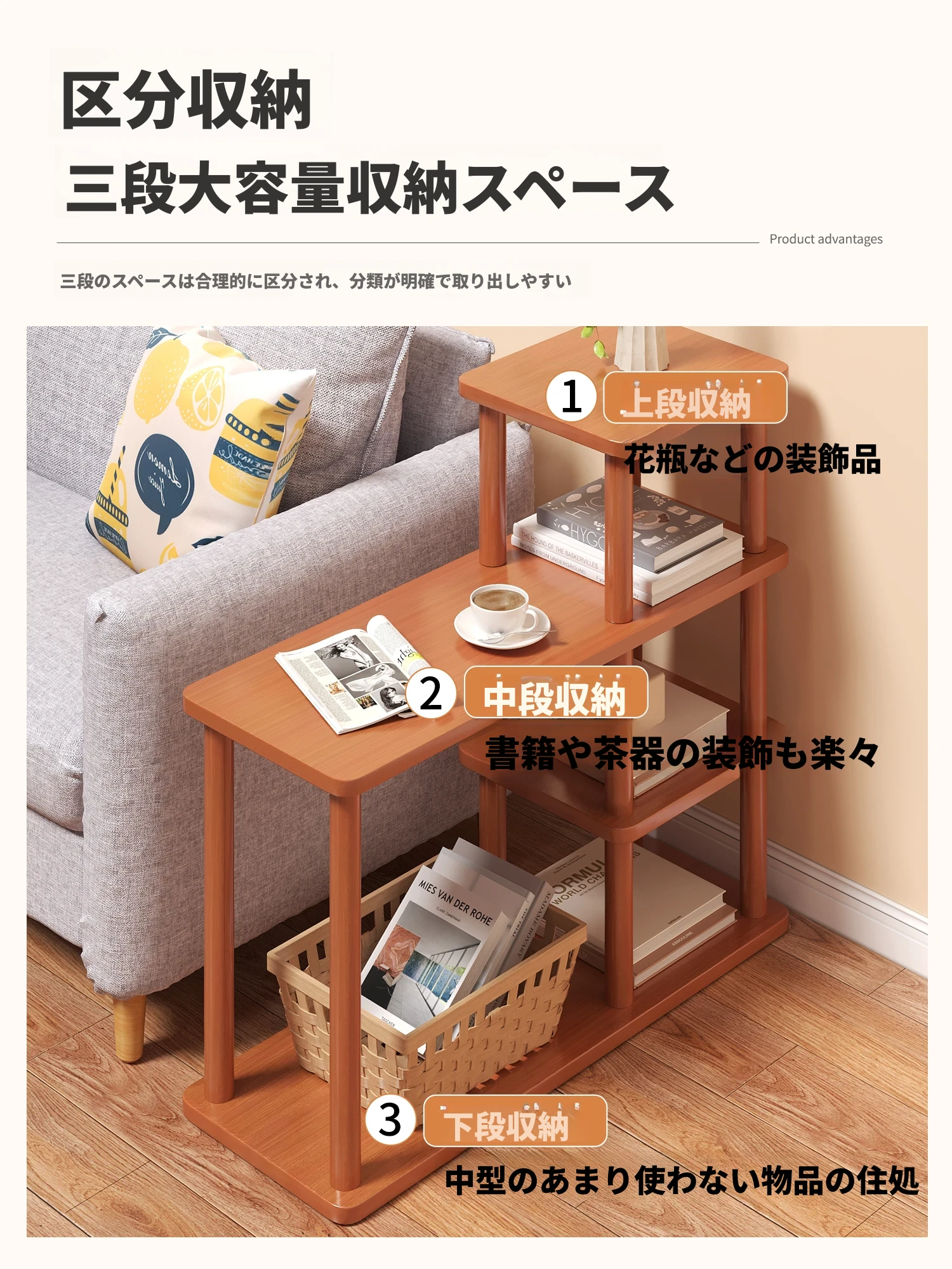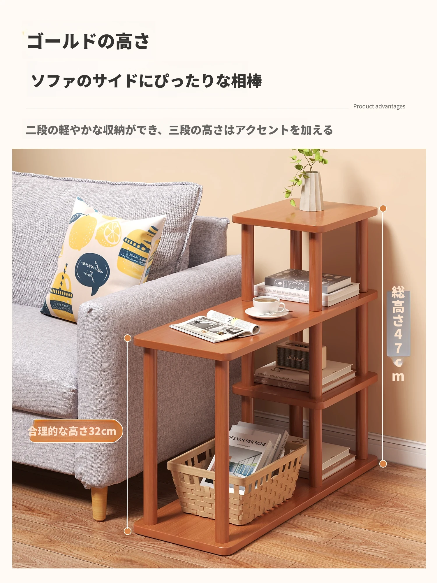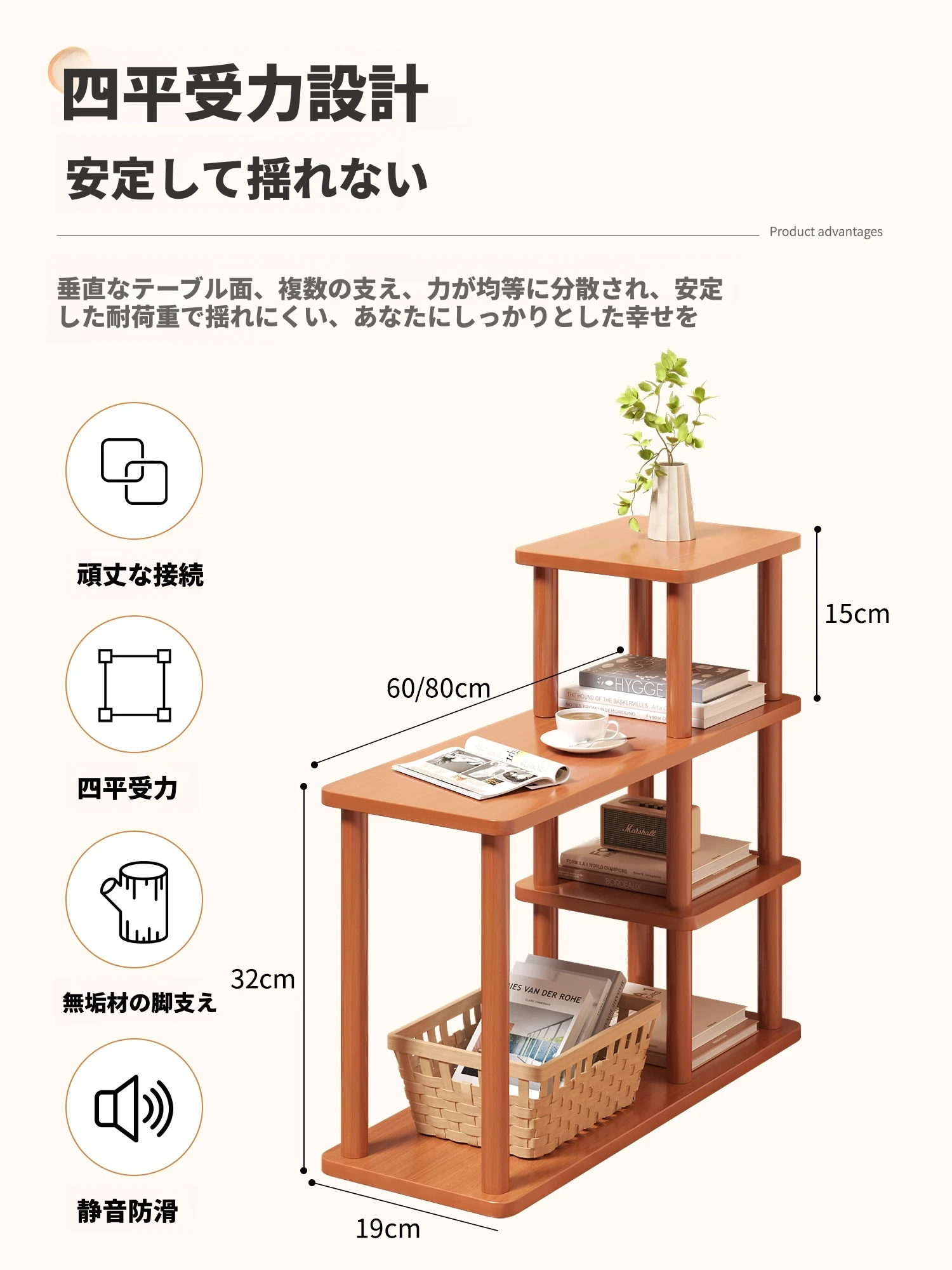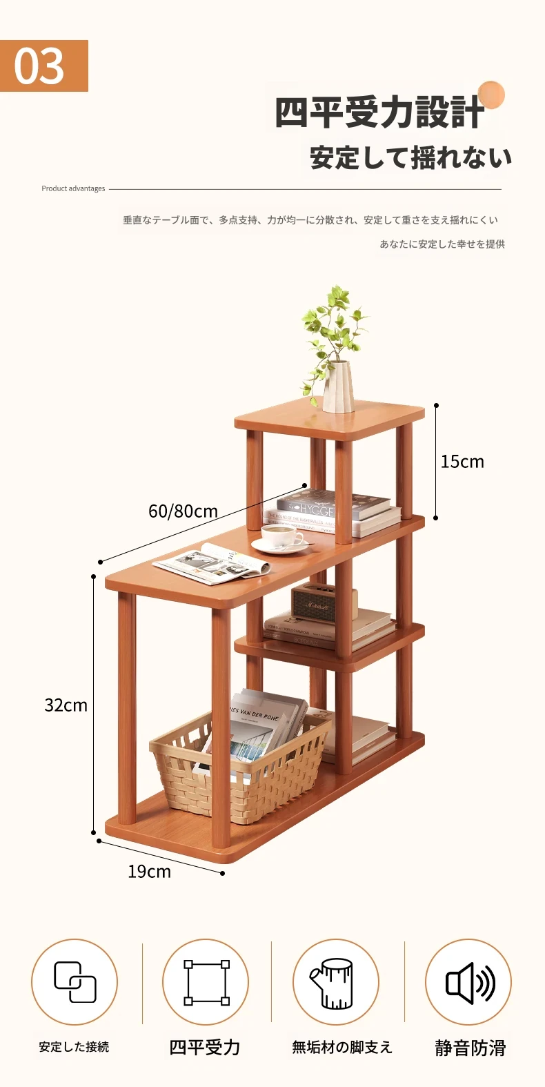 (品質アップ)クルミ色(600*190*470mm)頑丈で安定