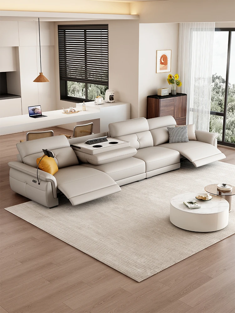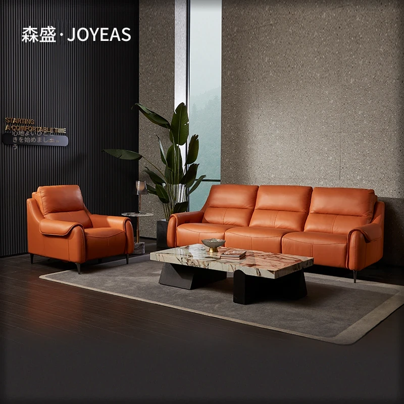 森盛・卓意 イタリアンミニマルデザインの本革電動マルチファンクションソファセット - ラグジュアリーなリビング空間を演出する025型