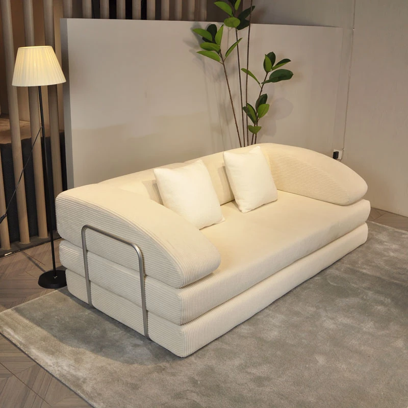 フレンチミラードシェニール生地のリビング用ストレートノルディッククリーム中古風ビッグダンゴソファー、レトロ感あふれる素敵なデザインでお部屋を華やかに演出!