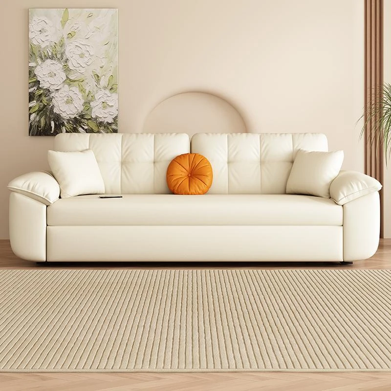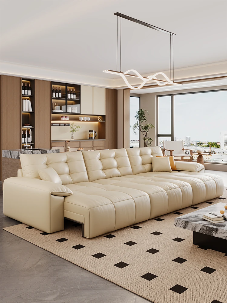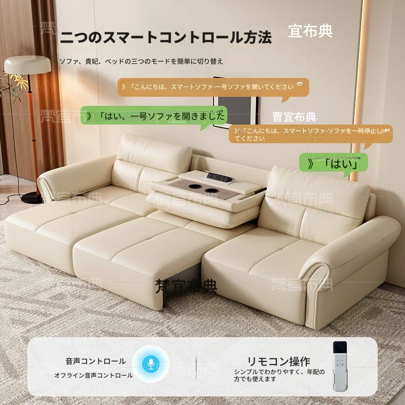 高級本革使用!自動伸縮機能付き多用途スペース電動ソファベッド - 快適なリビングに最適な贅沢な一品!