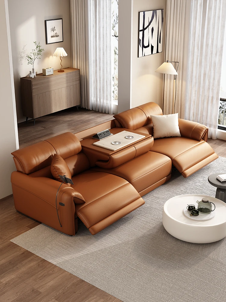 高級本革電動ソファベッド、リビングに最適なスリーピース!壁にぴったりフィットし、伸縮自在で二つの機能を兼ね備え、リラックスした寝心地を実現。新しいスタイルで、あなたの空間を華やかに彩ります!